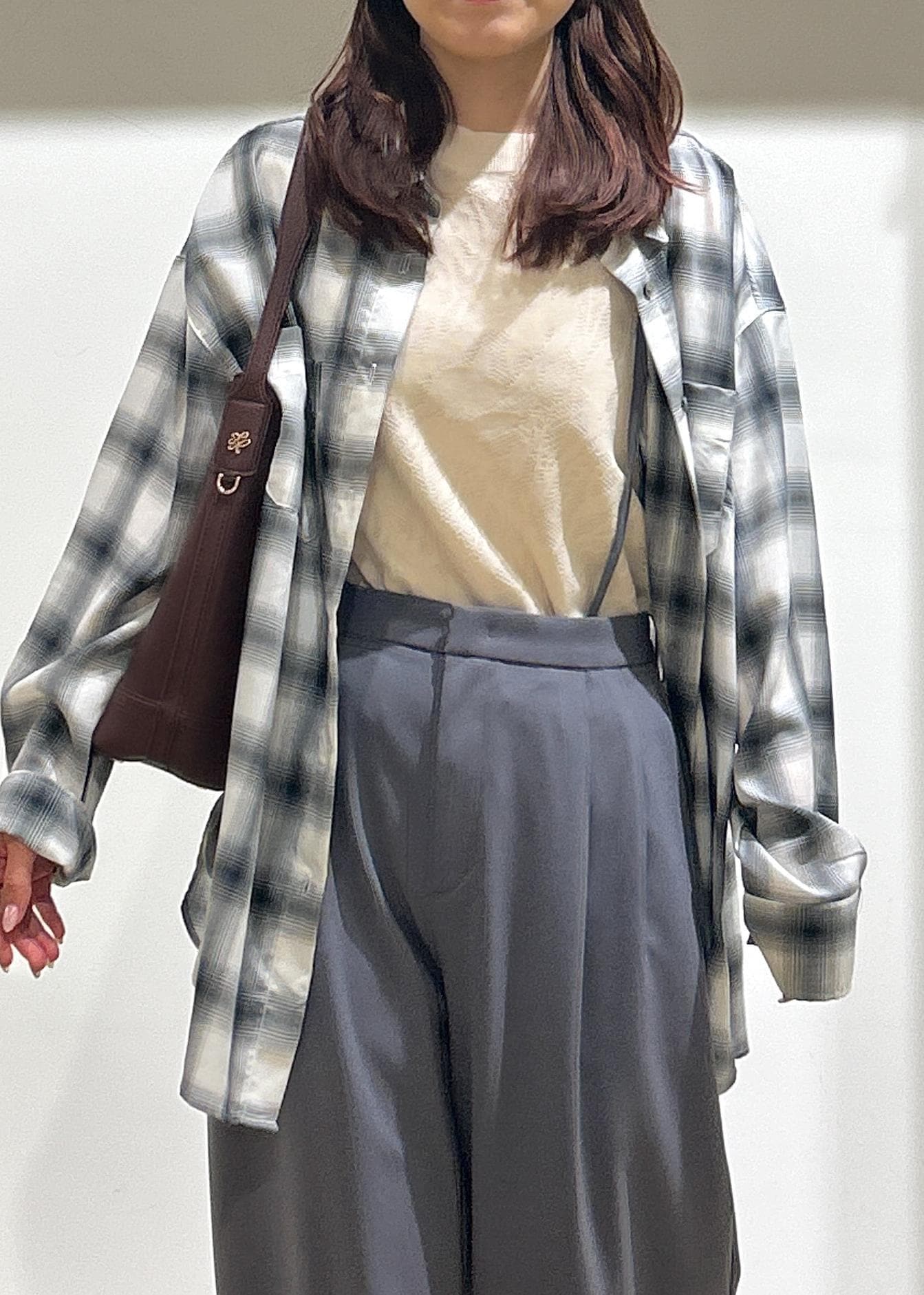 チェックシャツを使った、秋のカジュアルコーデを組みました。
