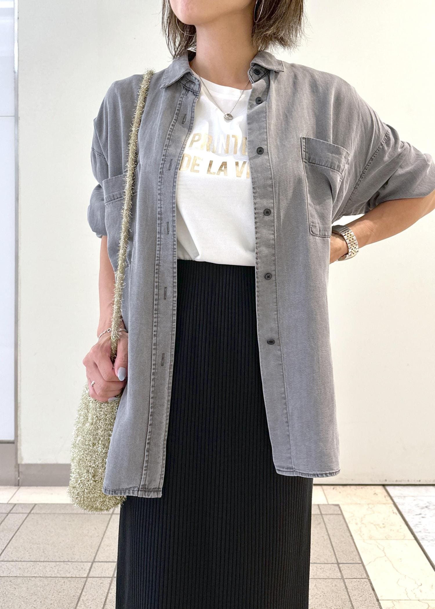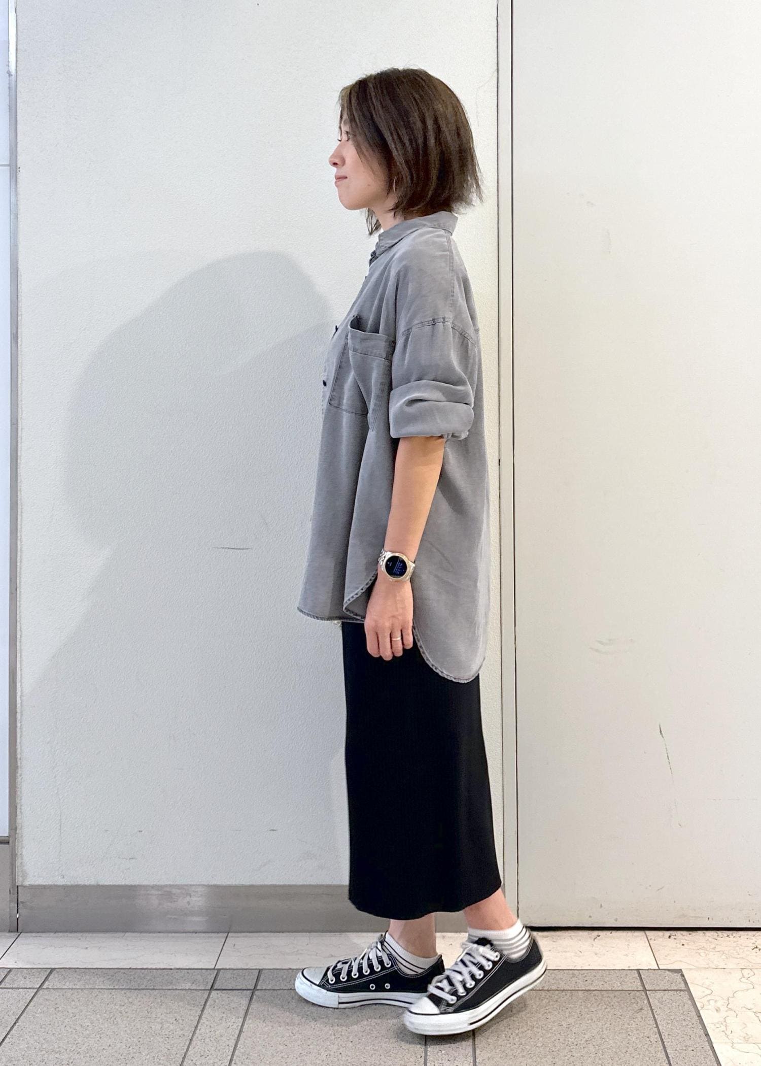 ROPÉ PICNICシャンブレーデニム調シャツチャコール / 38¥4,499レビュー柔らかい生地感のデニム調デザイン。オーバーサイズで袖丈は手の甲が隠れ、着丈はお尻が隠れる長さです。