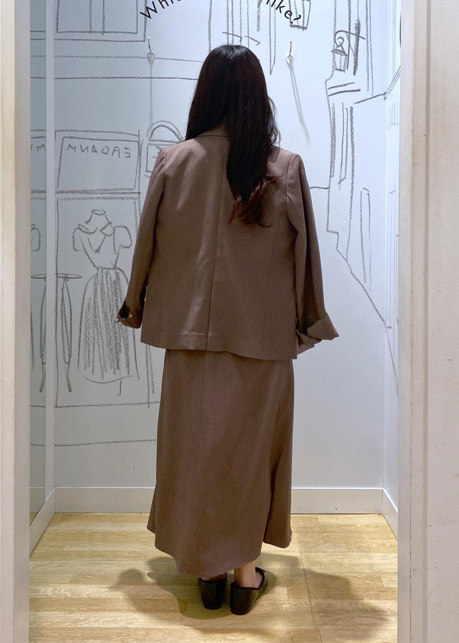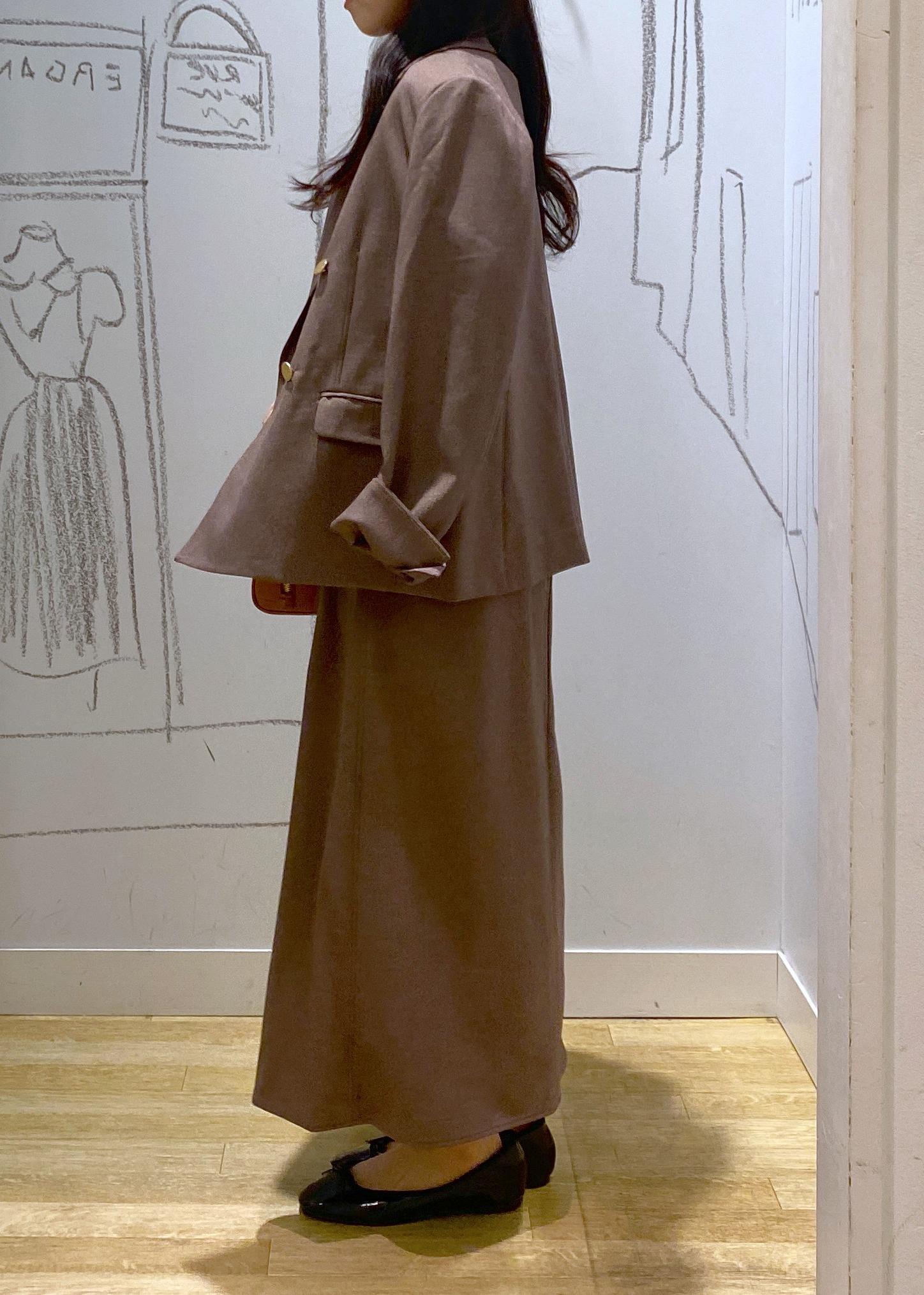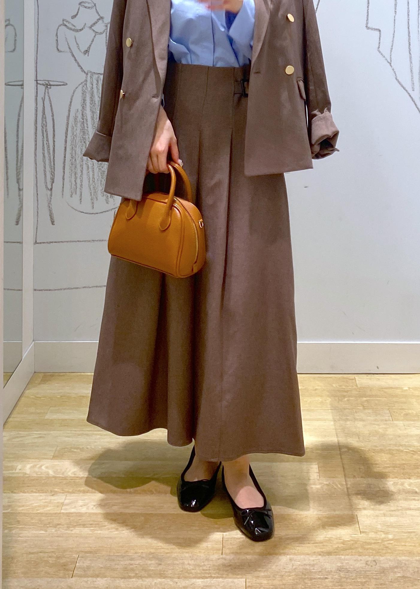 ブラウンと淡めのお色味なのでインナーをパキッとしたブルーを合わせることでコーデにメリハリがでます◎