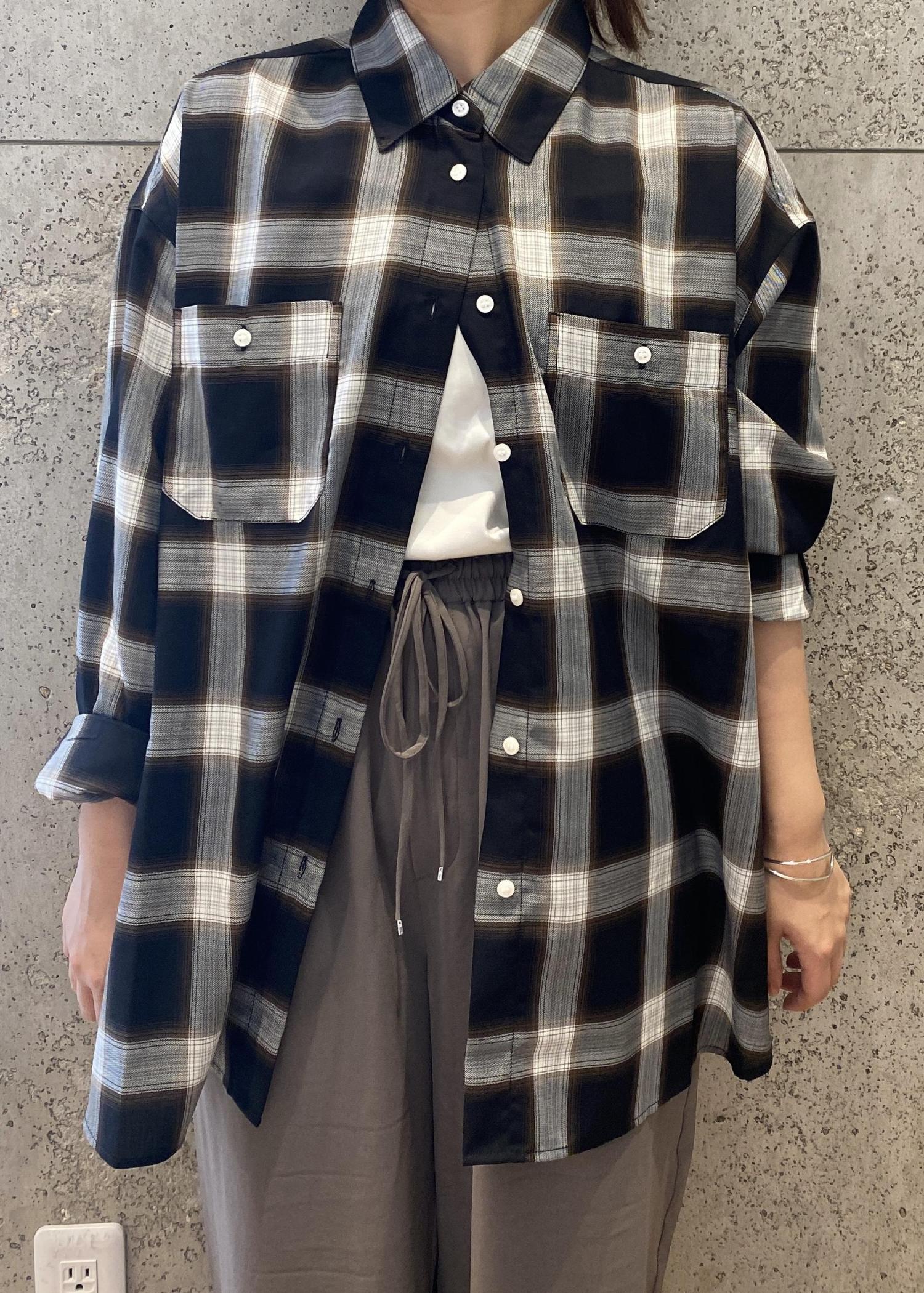 ROPÉ PICNICオンブレチェックシャツ/UVケアブラック / 38¥3,993レビューヒップが隠れるくらいの長めの丈ですが、深めのサイドスリットが入っていて薄手で軽めの素材感のシャツですので低身長さんでも重たく見えにくいです。