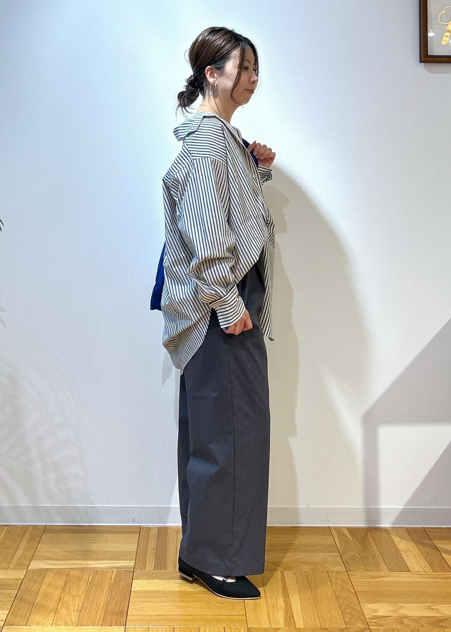 オーバーシルエットで、袖丈も長いですがカフスにとめるボタンが二箇所あるのでしっかり止まります。