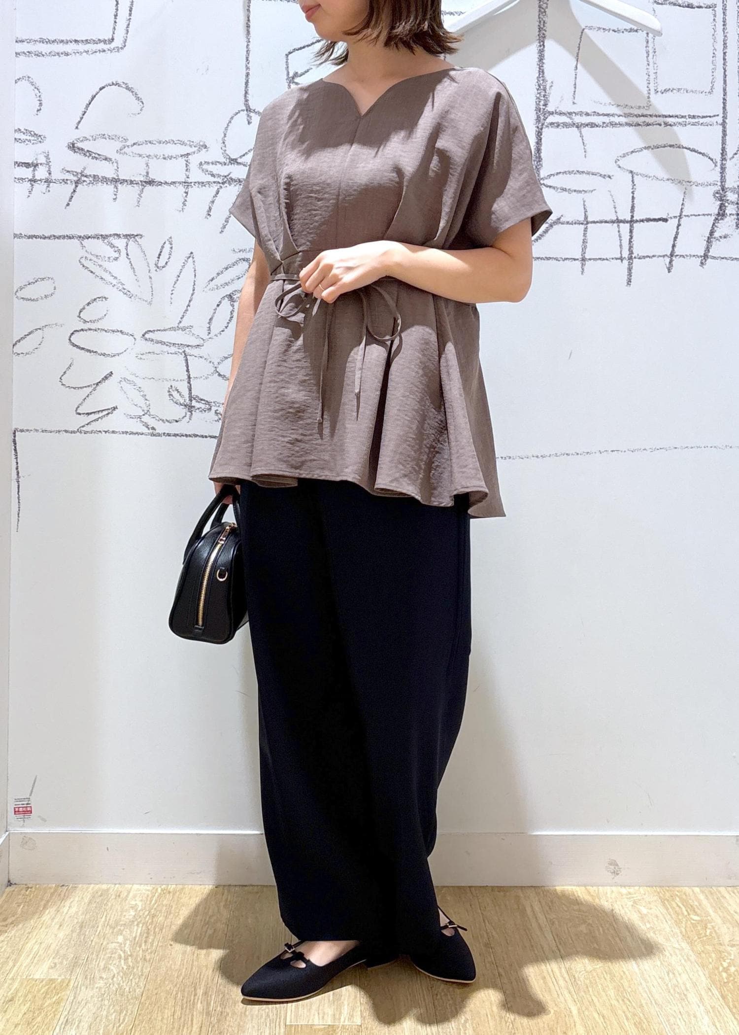 ハイウエストの切り替えですっきりとスタイルアップしてみえます。