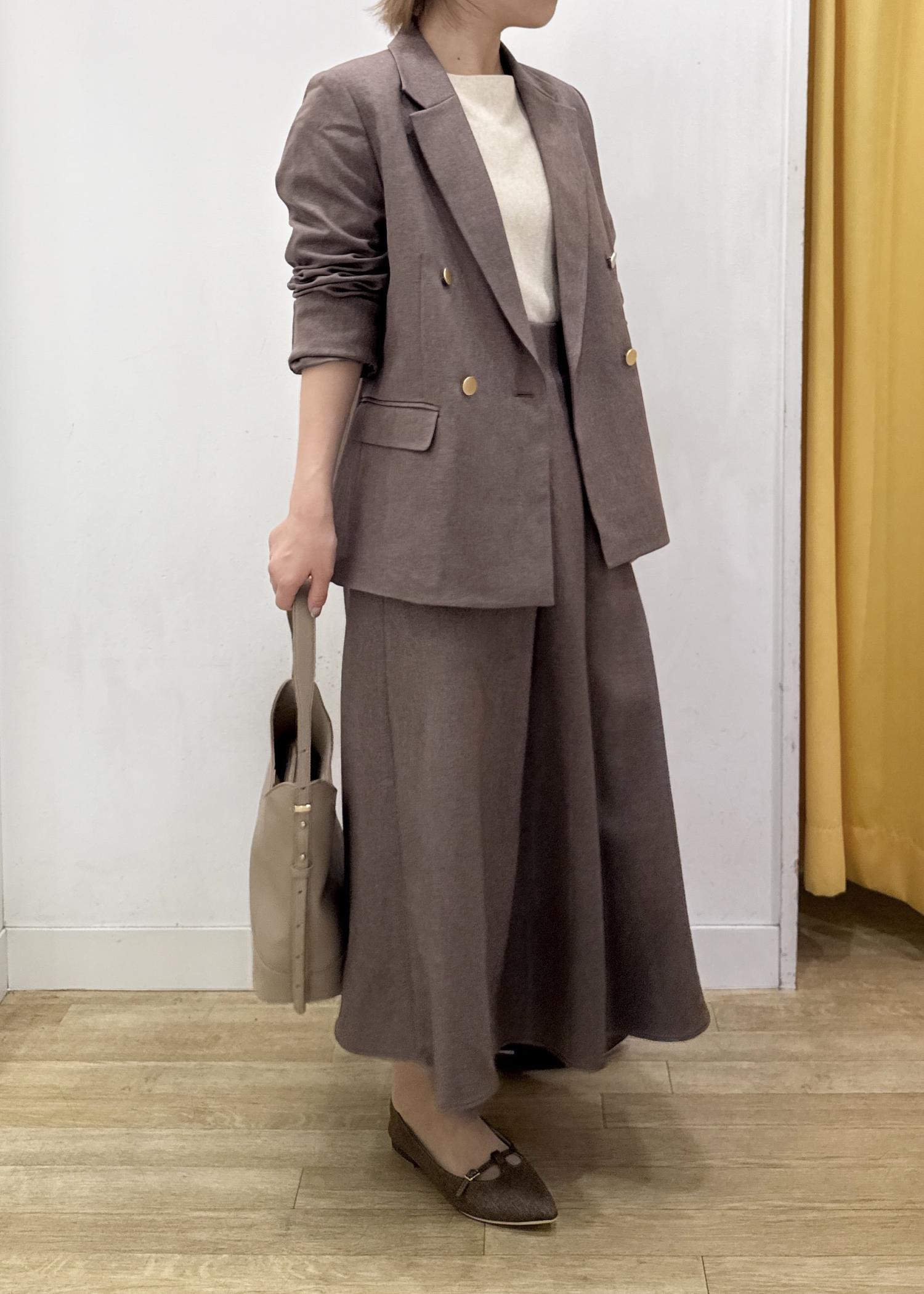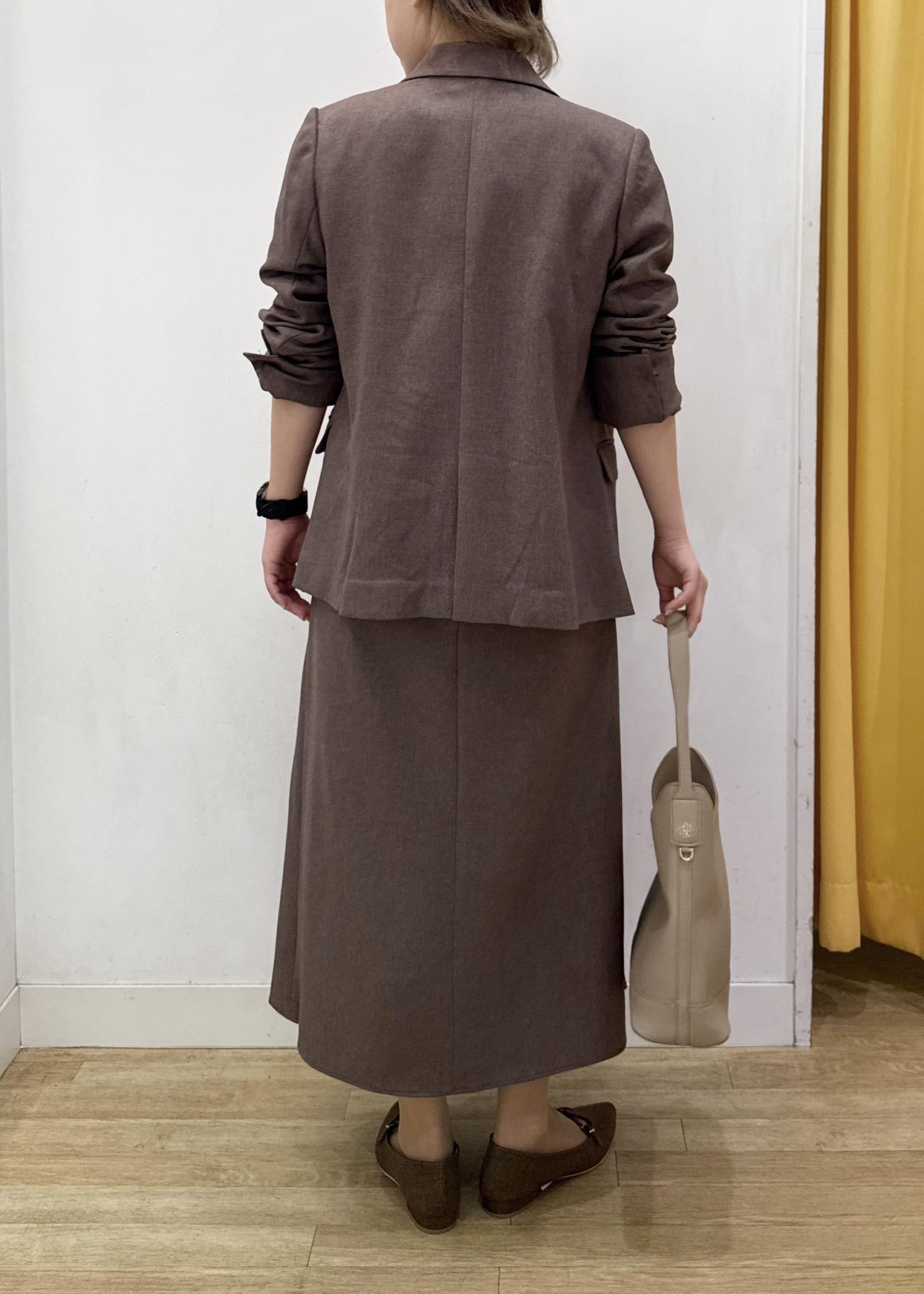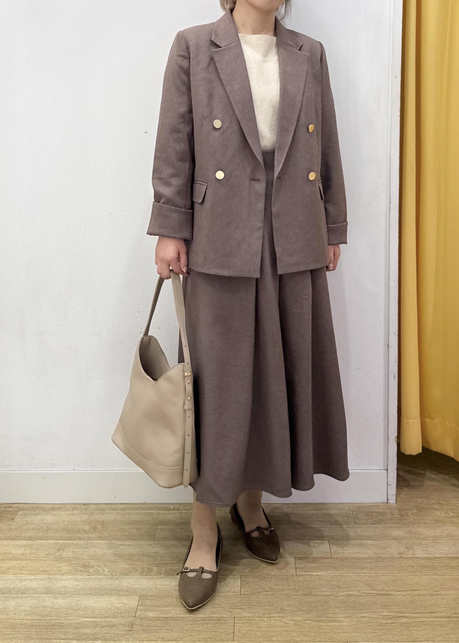 着丈はヒップにかかるぐらいの長さで、スカート、パンツどちらにも合わせやすい着丈です。 -