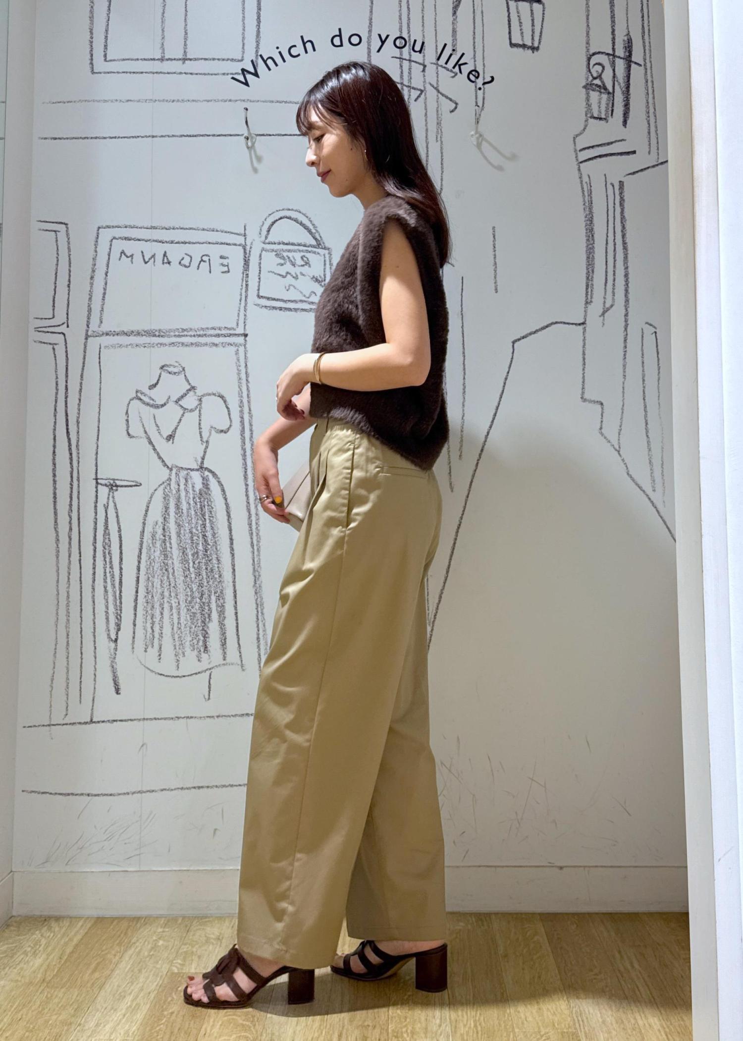 アウトレットROPÉ PICNIC【UVカット・接触冷感】タックチノワイドパンツベージュ / 36¥5,192レビュー骨格ウェーブなのでハイウエストデザインはスタイルアップ効果が大きく好きなデザイン。コシとハリ感のある生地なのでカジュアル、上品どちらのイメージでもスタイルが決まります。38サイズはウエストが大きく感じたので買うなら36サイズにします。38サイズは足元に少し溜まる長さ。36サイズはくるぶしが隠れ、足の甲に若干触れる長さです。