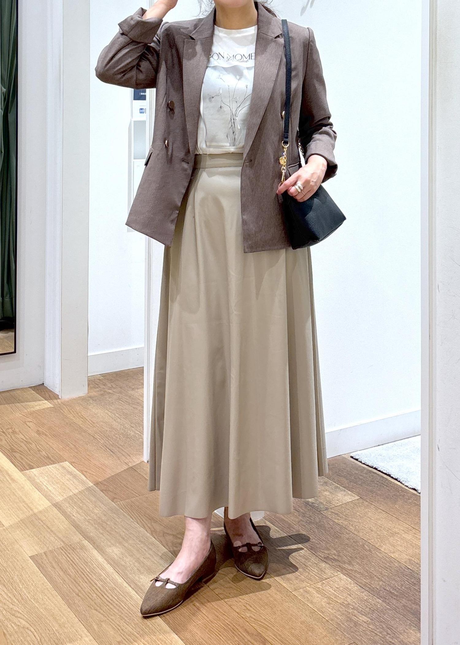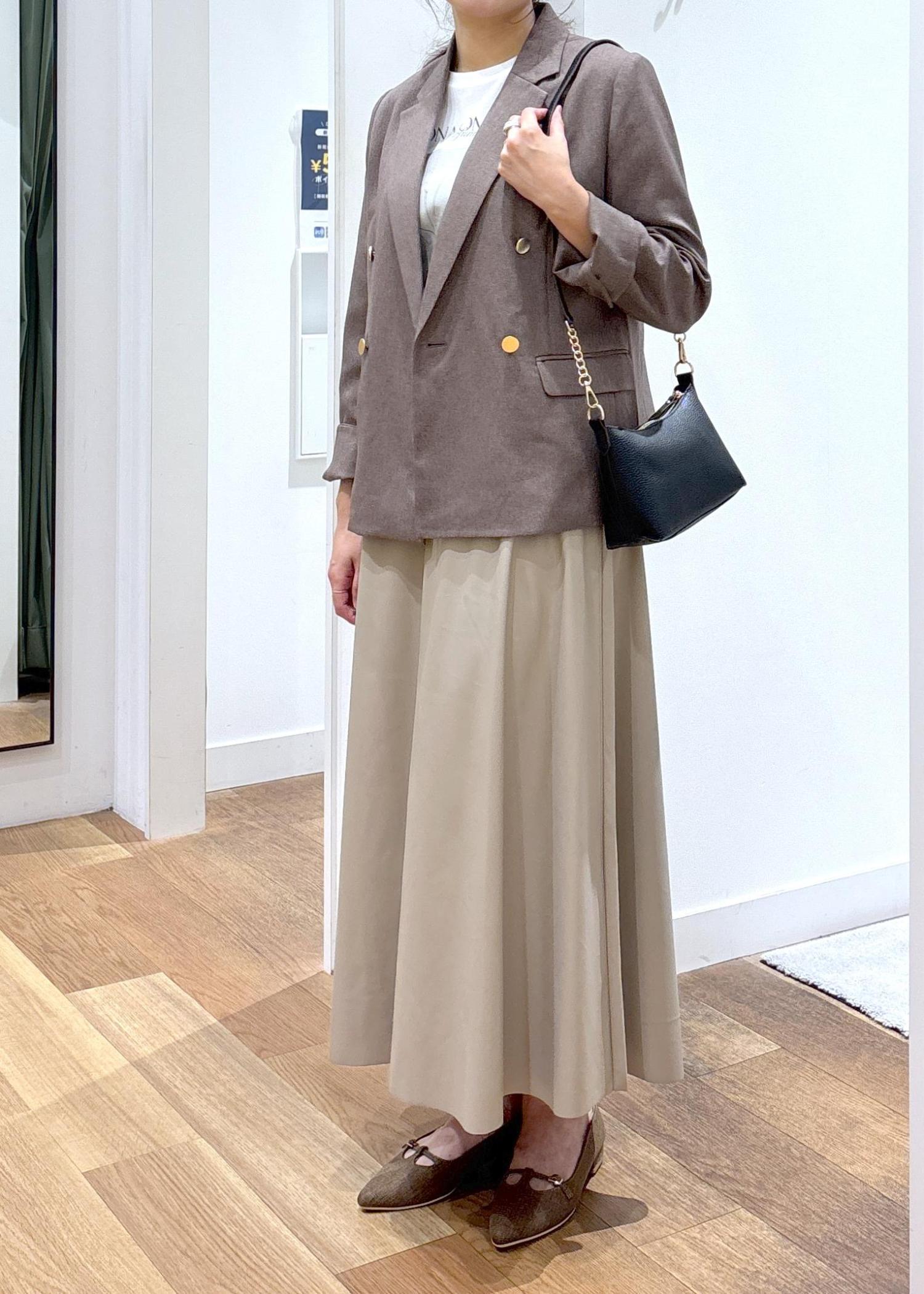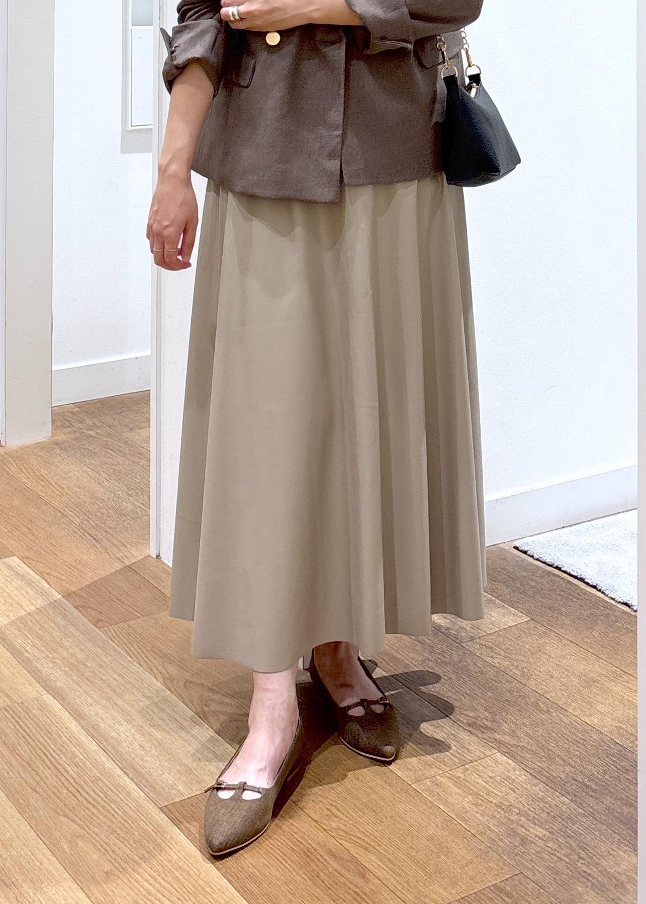 ROPÉ PICNICシンセティックレザーフレアロングスカートベージュ / M¥4,994レビュースタイリングを一気に秋らしく見せてくれるシンセティックレザーの素材です。