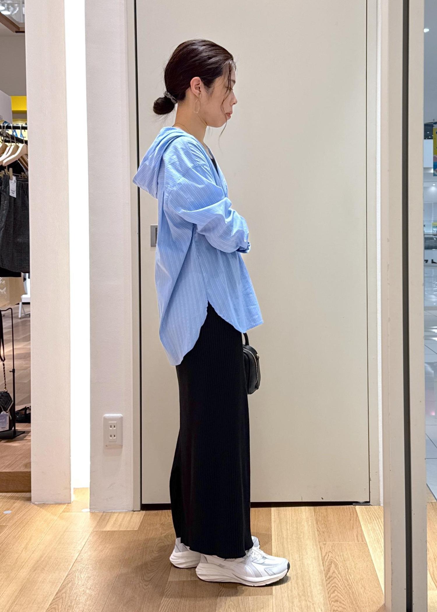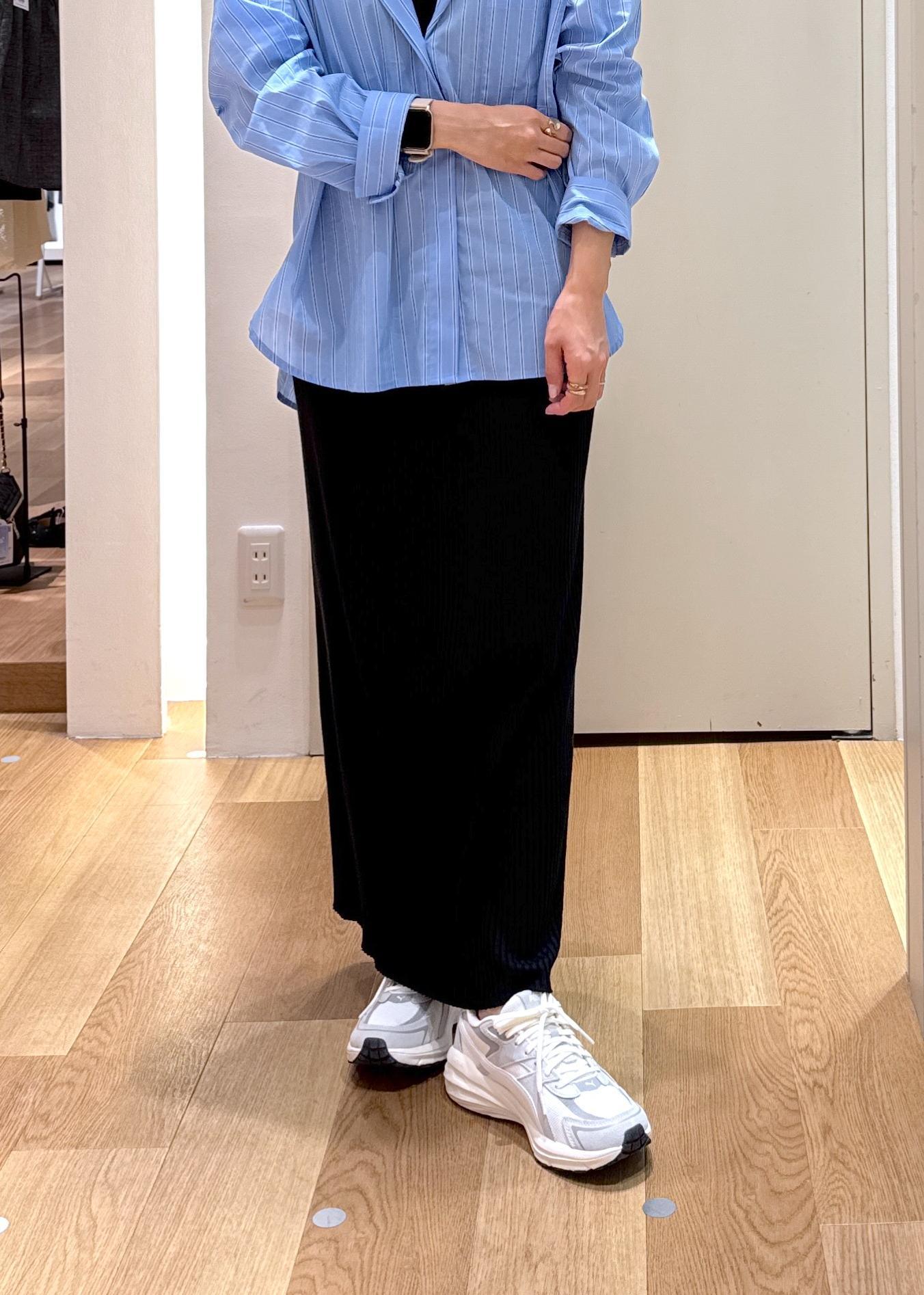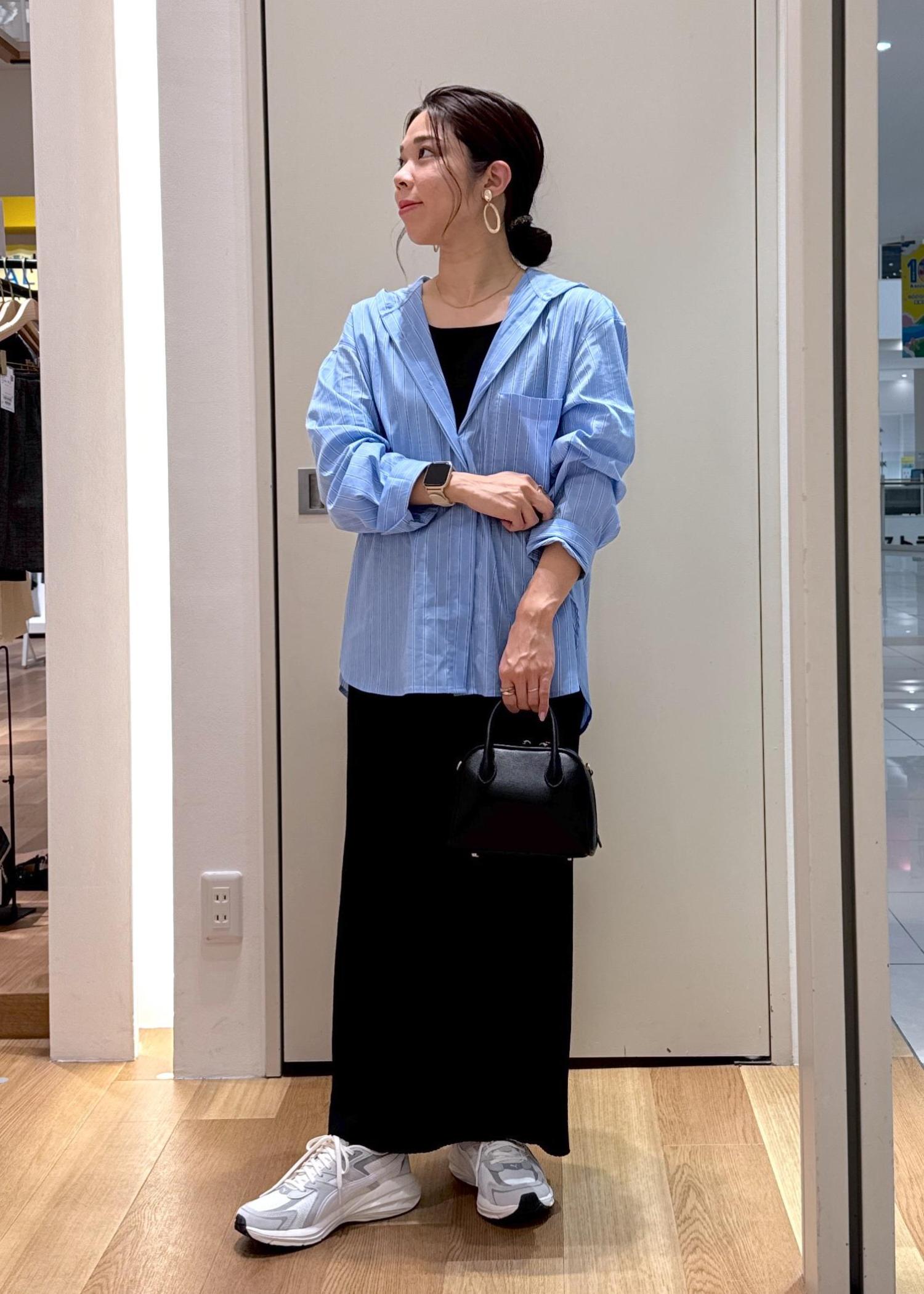 シャツを主役にボトムはスッキリしたスカートにスニーカーで、女性らしさのあるカジュアルスタイルにしてみました!