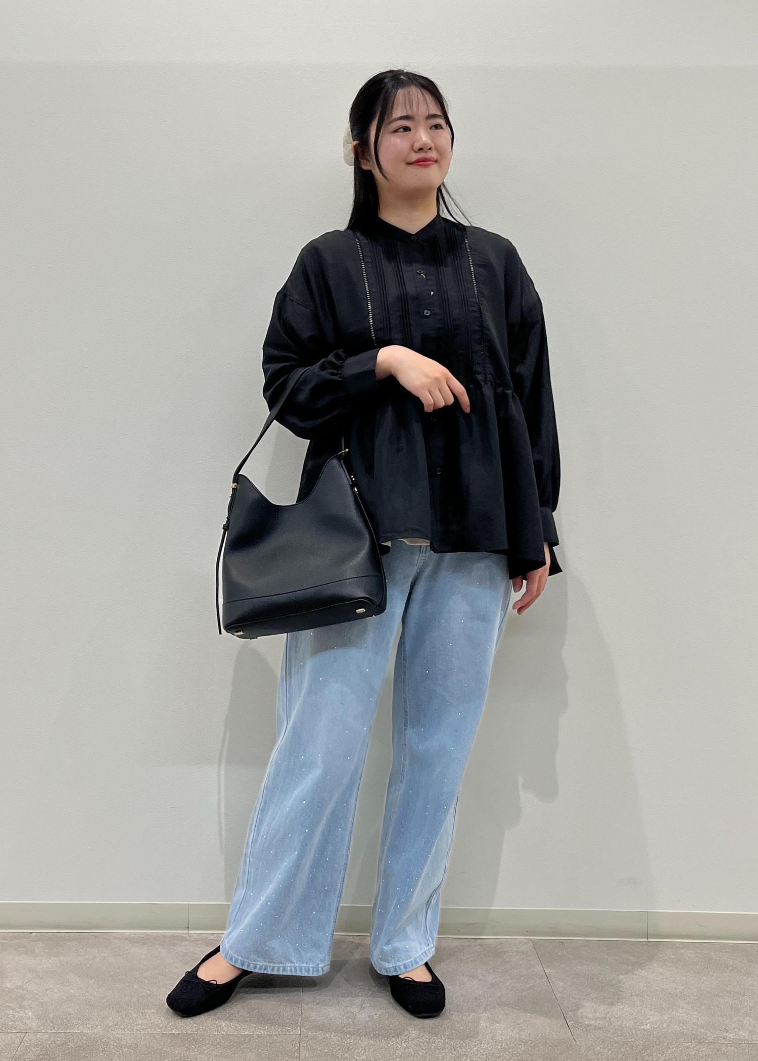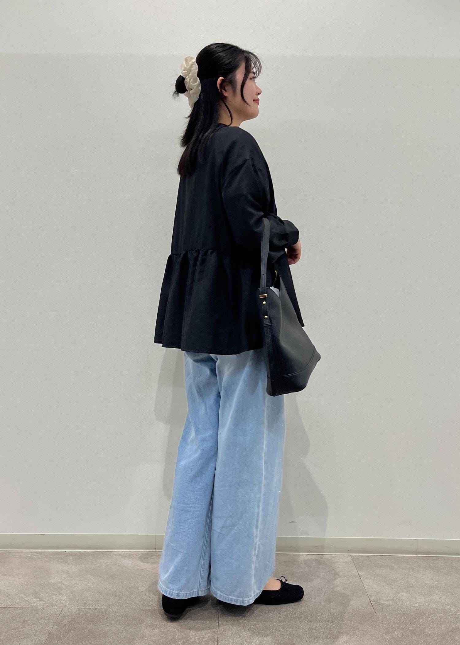 ゆったりシルエットなので骨格ストレートさんはボトムススッキリさせるとバランスが良さそうです。 -