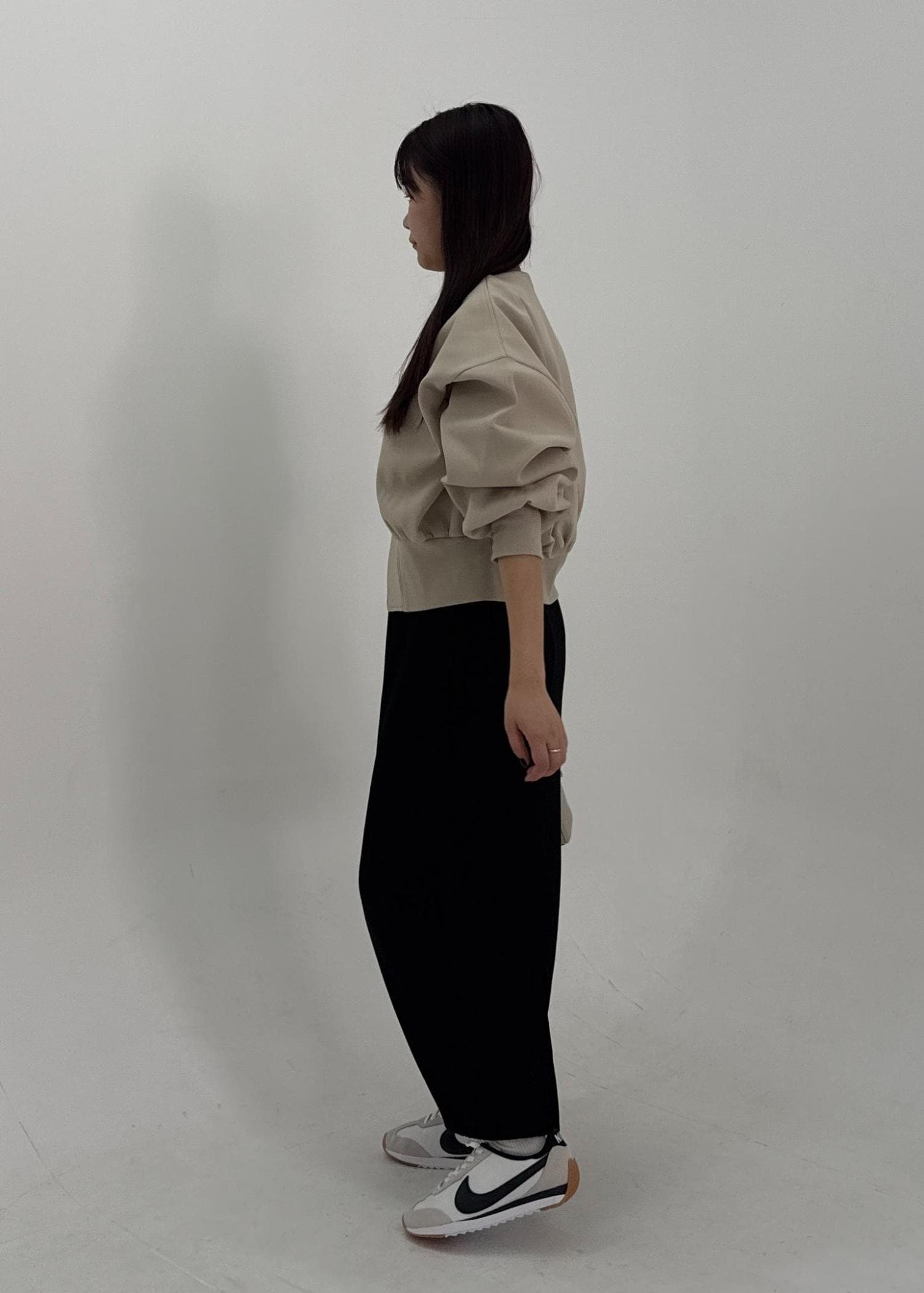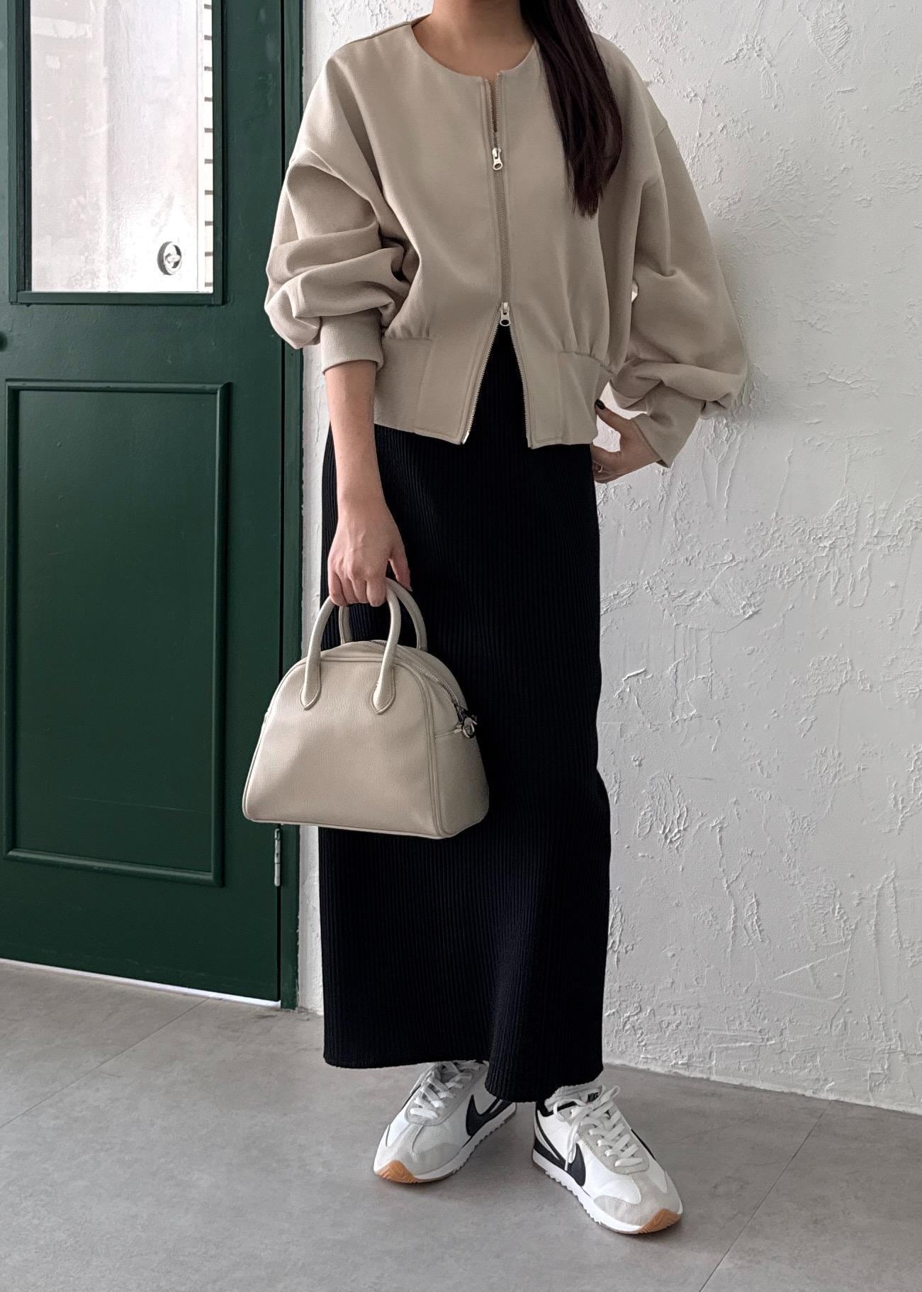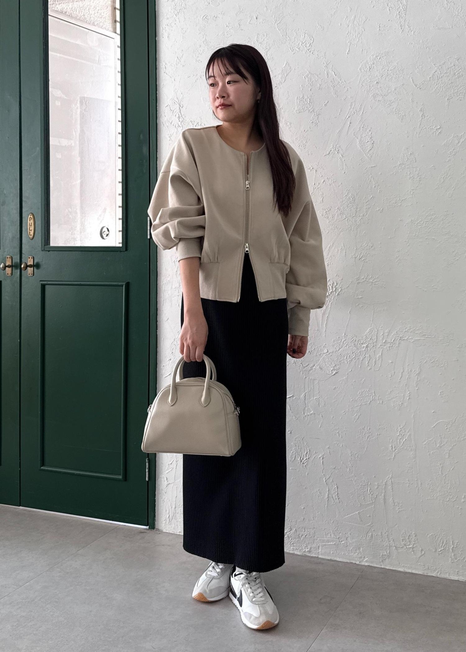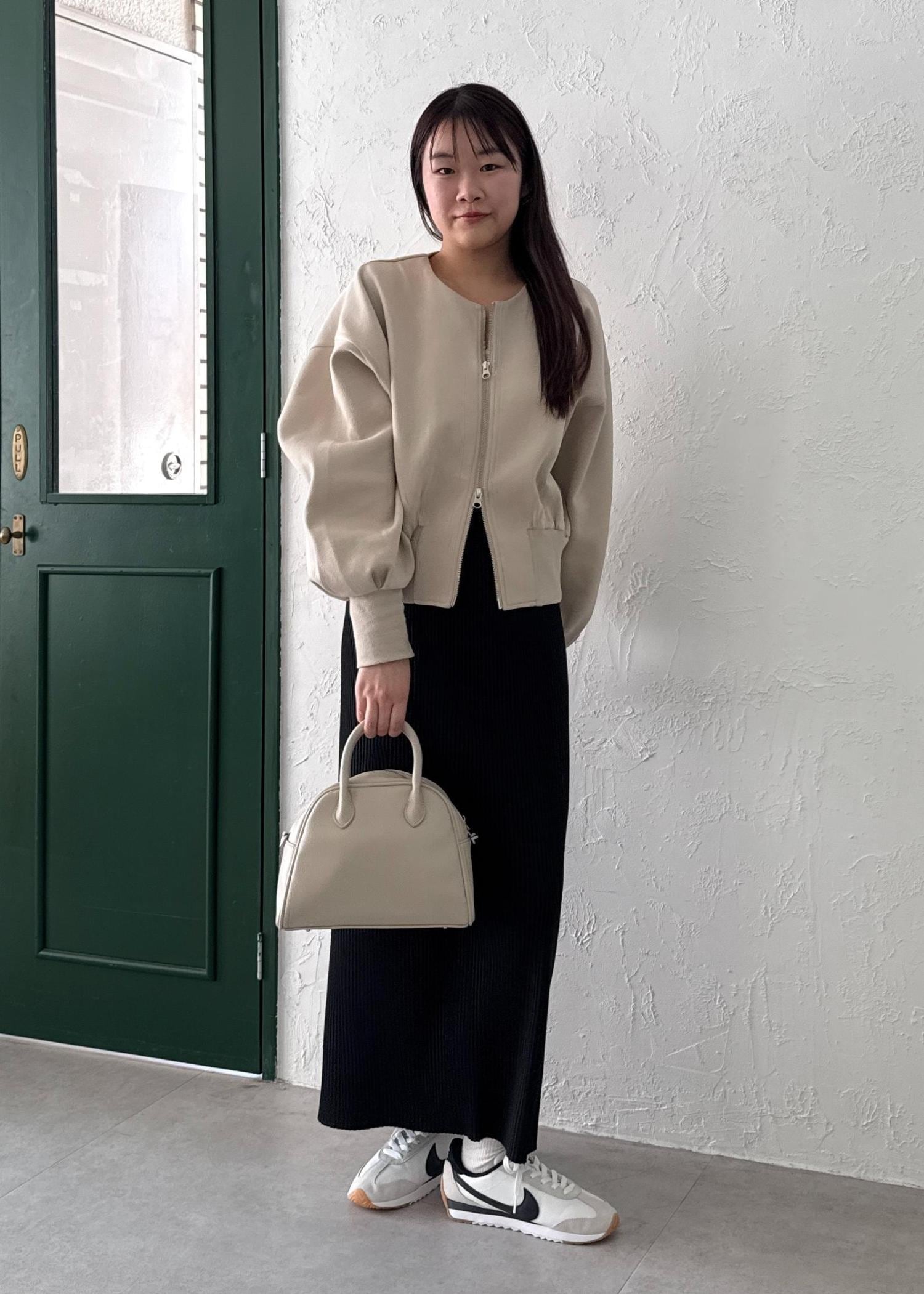 短めの丈感なのでスカートにもパンツにも合わせやすく、スタイルアップして見えます。 -