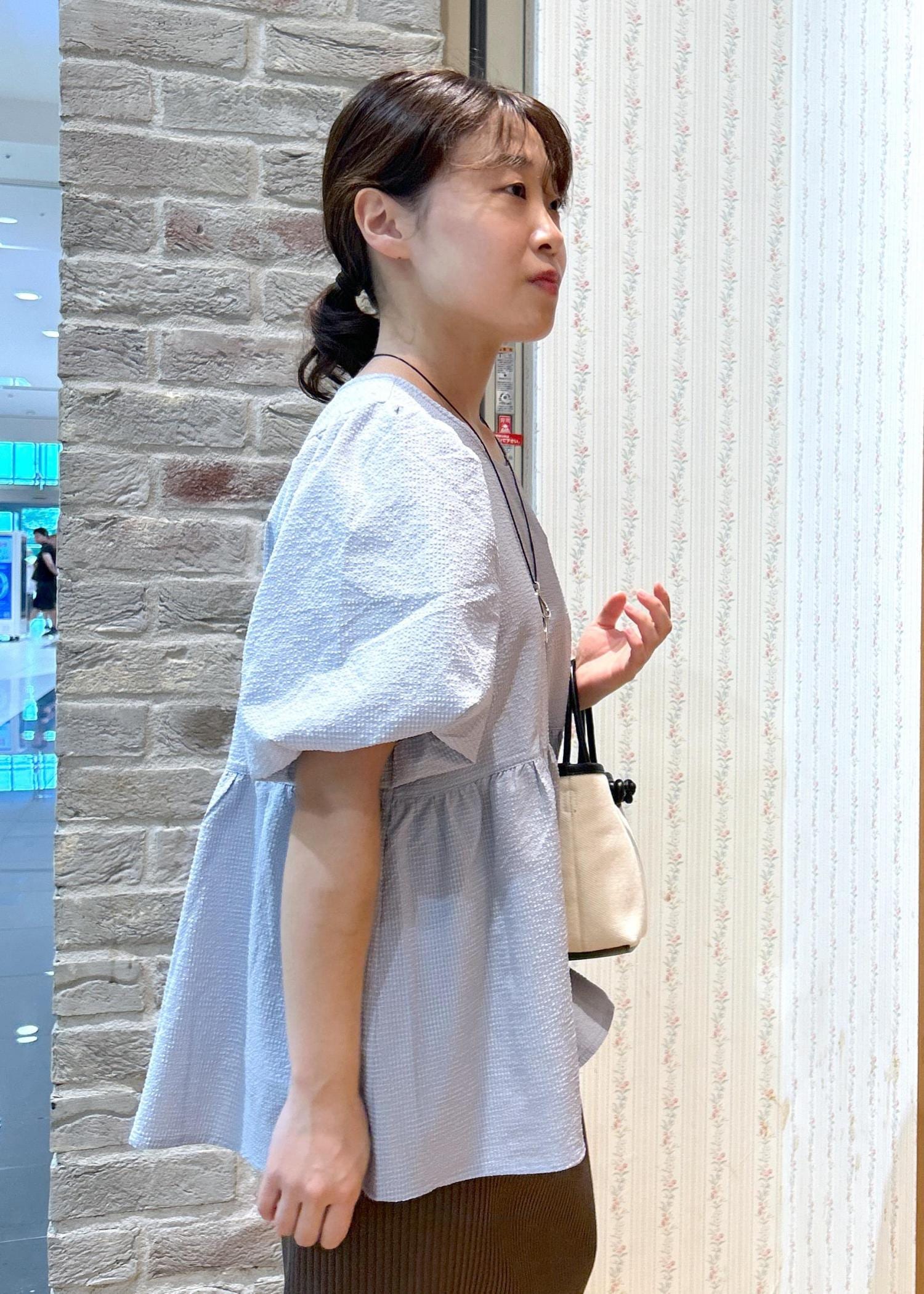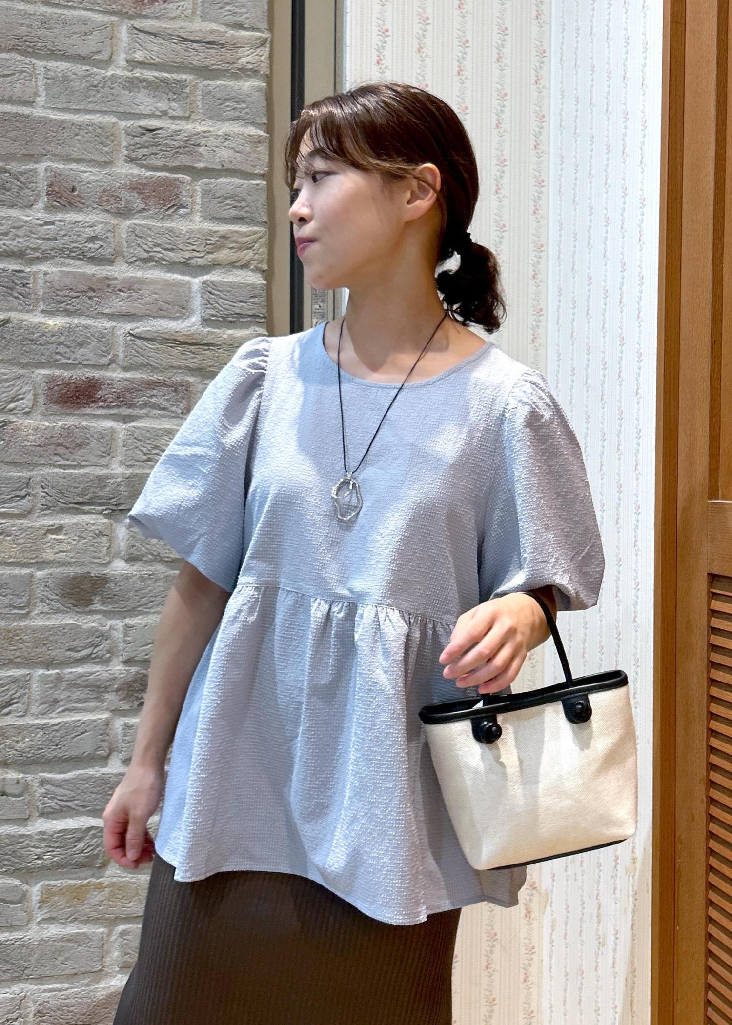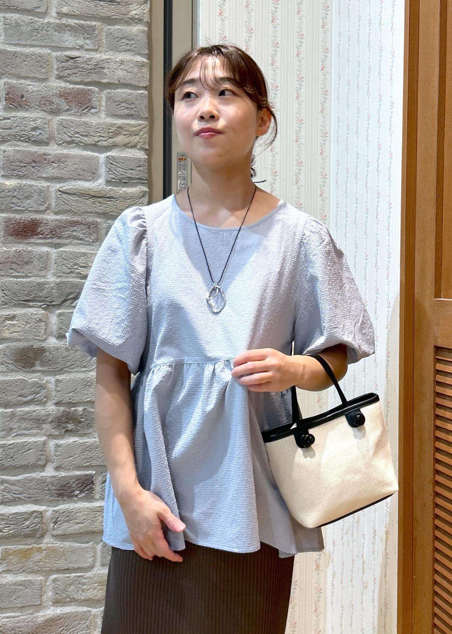 ふんわりと可愛いブラウスは、アイラインでタイトめなシルエットのスカートと合わせて、バランス良くコーディネートしてみました!