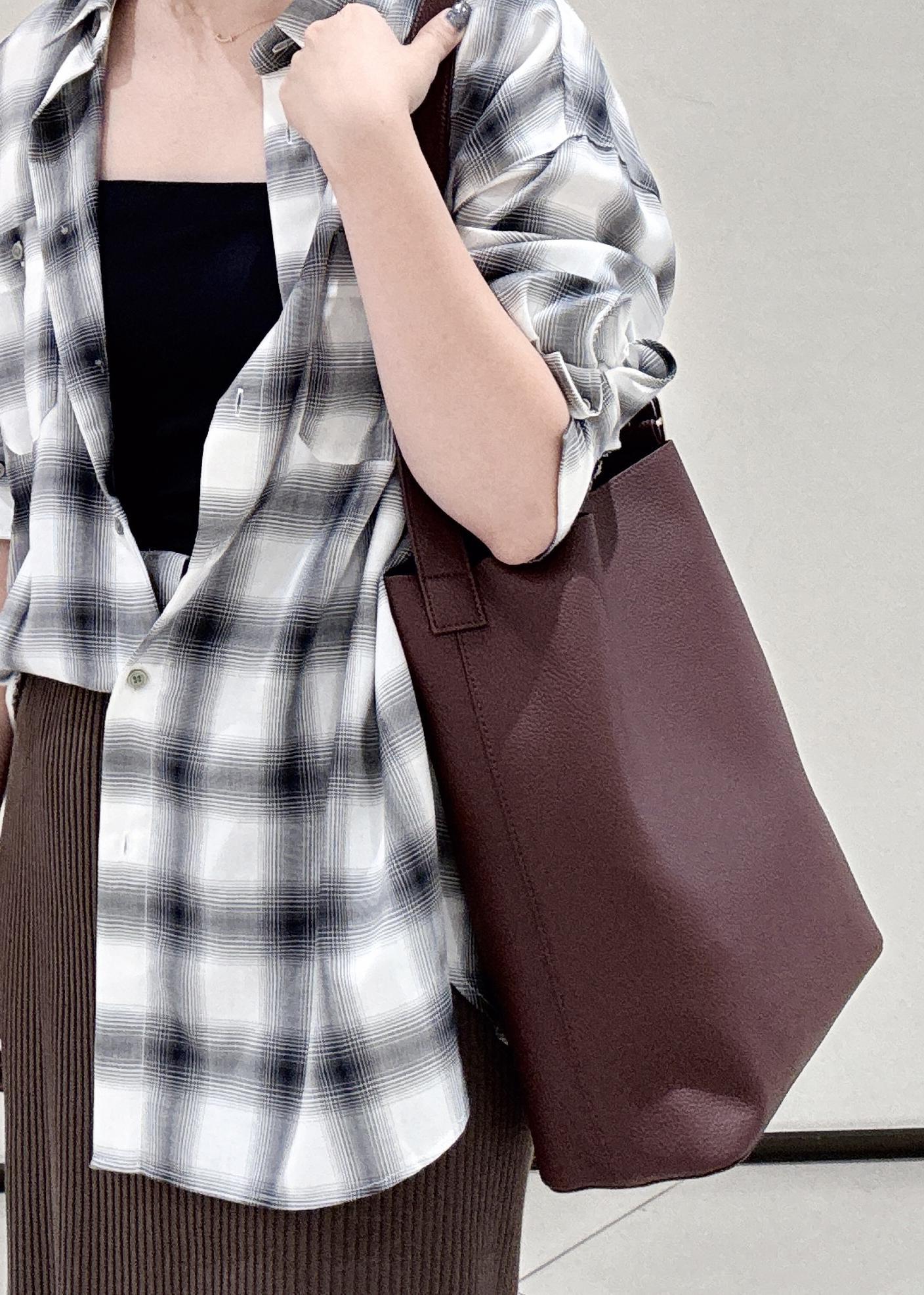 A4サイズが入る大きさなので通勤にも使いやすいです。ショルダーが長めにので肩に掛けやすくボリューム感がないので身体にフィットして持ちやすいです。