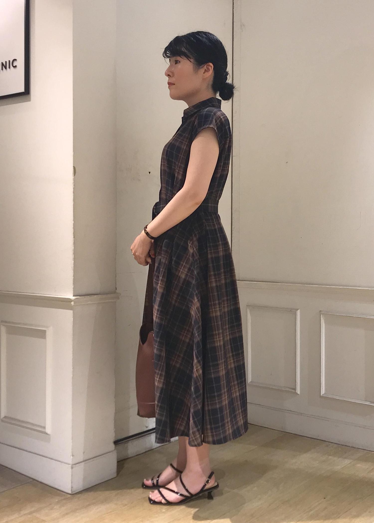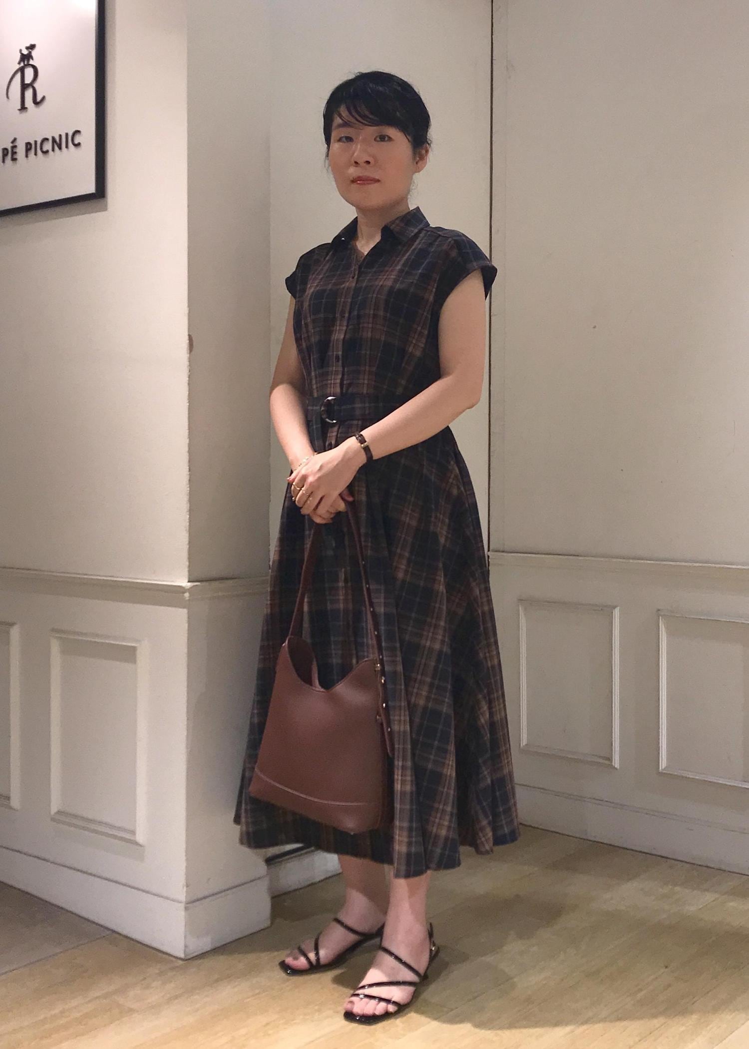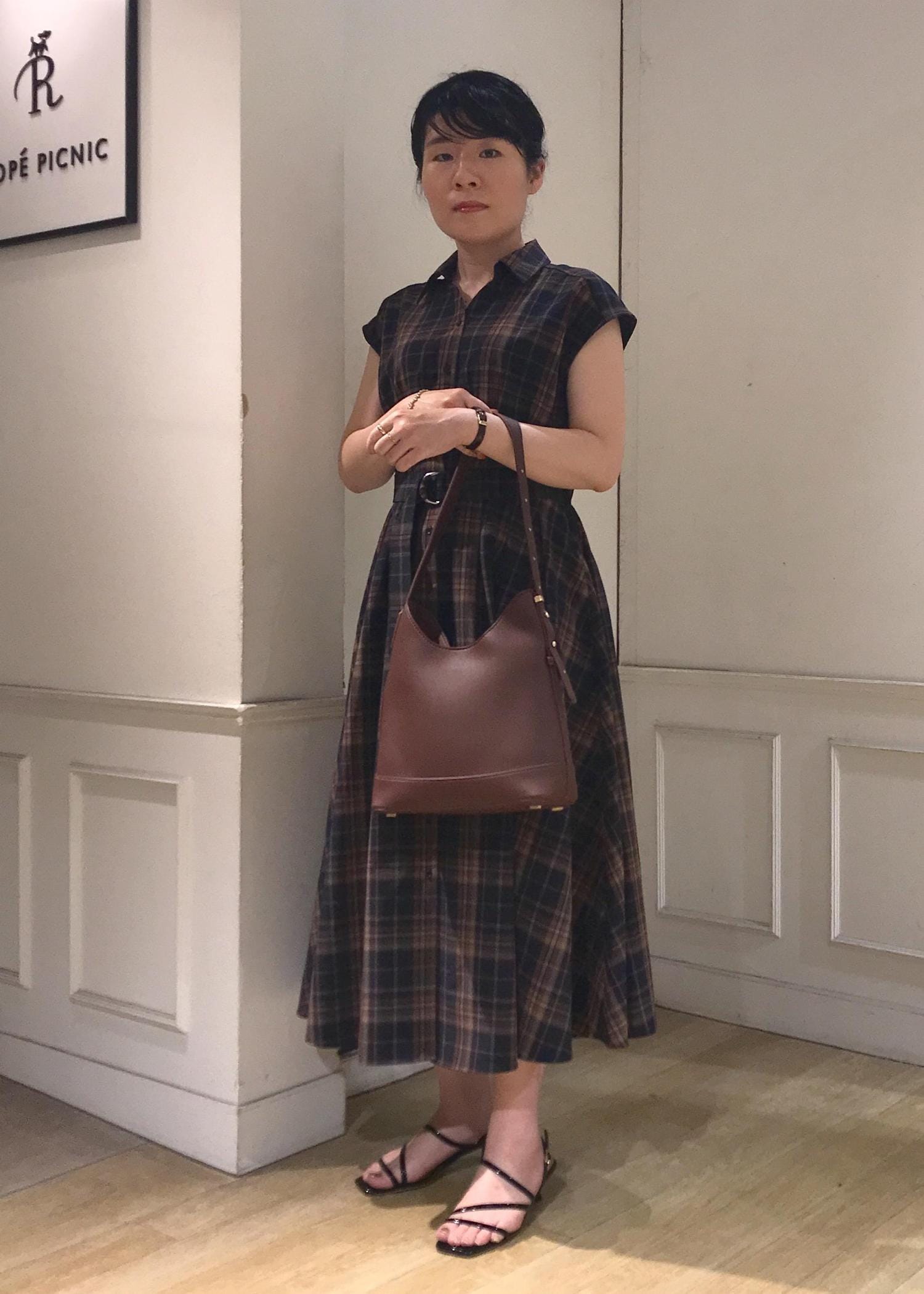 深みのある色合いのチェックに女性らしいシルエットで秋らしい着こなしを意識しました。