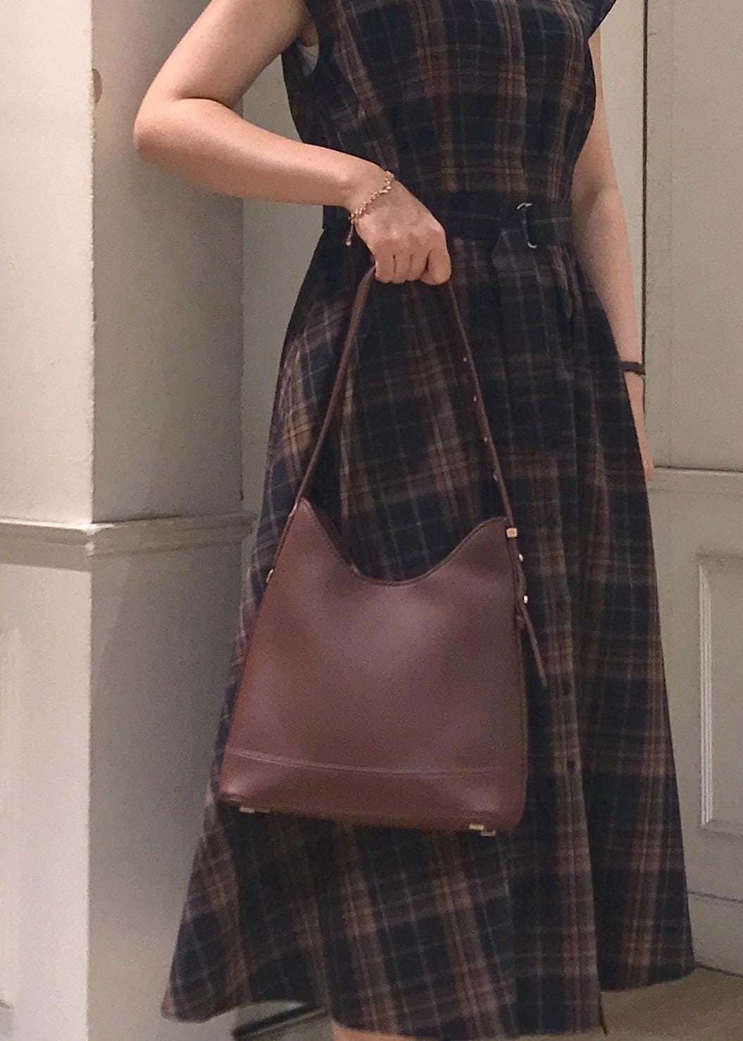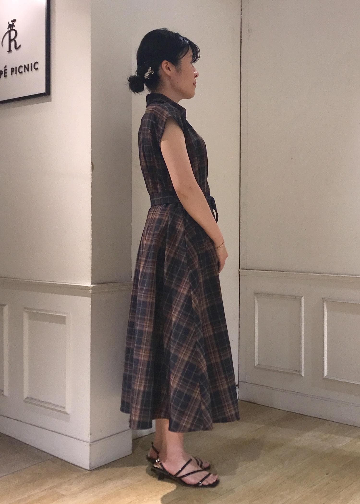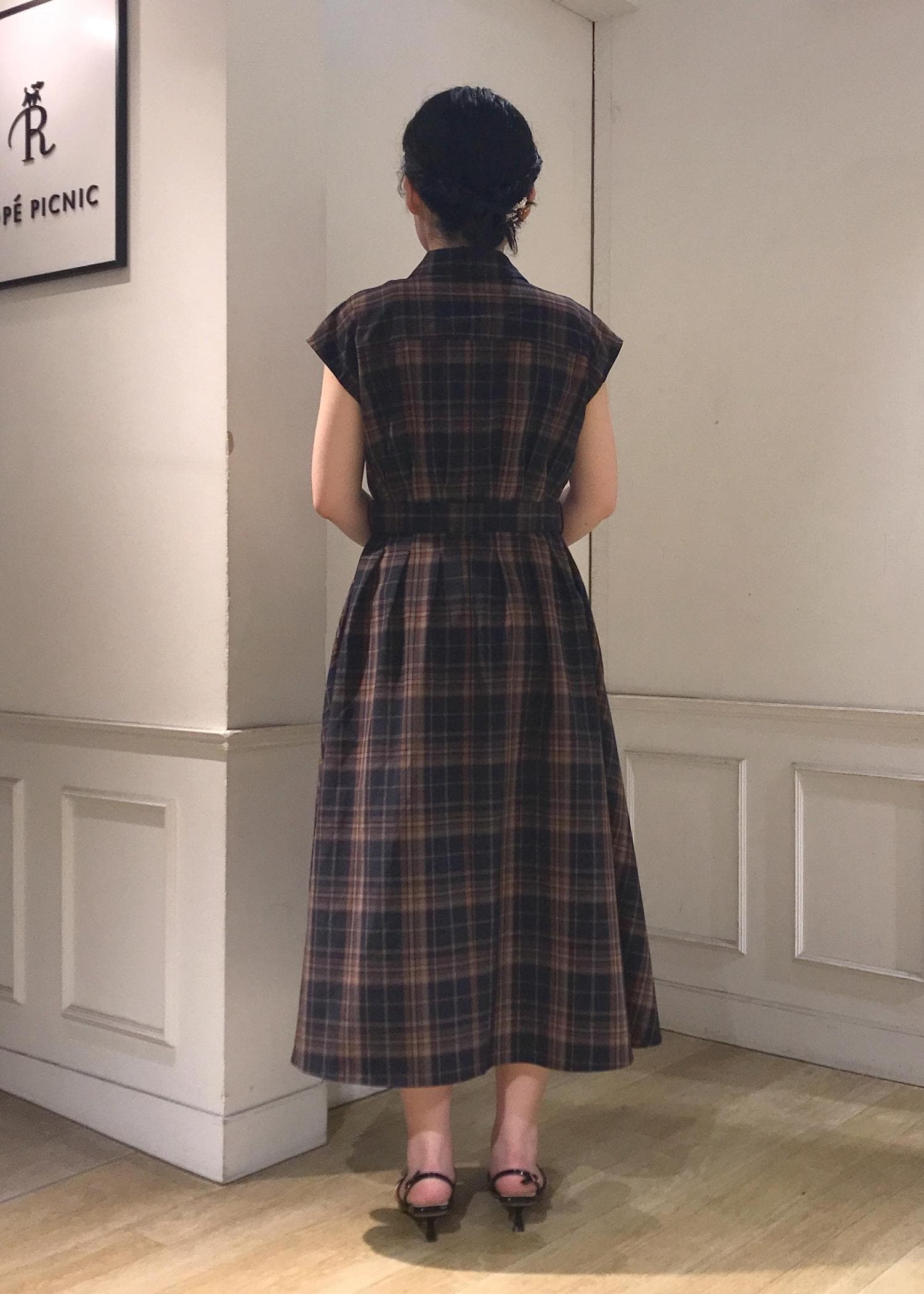 深みのある色合いのチェックに女性らしいシルエットで秋らしい着こなしを意識しました。