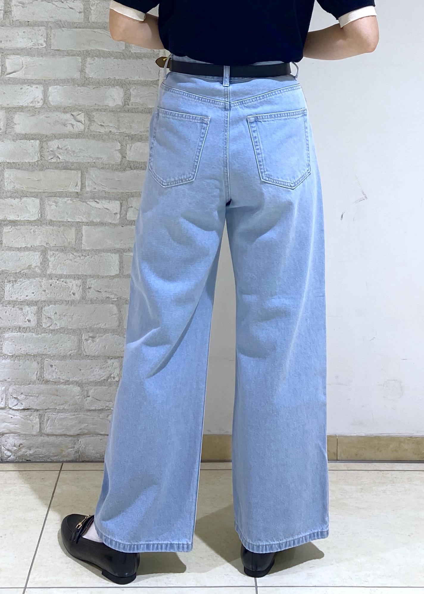 コーディネートに馴染んでくれるキラキラ感がポイントのデニムパンツです。