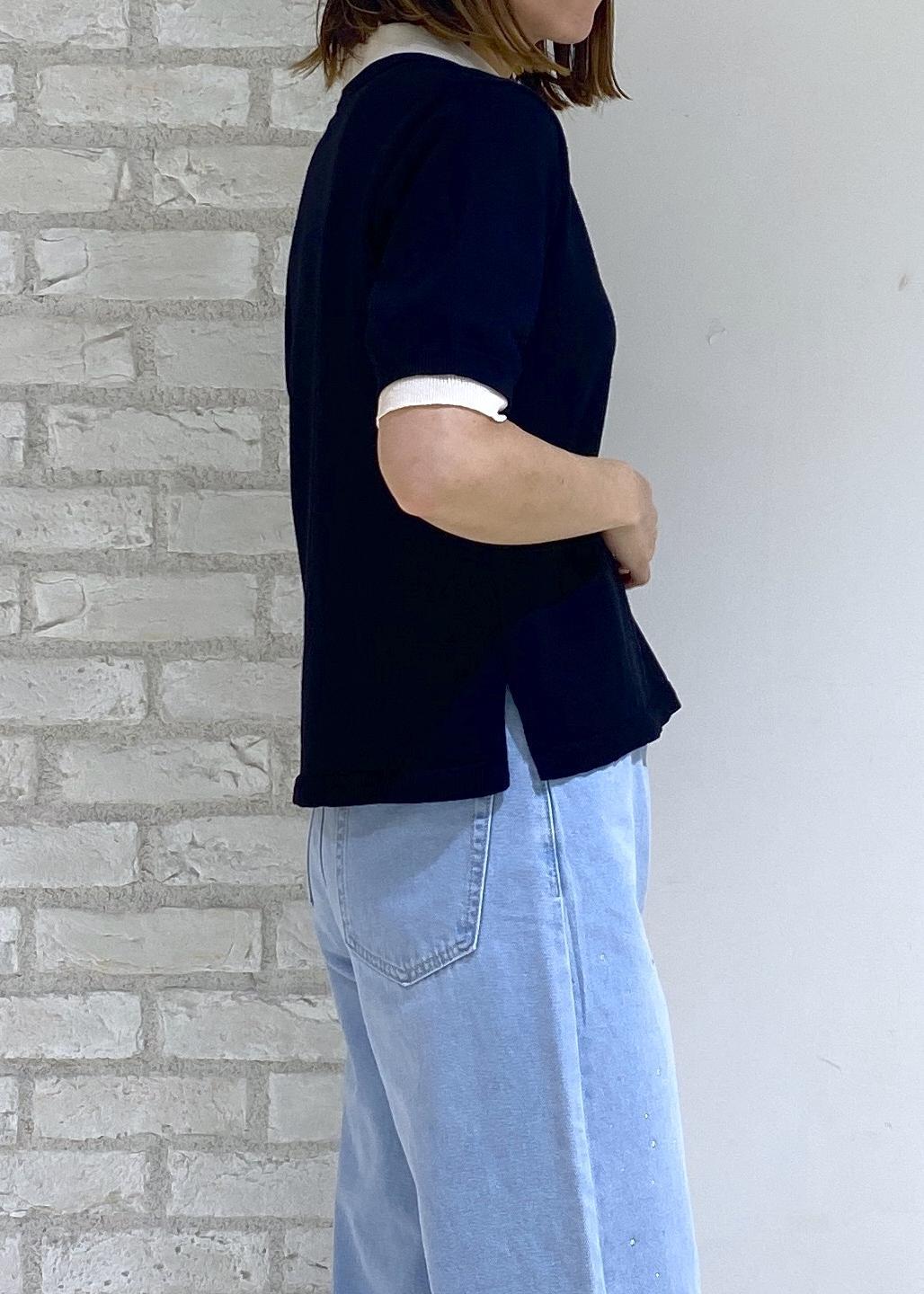 【新色追加】バイカラーレイヤード風ニットポロシャツ