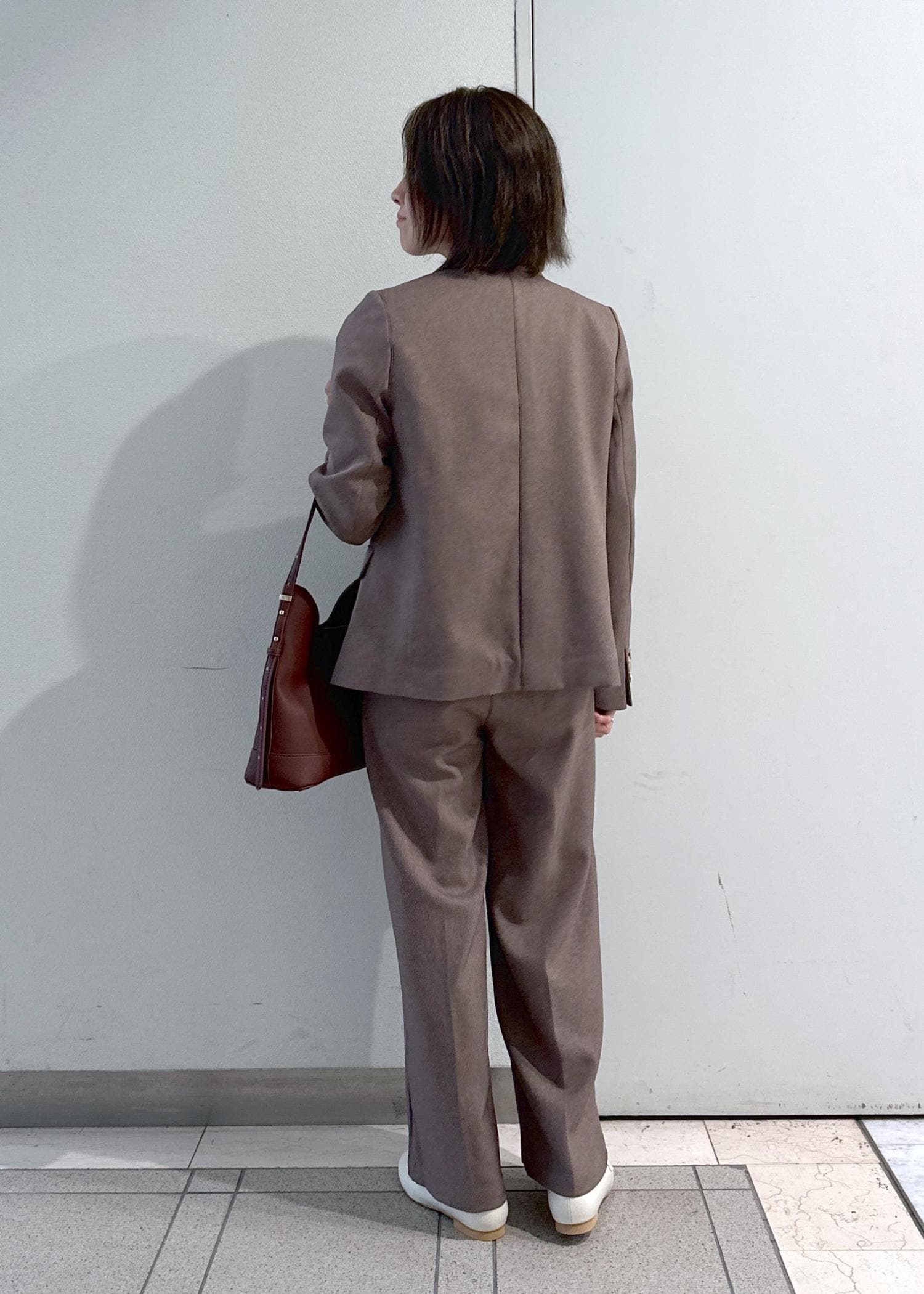 ROPÉ PICNICレディハンサムシリーズ ウールライクウエストタックセミワイドパンツ/セットアップ対応ベージュ系 / S¥5,489レビューゆとりのあるサイズ感でやや大きく感じました。ワイドシルエットで脚のラインを拾いにくいです。着丈は足首がしっかり隠れる長さですがフラットシューズでも合わせて頂けます。