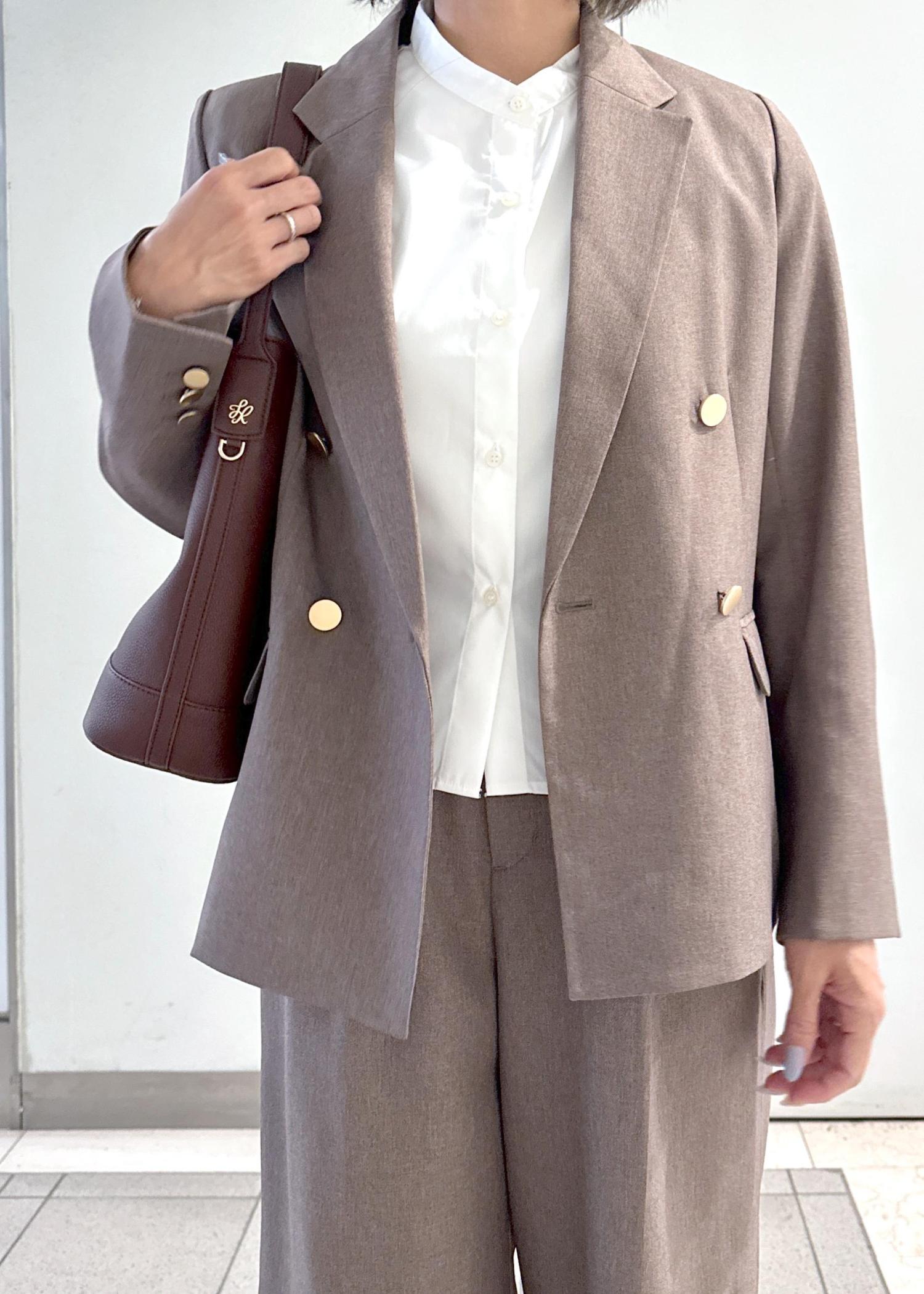 ROPÉ PICNICレディハンサムシリーズ ウールライク金ボタンジャケット(半裏地)/セットアップ・通勤対応ベージュ系 / M¥8,998レビューややゆとりのあるサイズ感。