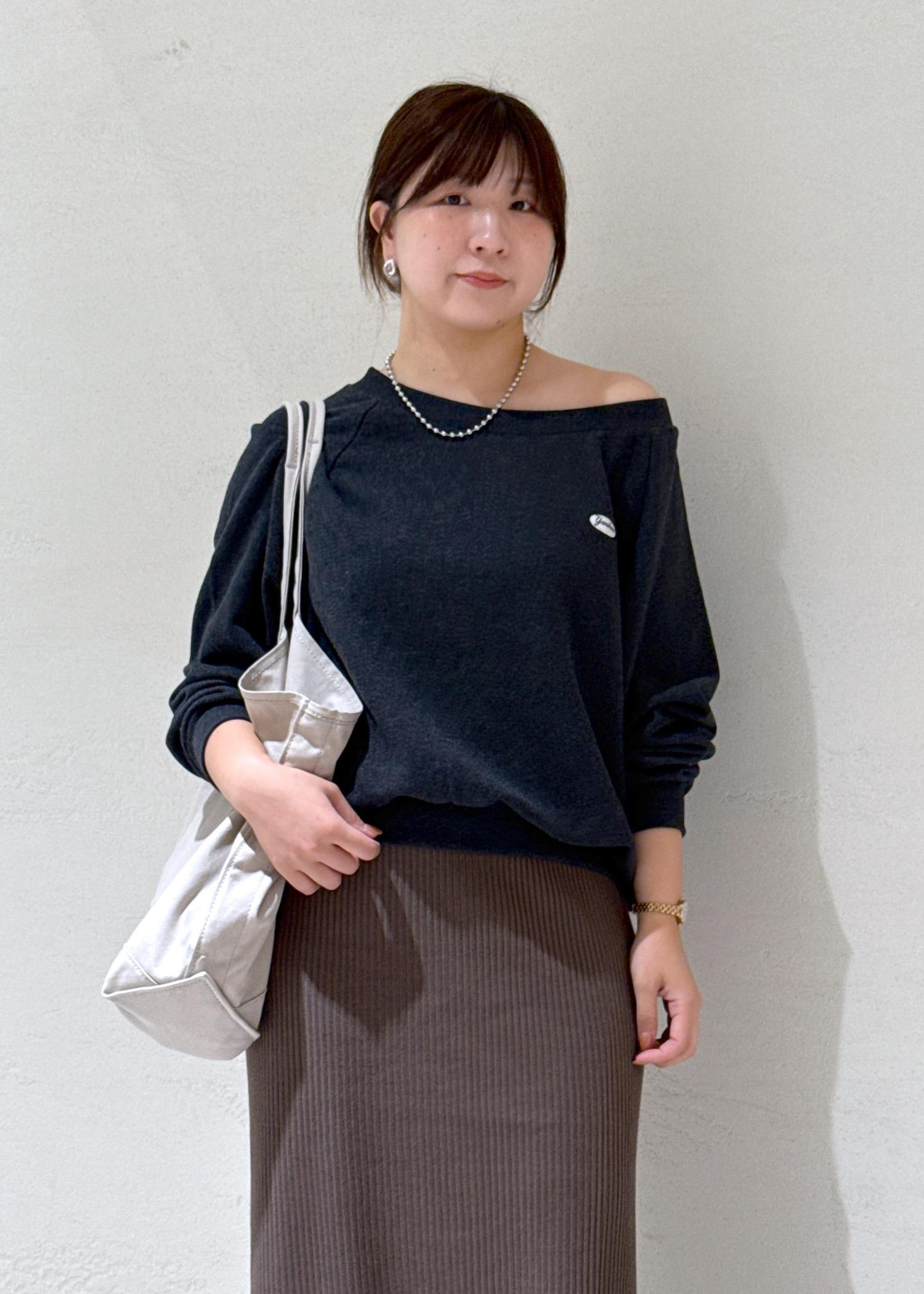 首元はデコルテのラインにそったあき具合で、ワンショルでの着用も可能です。