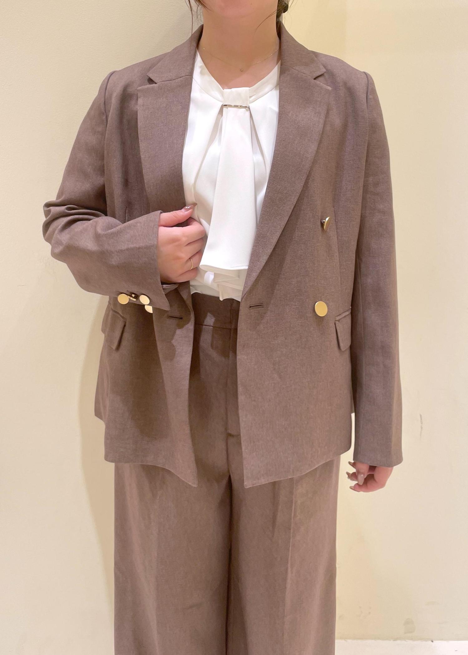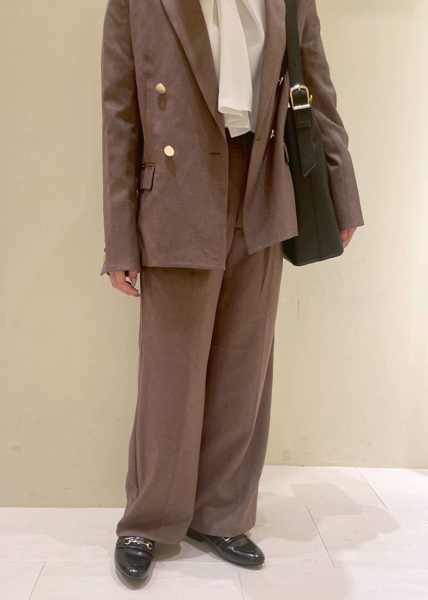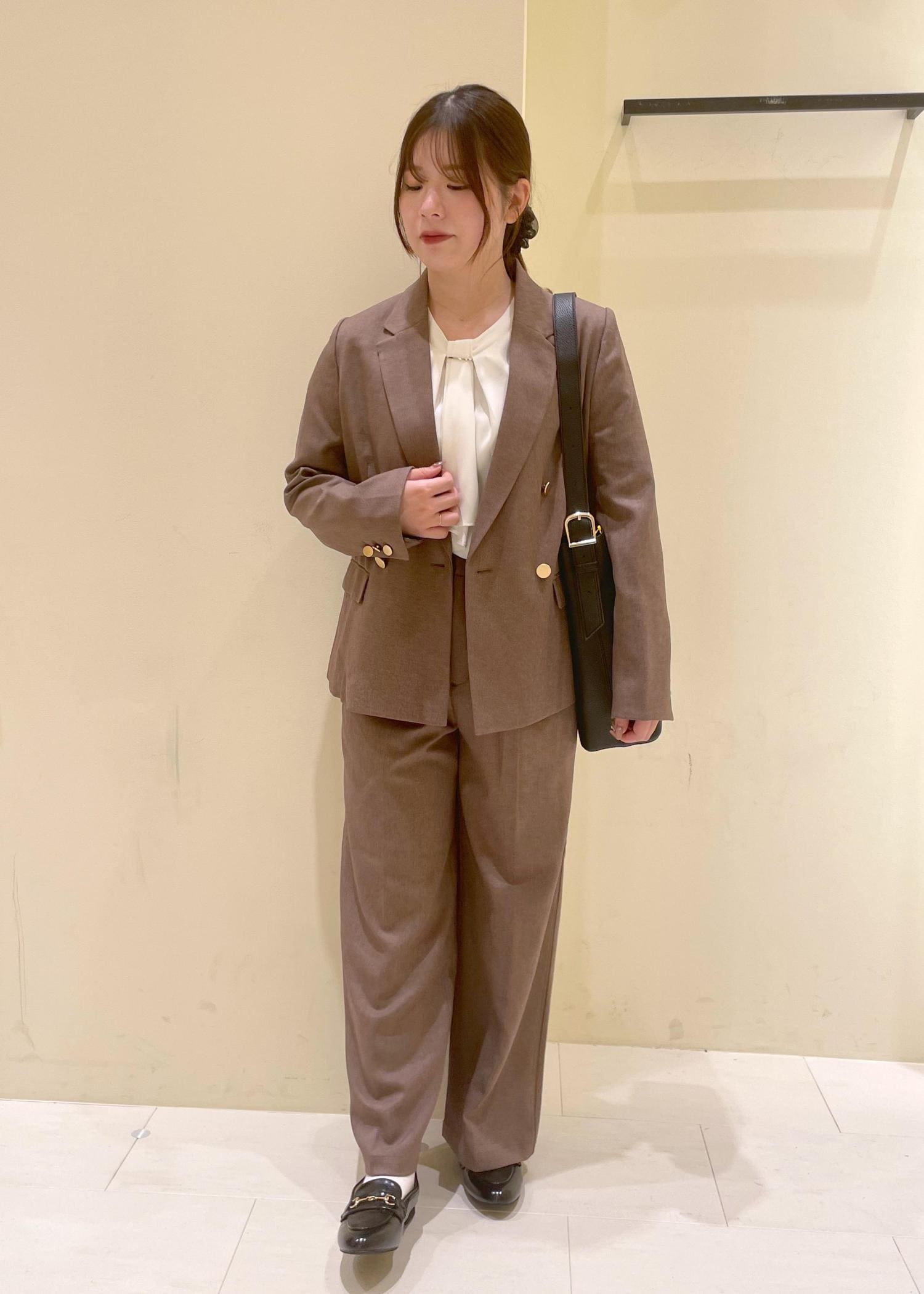 秋らしいカラーにブラウスを合わせてかっちりと。