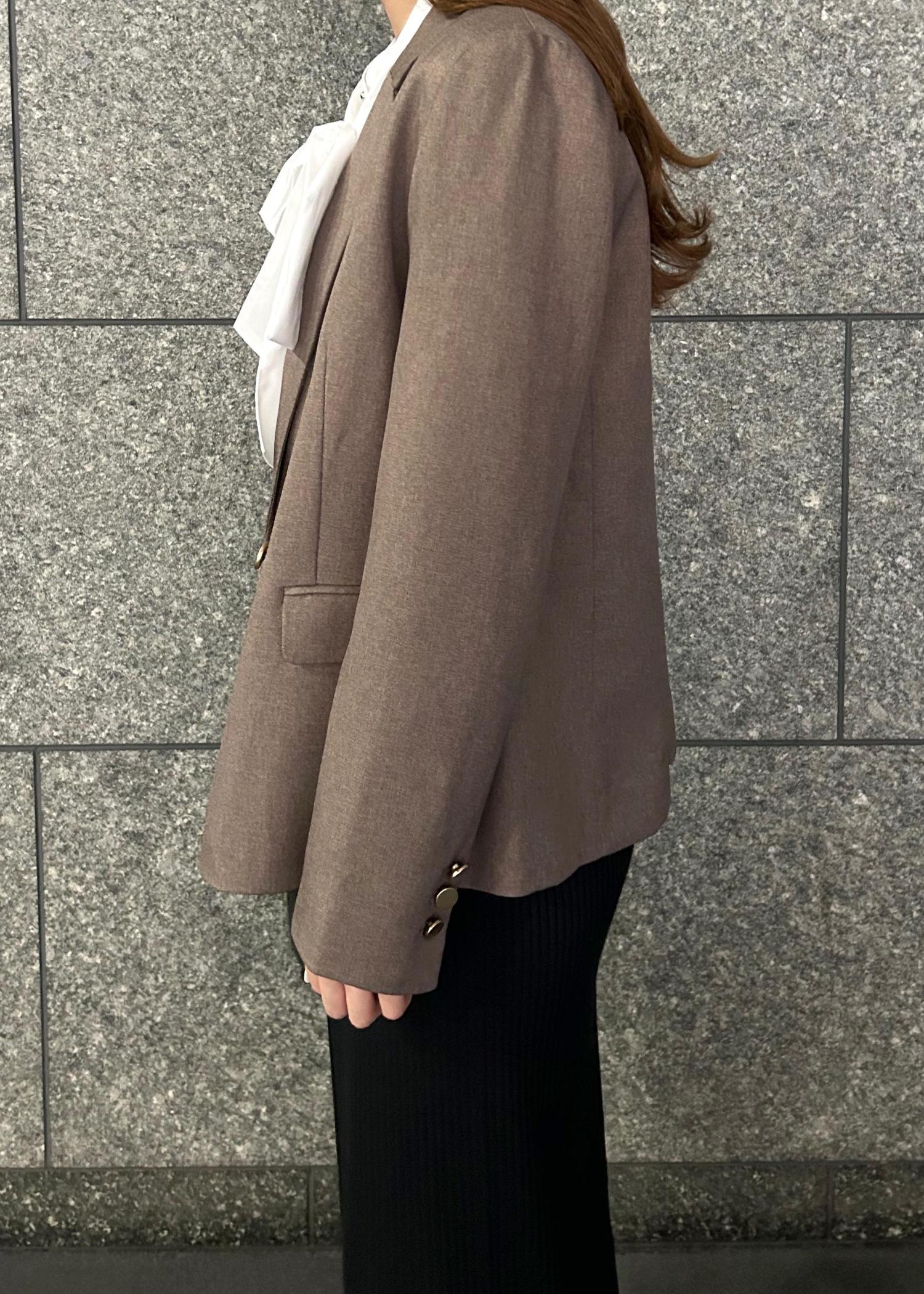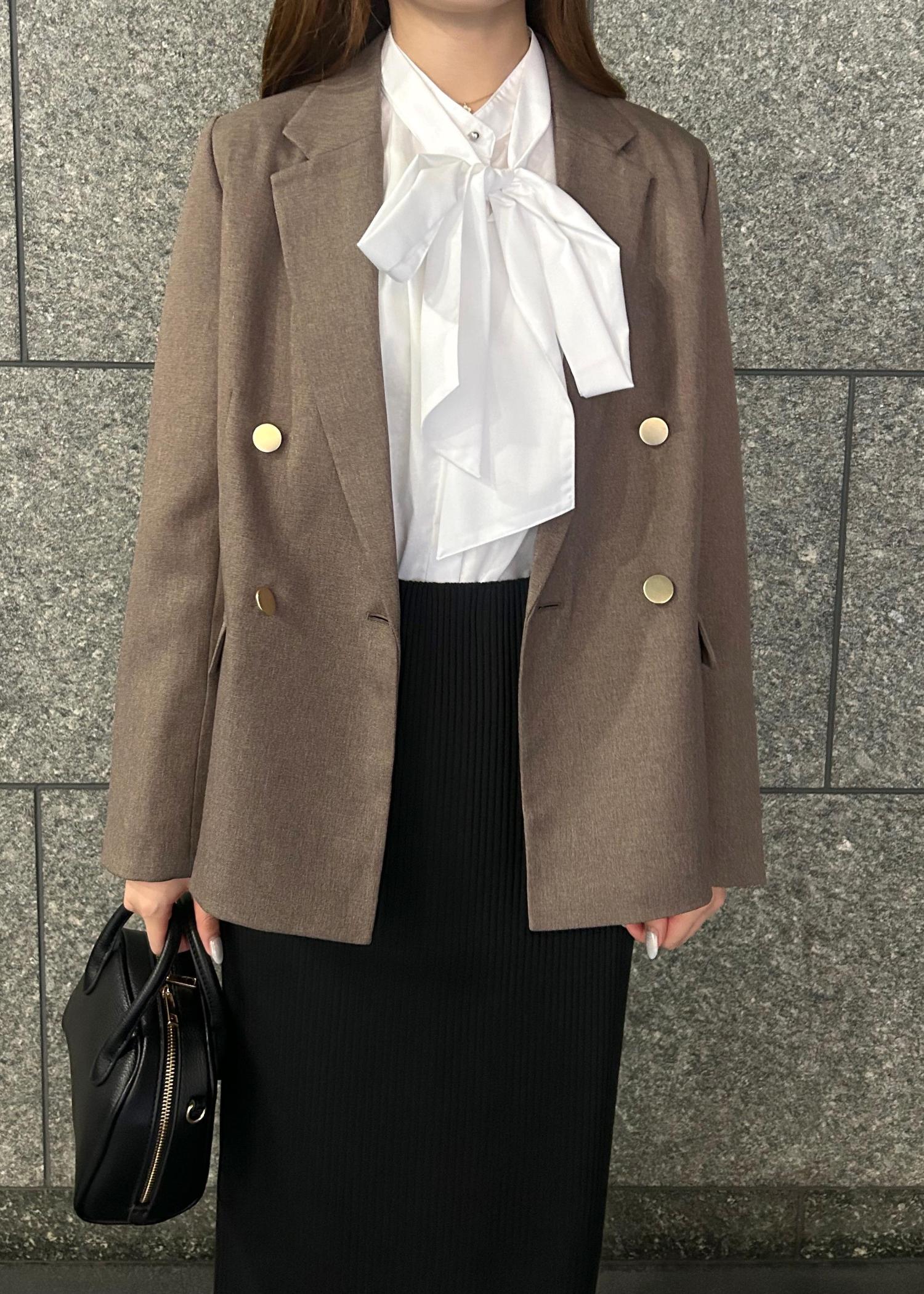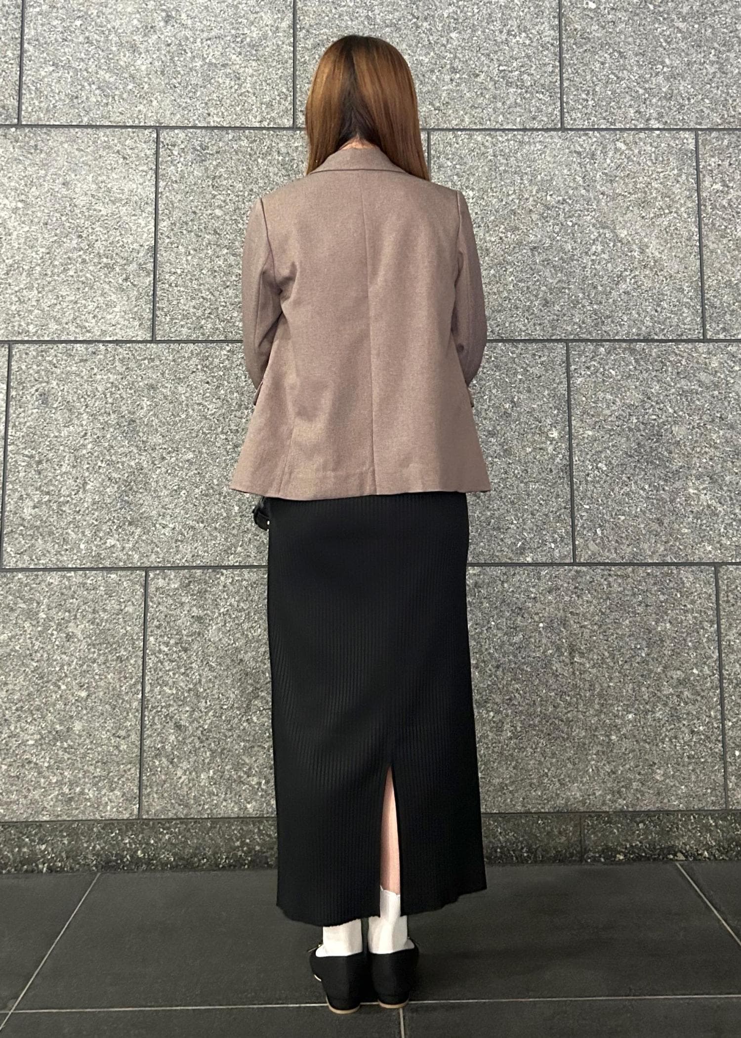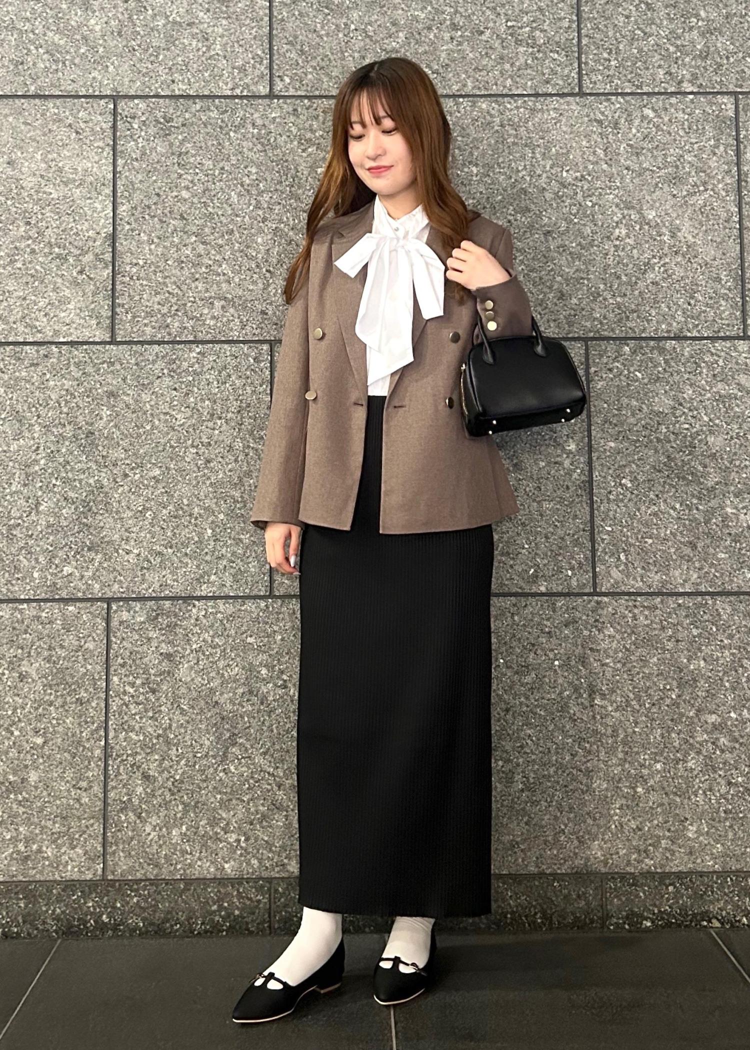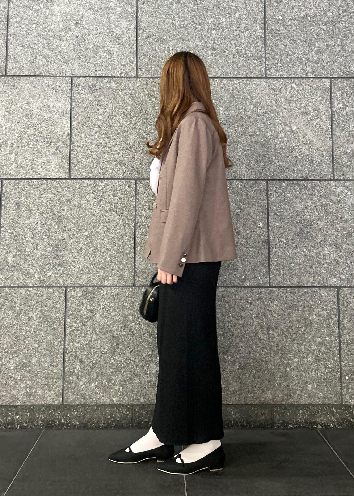 金ボタンが高見えするジャケットに、大人らしいニット素材のIラインスカートを合わせて「大人きれいめコーデ」に仕上げました!