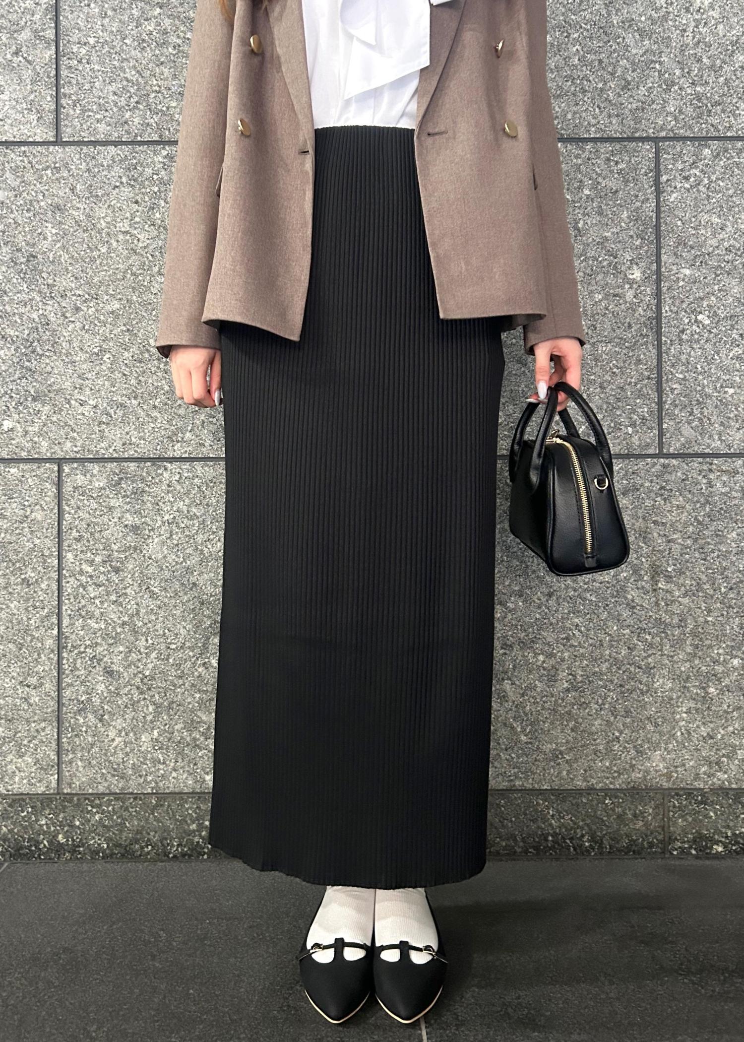 ニット素材の大人らしいスカートなので、お仕事用にもお出掛け用にもお使いいただけます! -