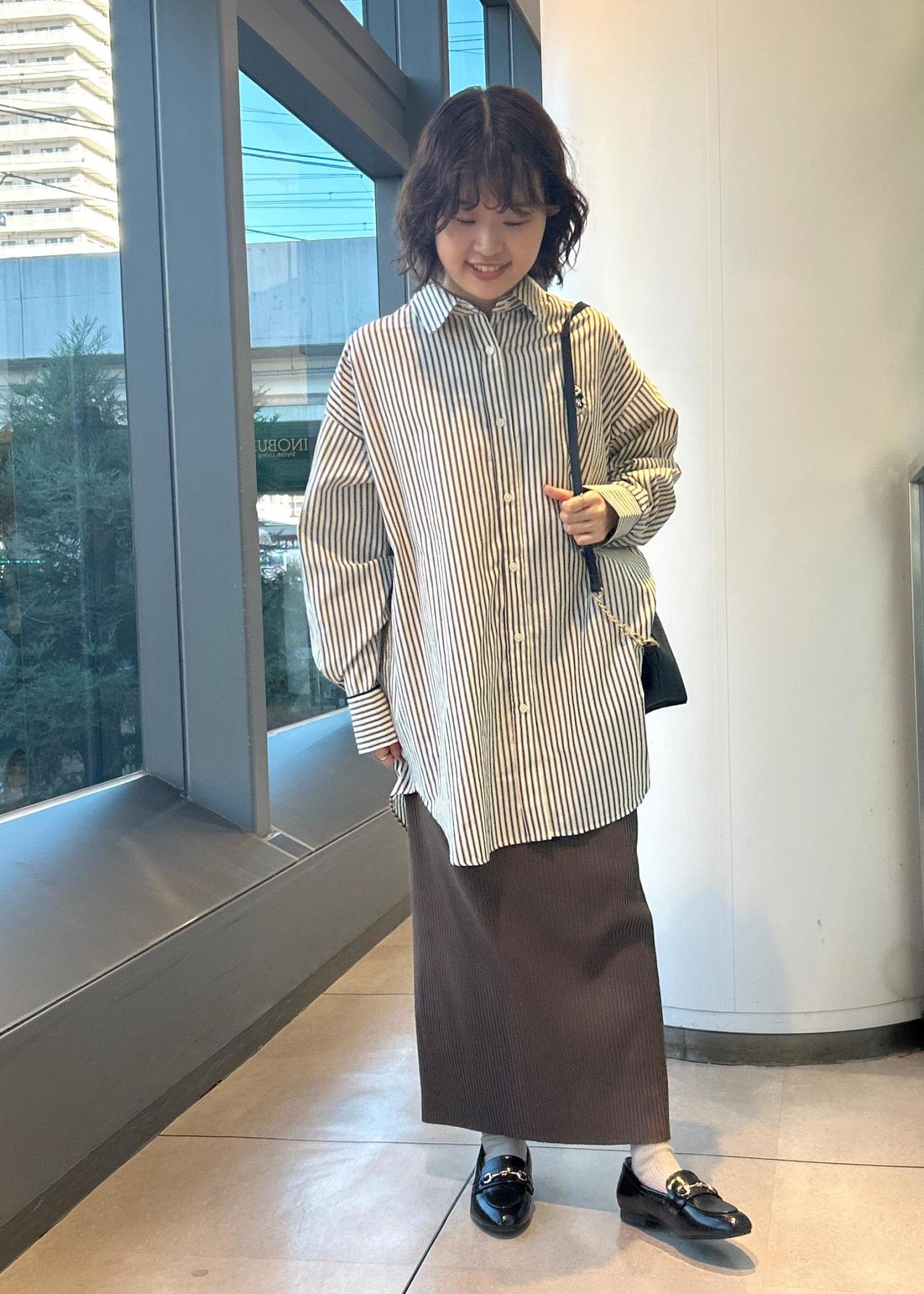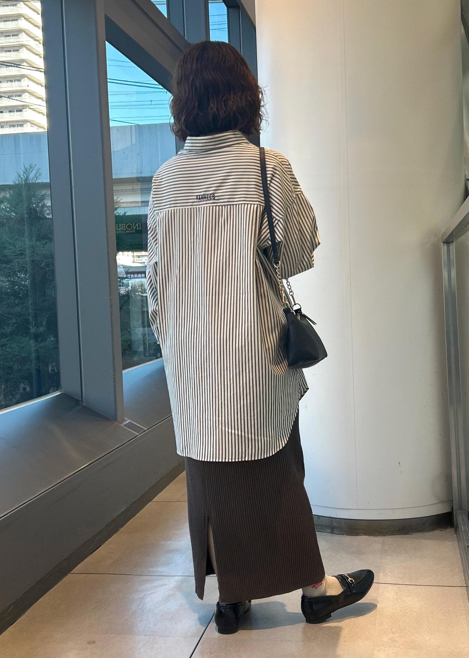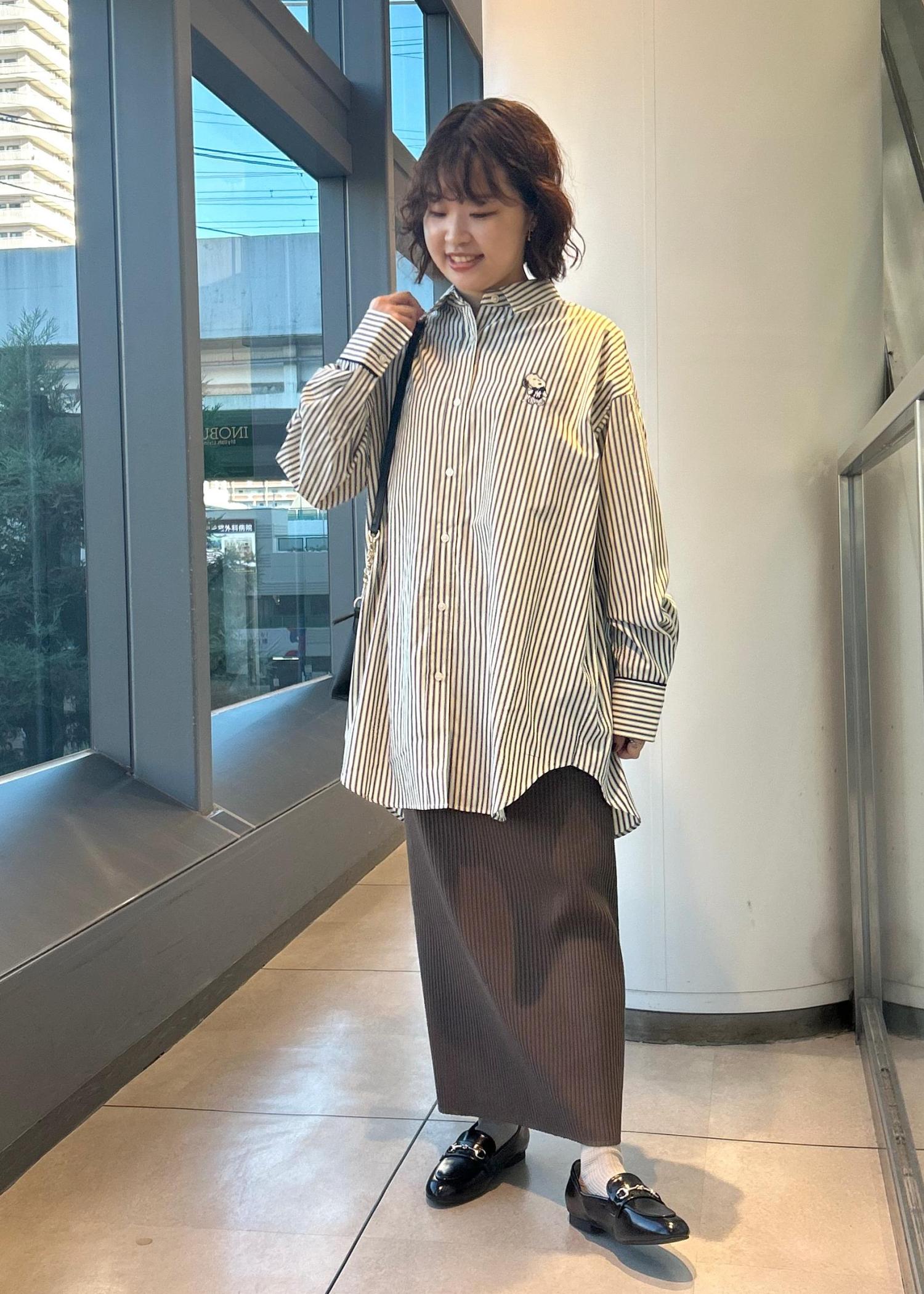 大きめのシャツの為、スタイル良くみせるようタイトスカートを合わせました。