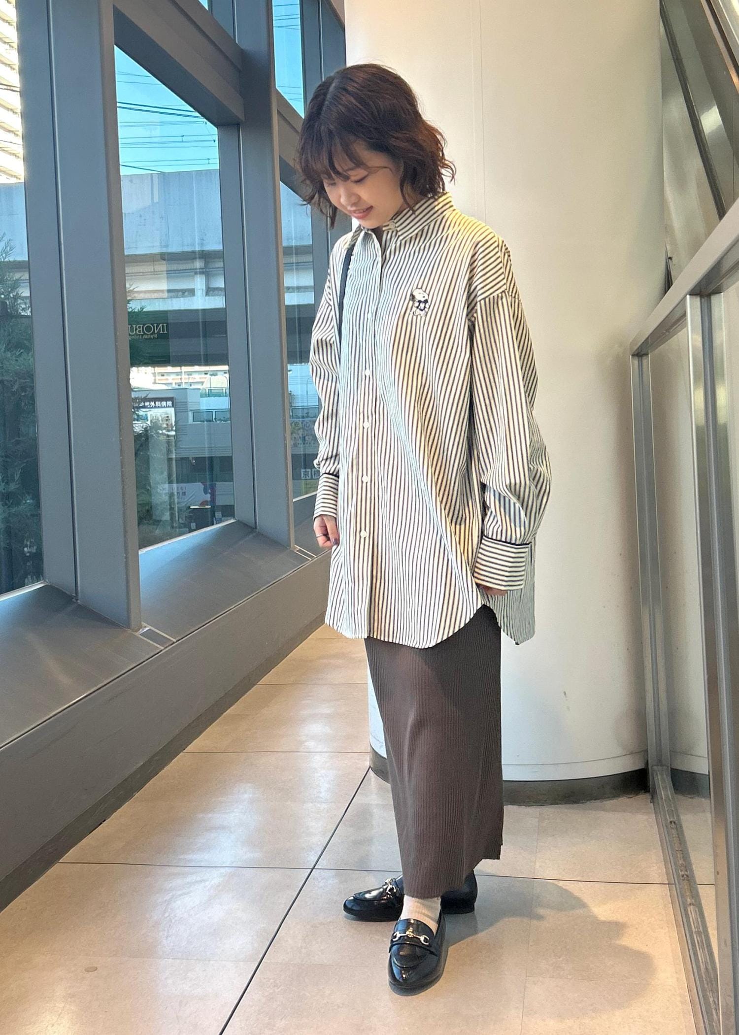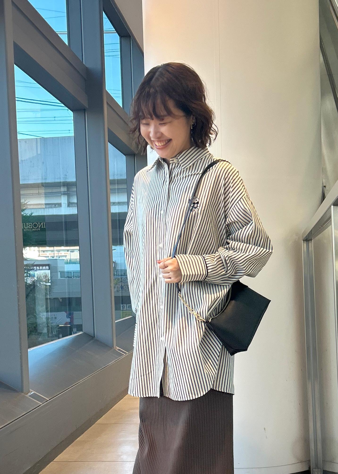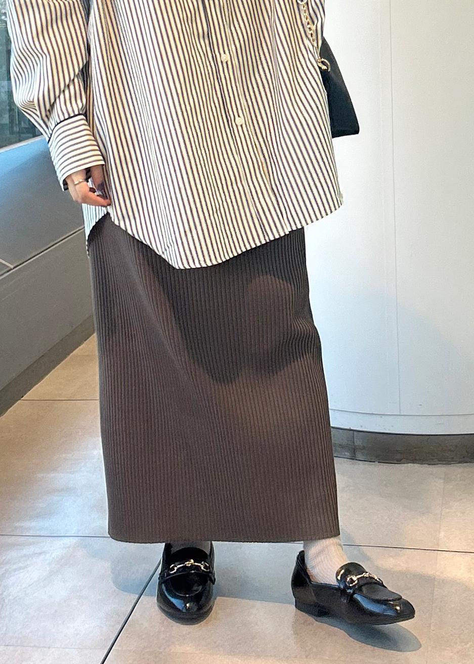 大きめのシャツの為、スタイル良くみせるようタイトスカートを合わせました。