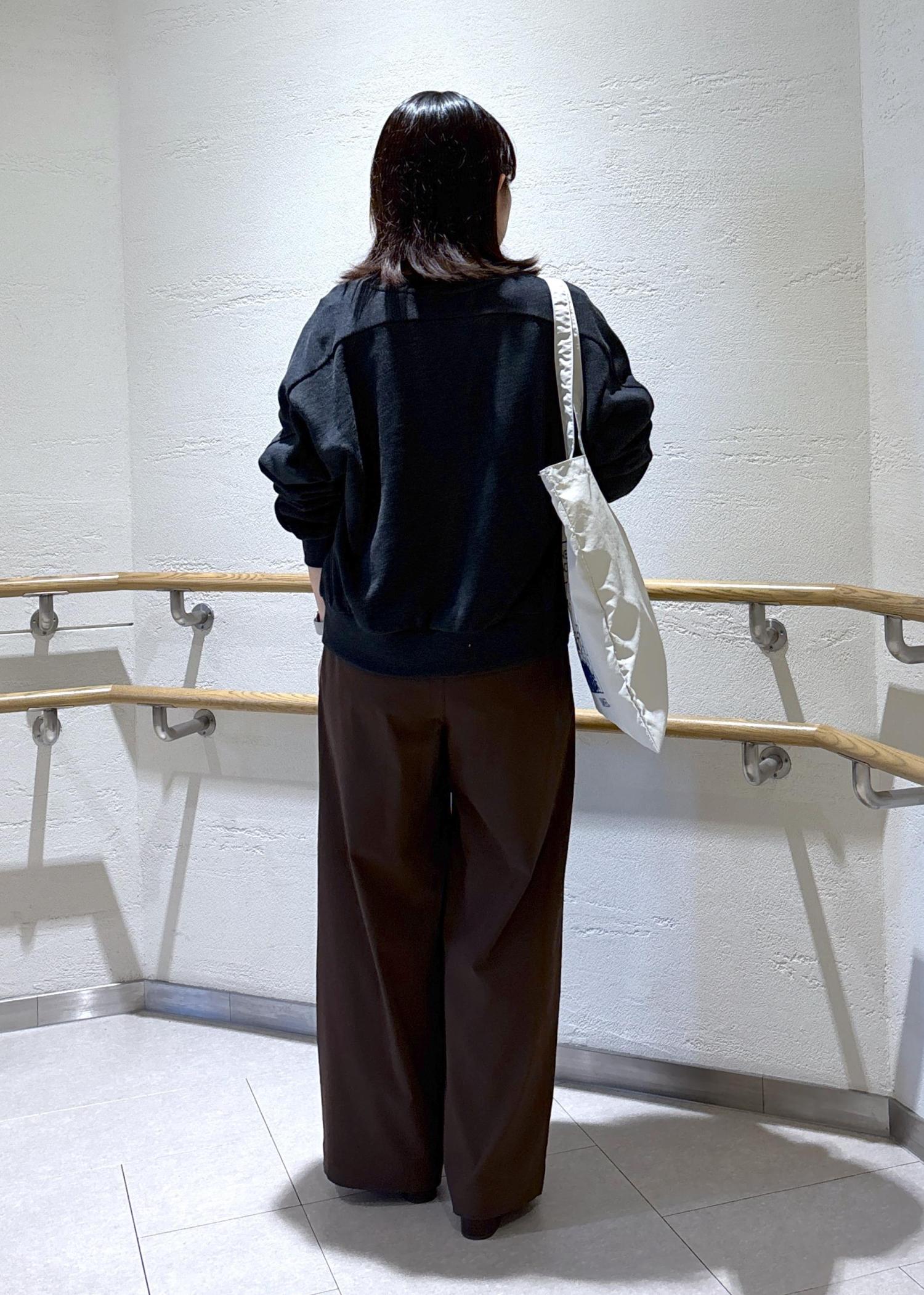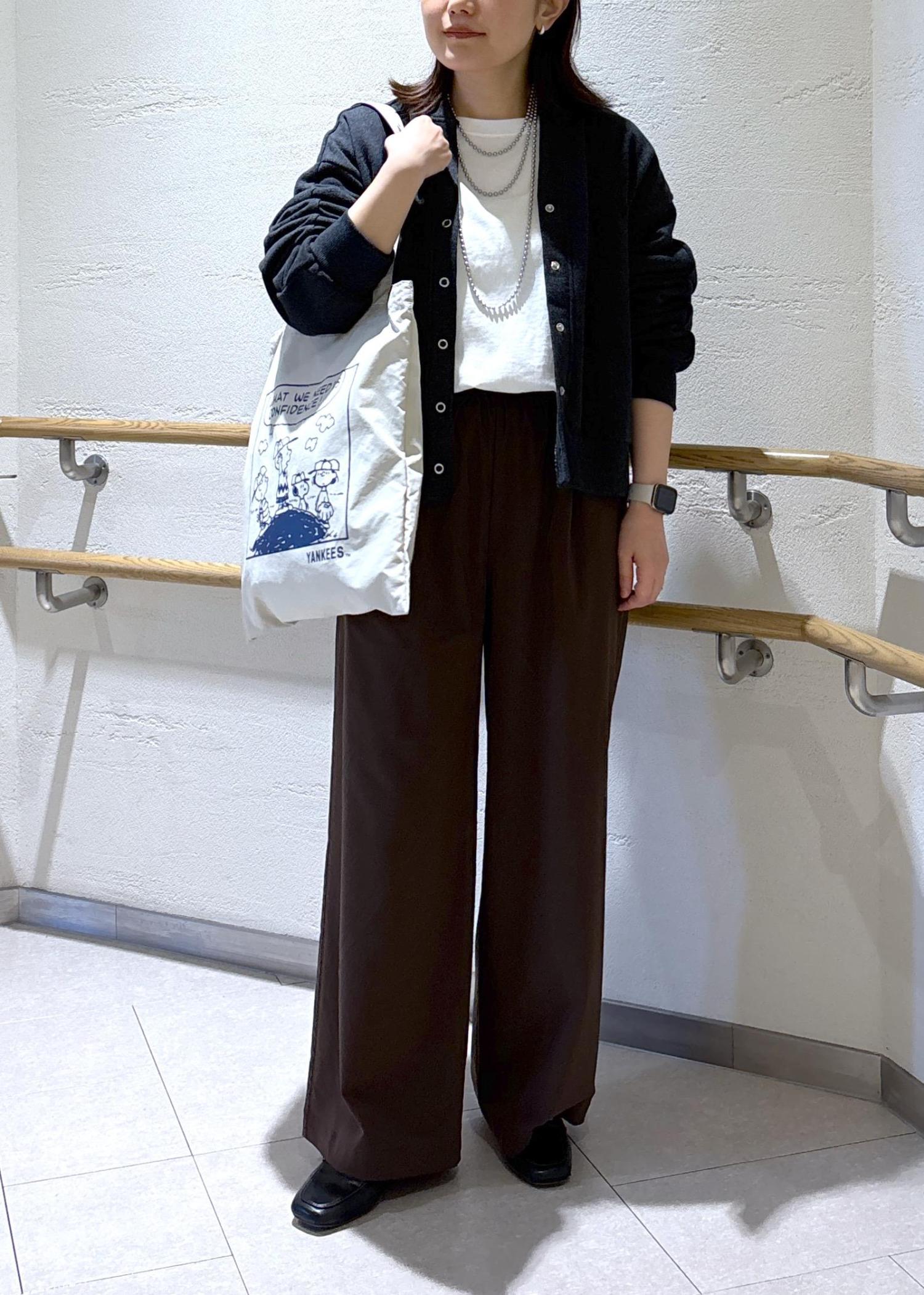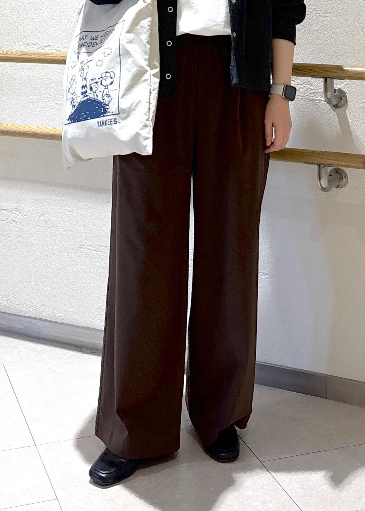 トレンドカラーのブラウンのパンツと合わせて、落ち着いた雰囲気にまとめました。