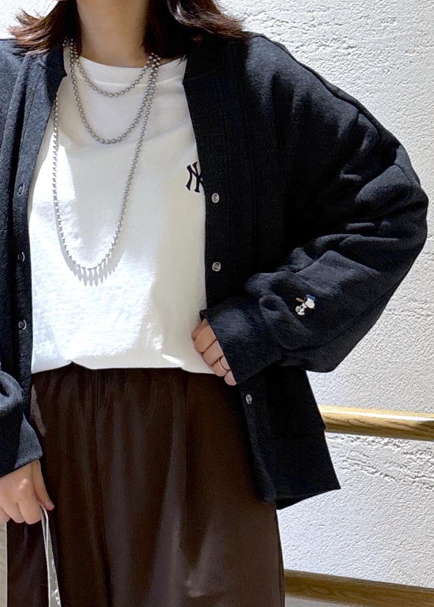 ライトグレーなのでコーディネートに馴染みやすく、プリントが目を惹きます!