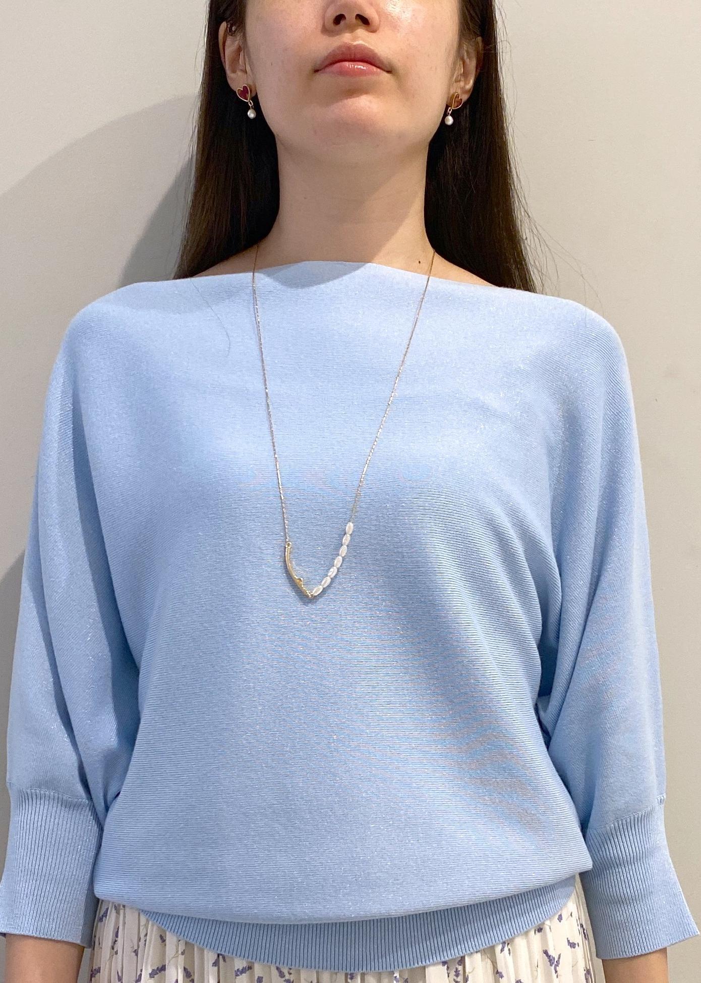 ラメ入りなのでそのまま着てもかわいいですが、ネックレスを合わせると大人なオシャレコーデに。