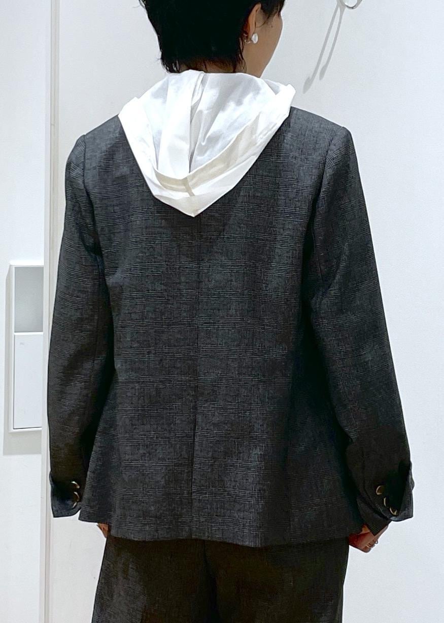 ゆとりのあるサイズ感なので、裏毛素材スエットやハイゲージニットに羽織った時にも肩周りが圧迫感なく着用できるので、これからの季節に最適なジャケットです◎ -