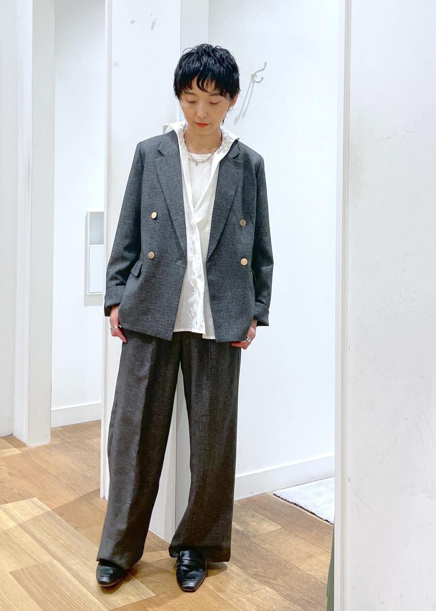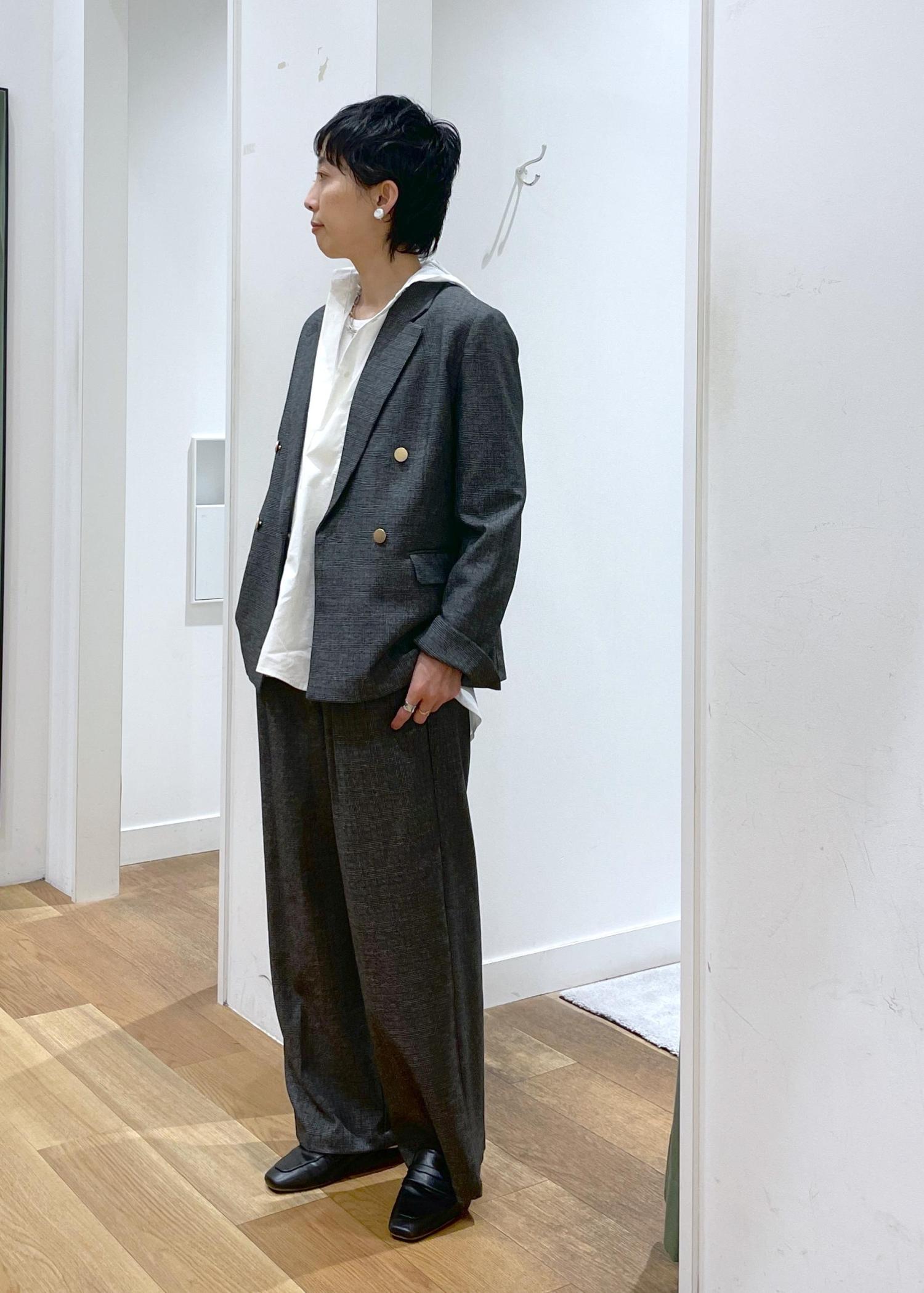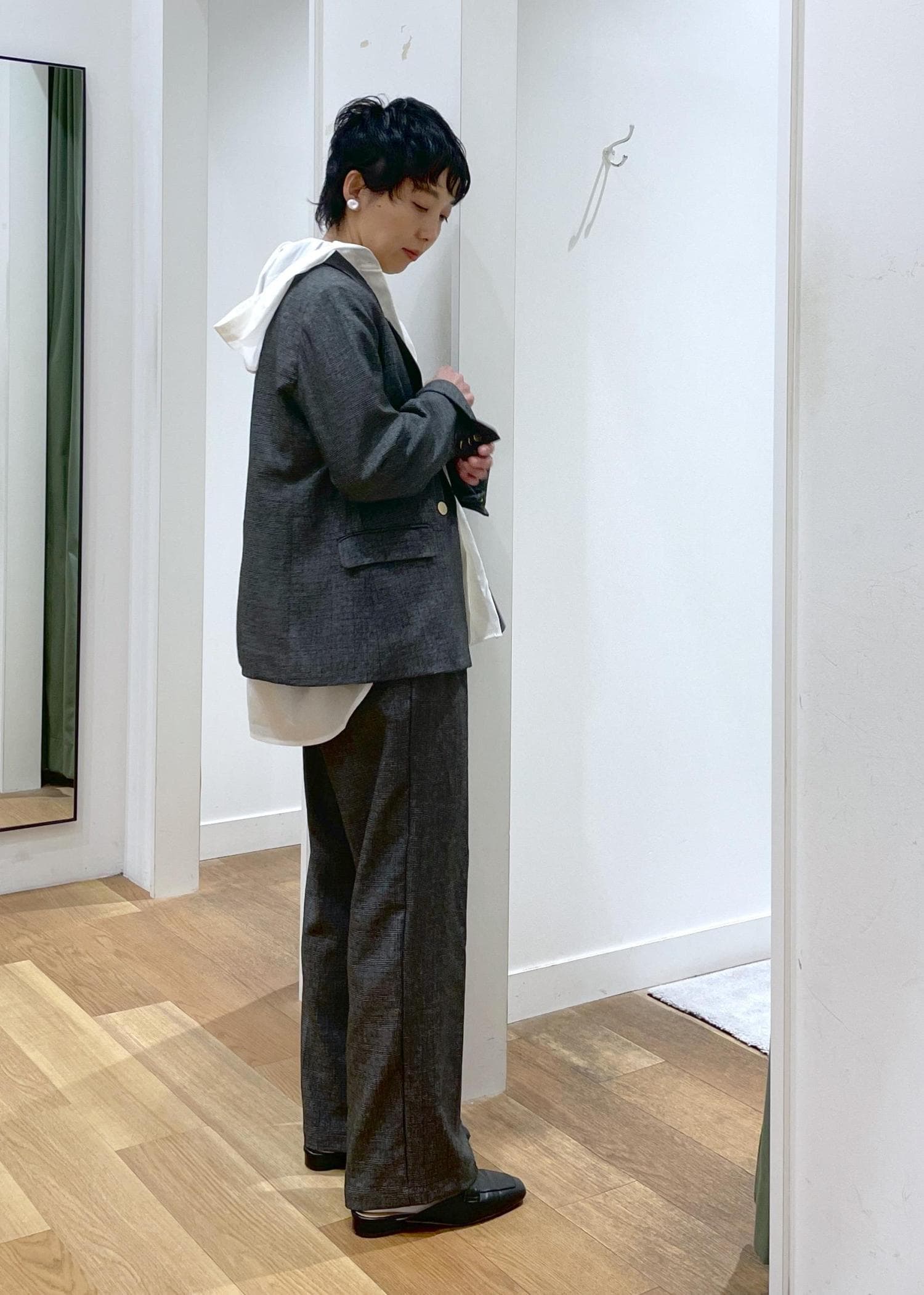 コーディネートに。ジャケットはオーバーサイズで着たいので、Lサイズを着用しています。