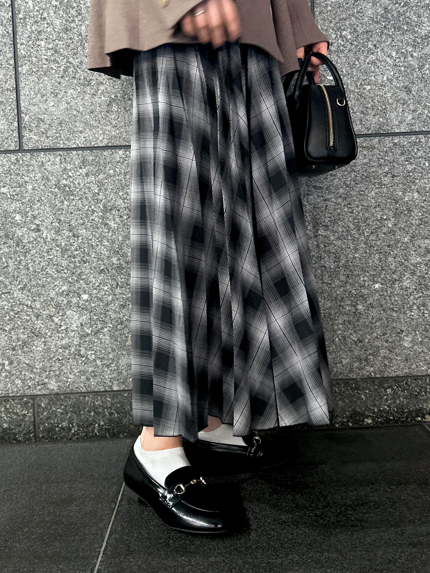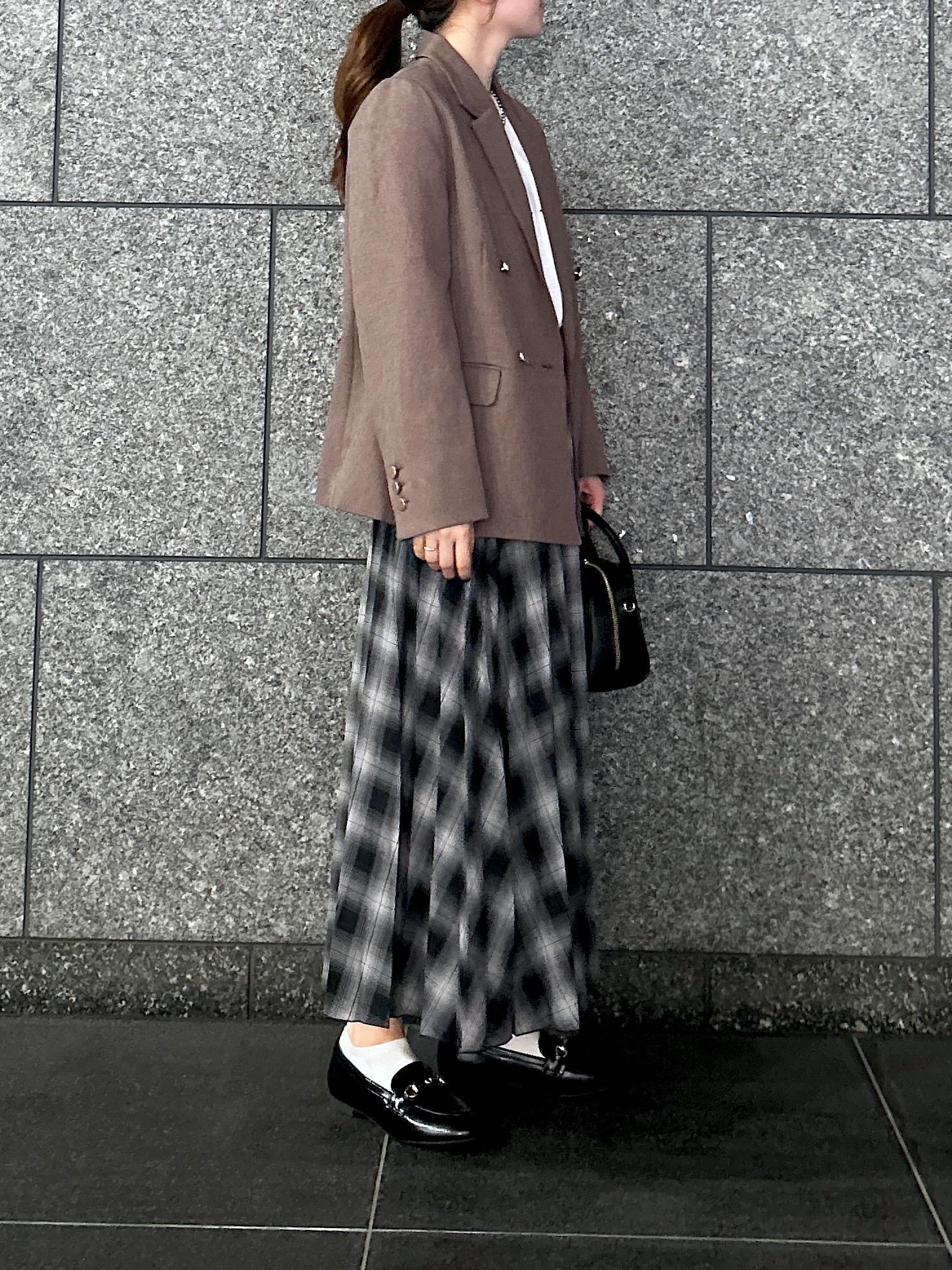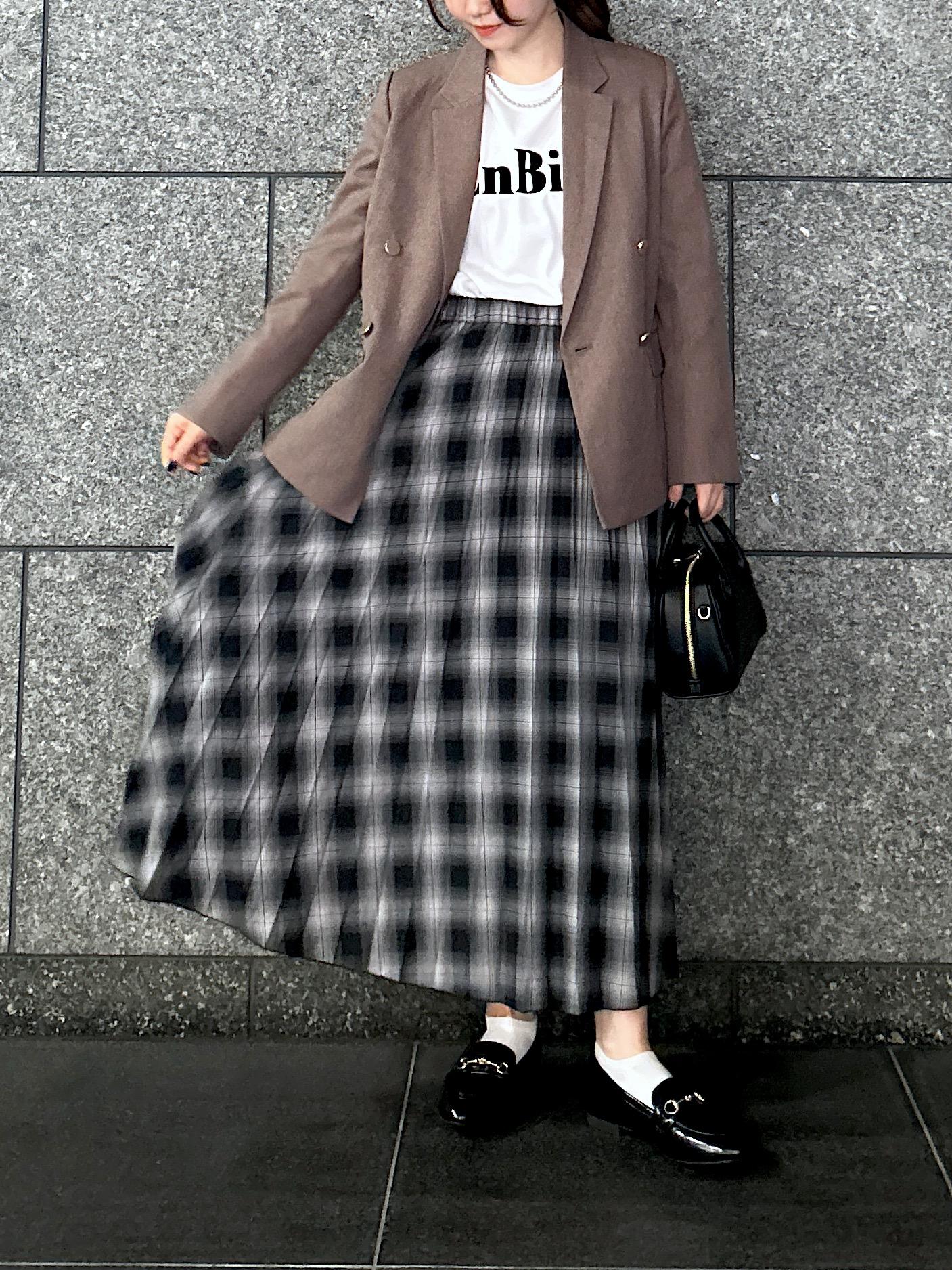 チェックスカートで秋らしさと甘さもプラスしてみました。