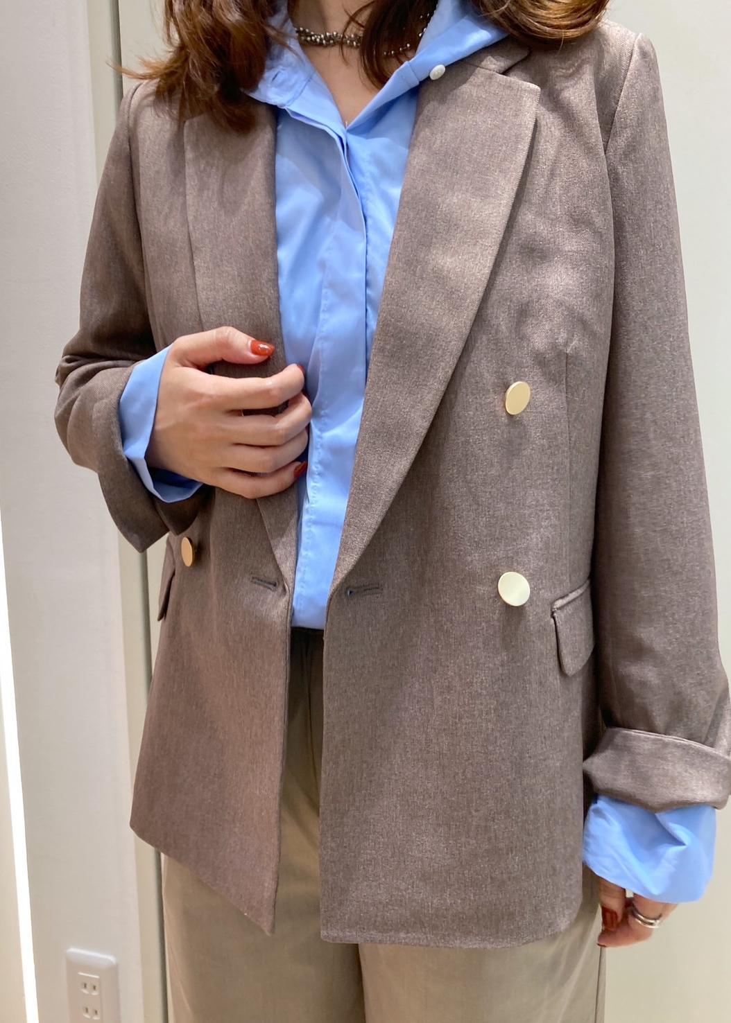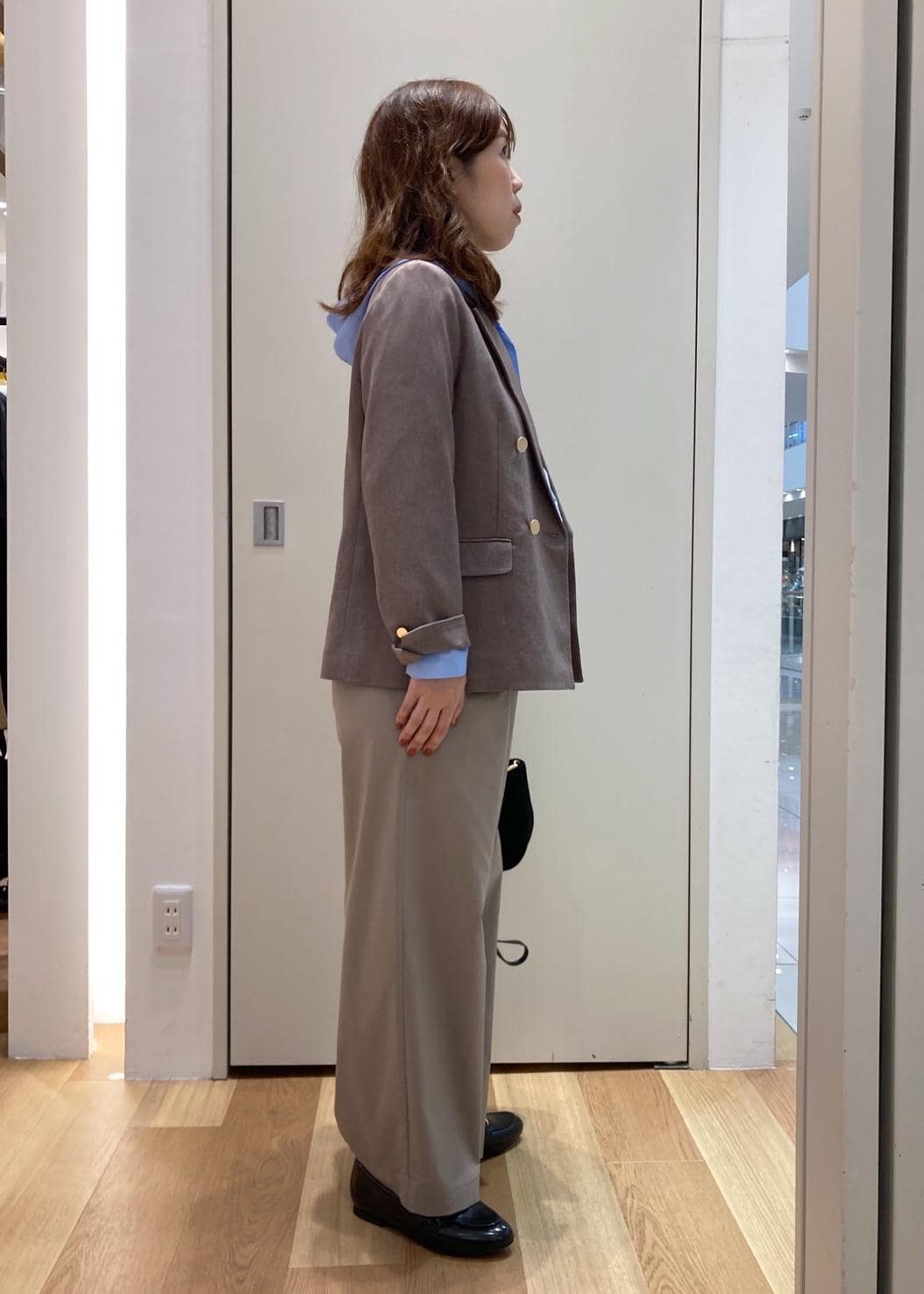 低身長さん向けのジャケットに、オフでも使いやすいイージーパンツを組み合わせました。