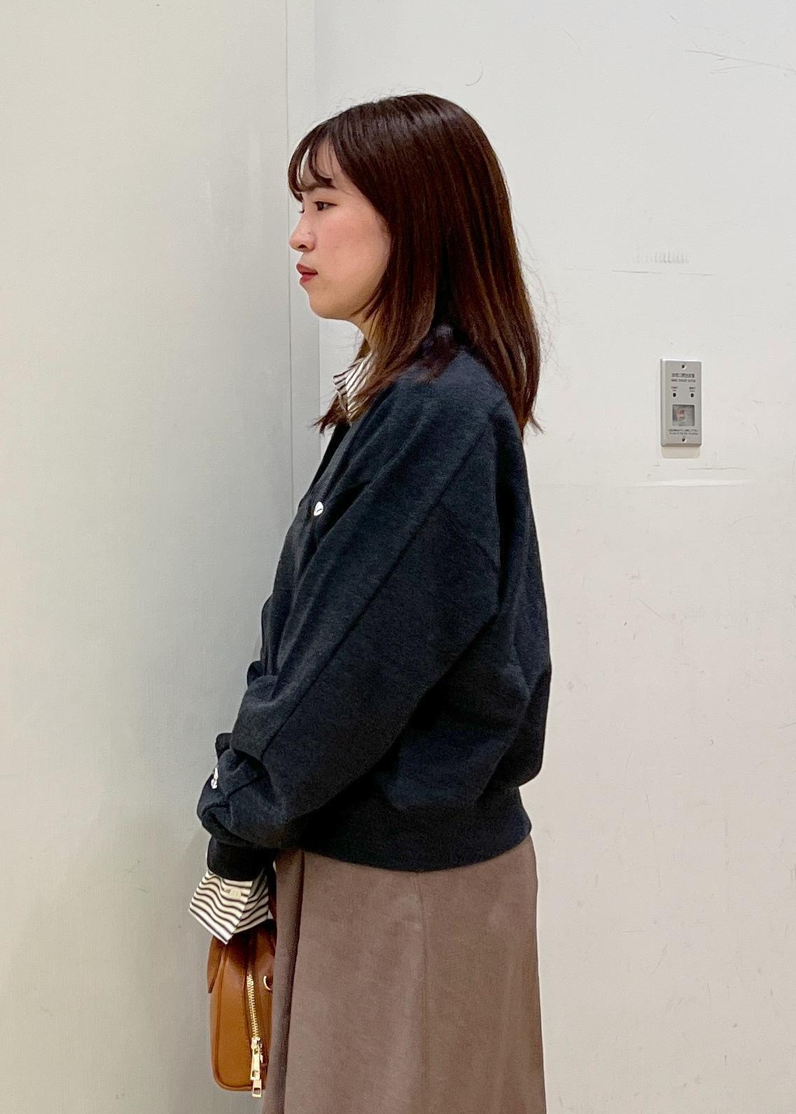 袖口からシャツが見えるのがコーディネートのワンポイントです◎