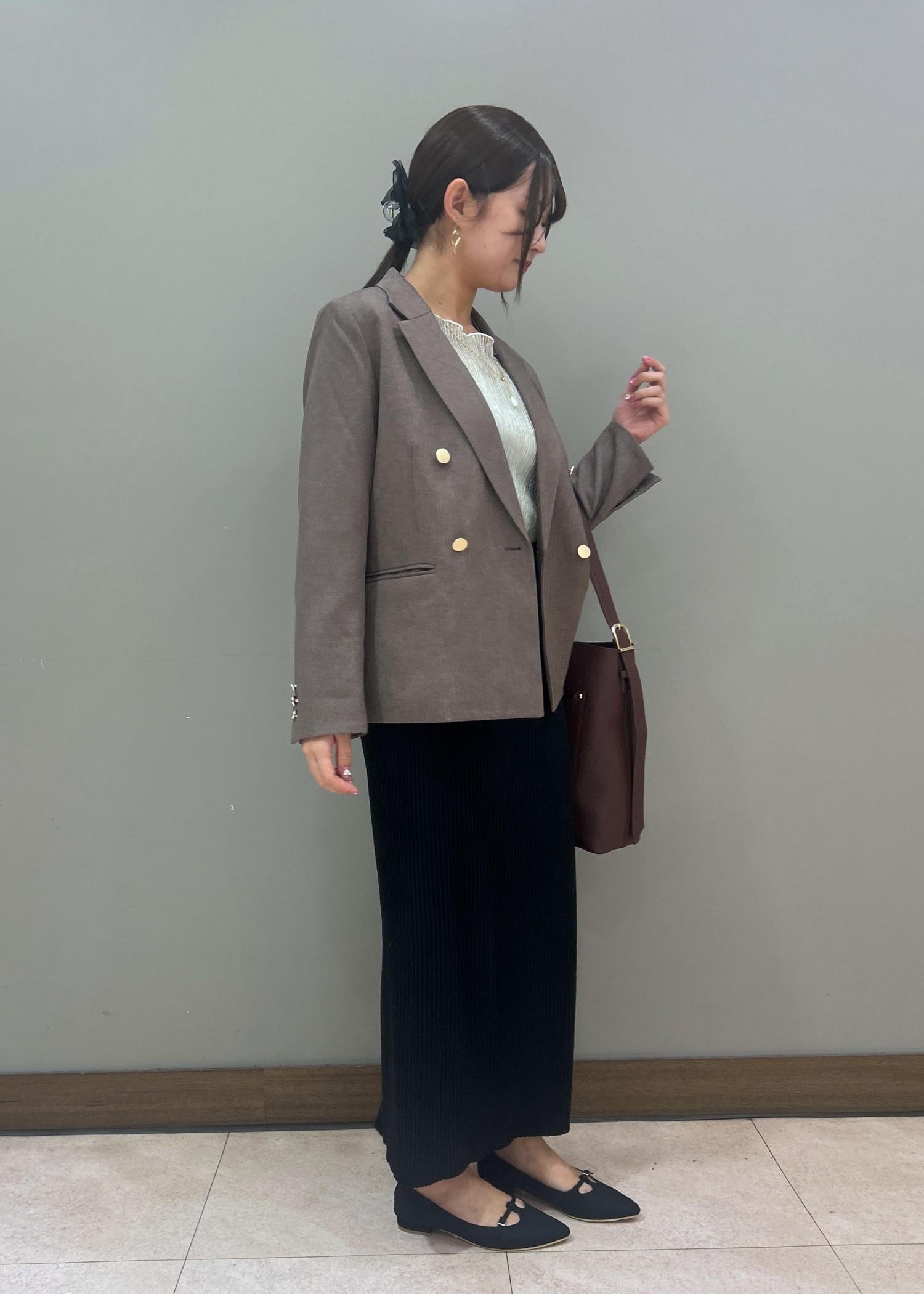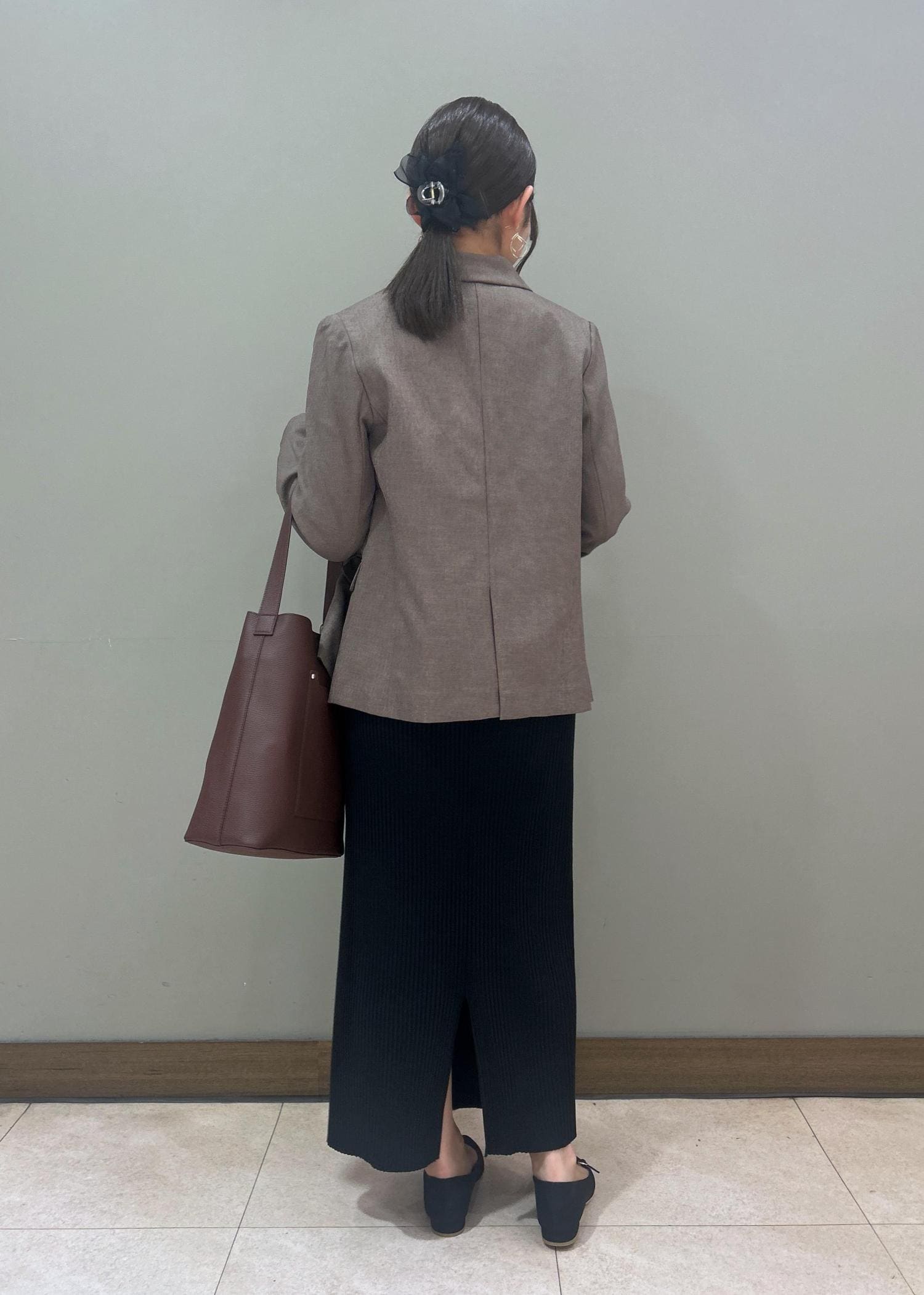 ジャケットは背中の裏地がないデザインなので秋に着やすいデザインです!