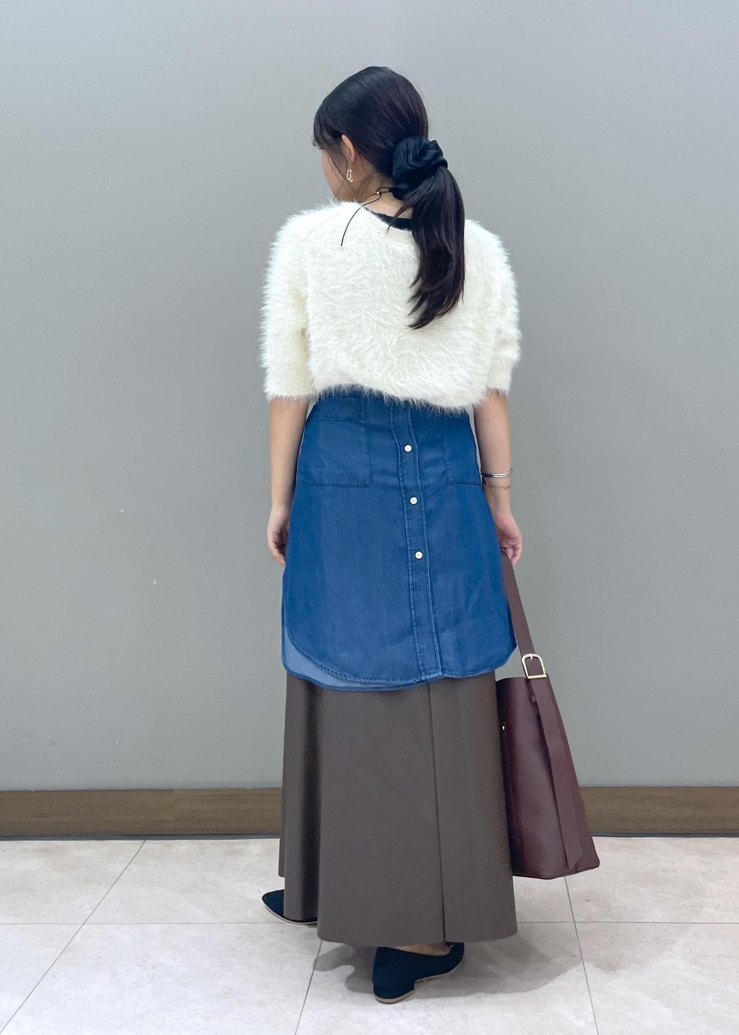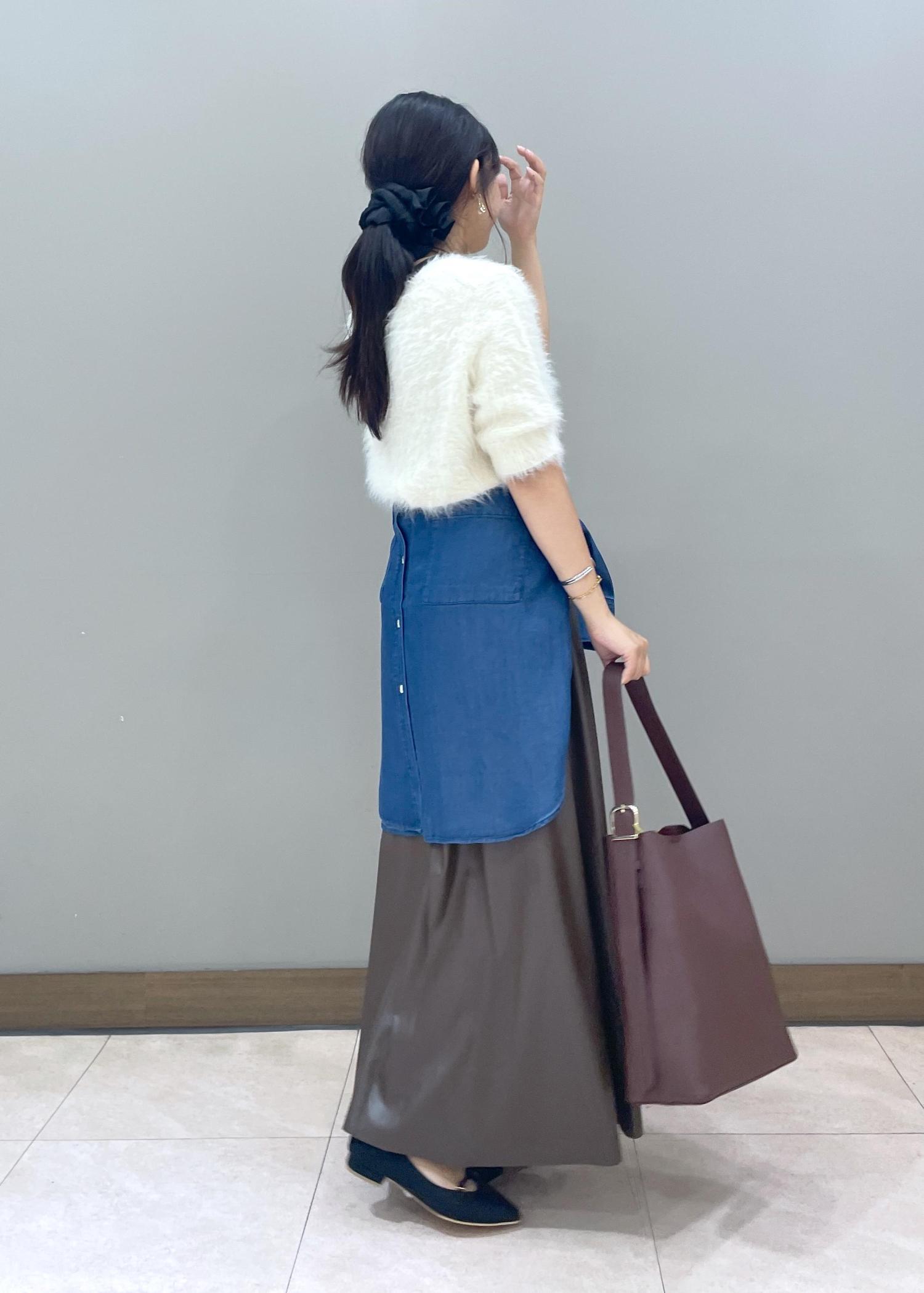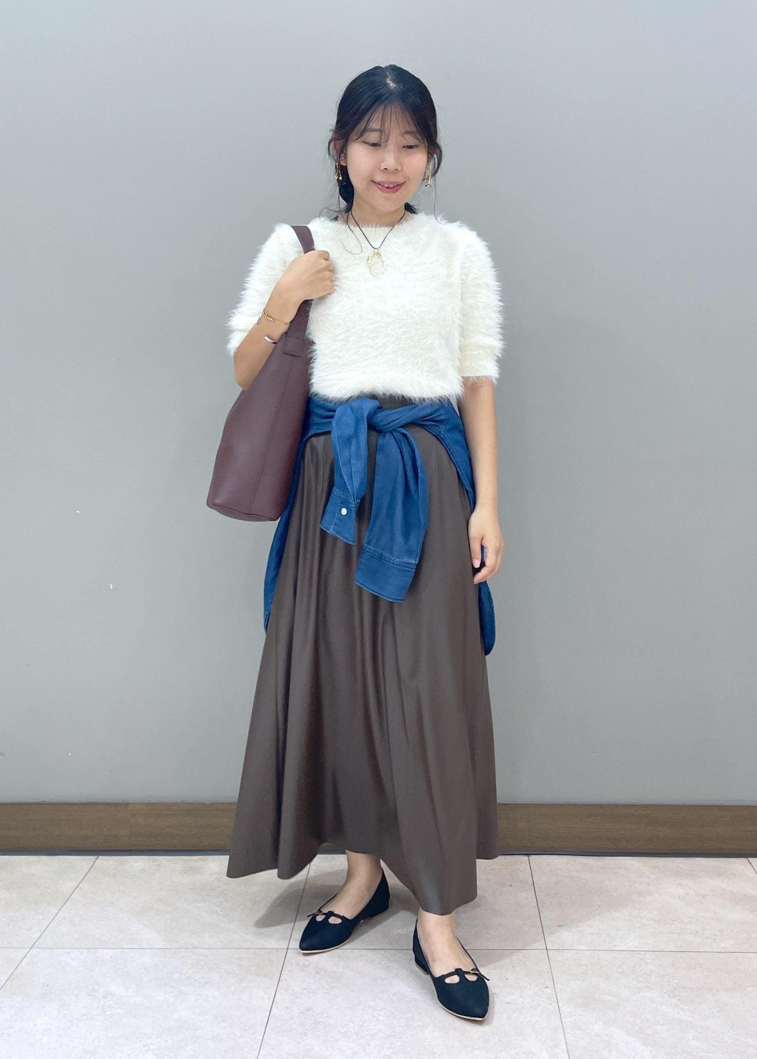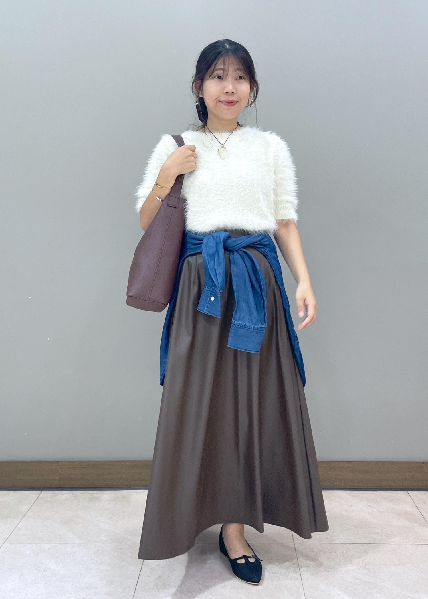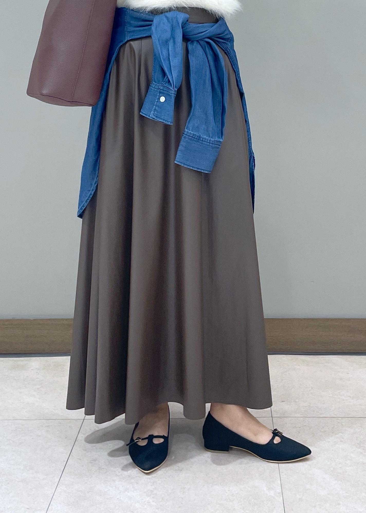ROPÉ PICNICシンセティックレザーフレアロングスカートダークブラウン / M¥4,994レビューウエストは若干ゆるさがでますがSサイズだとトップスをインした時のスカートの皺が気になったのでMサイズを着用しました。ウエストインしてお召しになる方はサイズを上げるのもお勧めです。ハリがある素材でラインが綺麗に見えます。