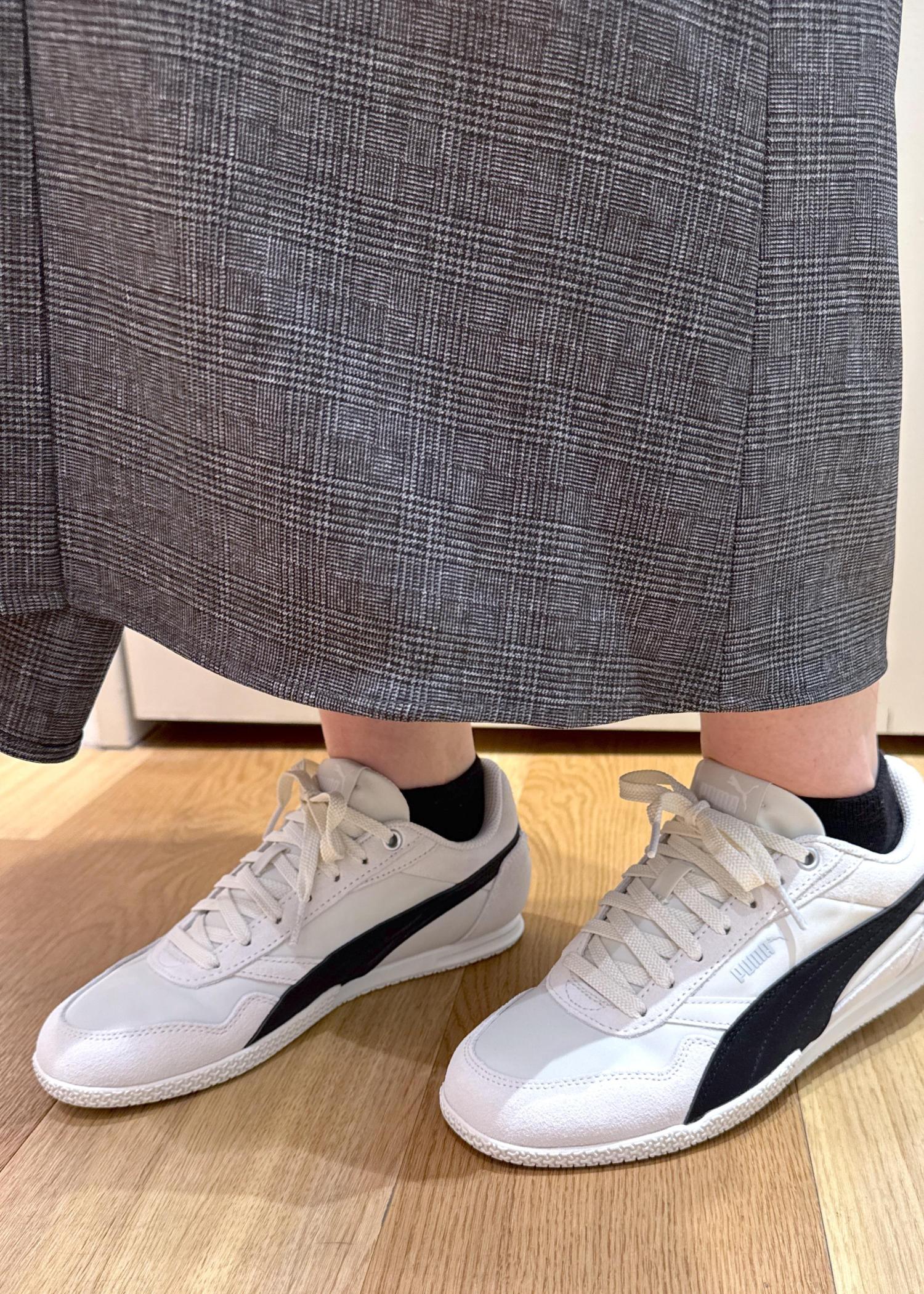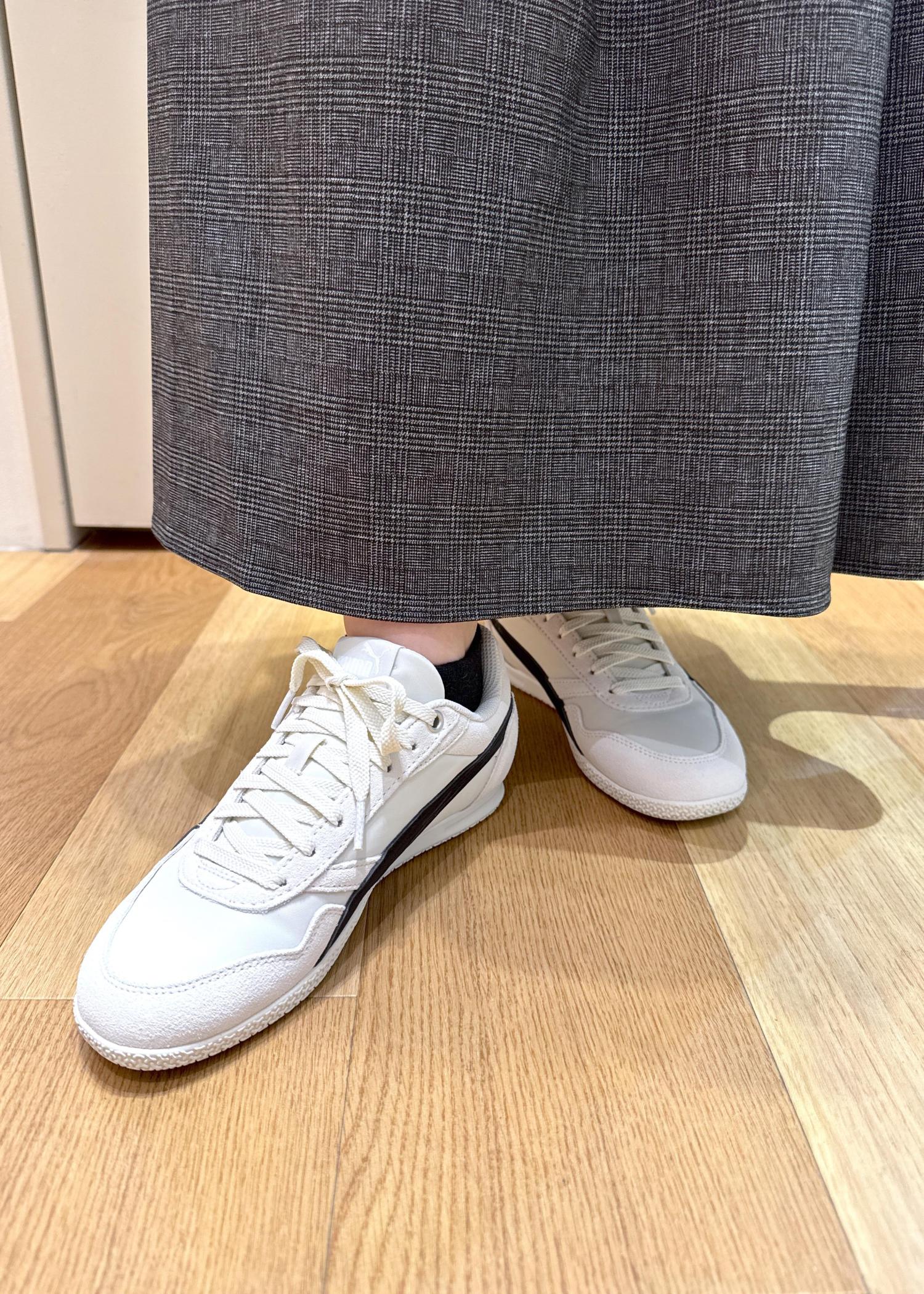 ローカットの中でも高さがさらに低いスニーカーなので、色んなボトムスとバランスよく合わせられます。 -