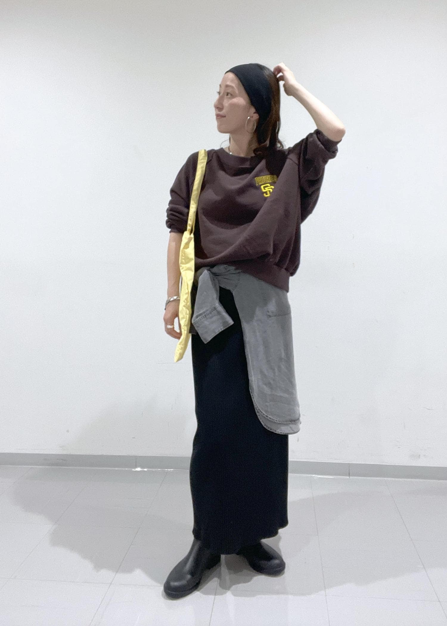スウェットはオフショルにしても着ることができるので、抜け感があり、大人カジュアルな印象に☺︎