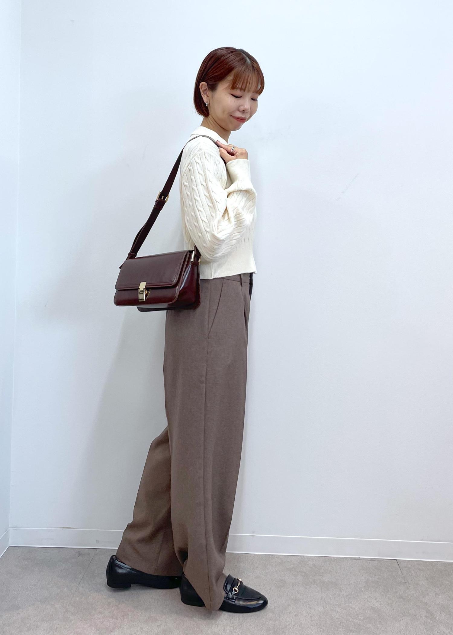 レザー調の小物を合わせてメリハリを出したのがポイントです◎