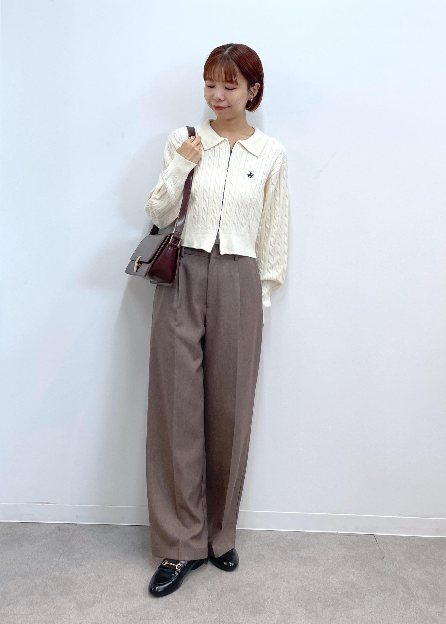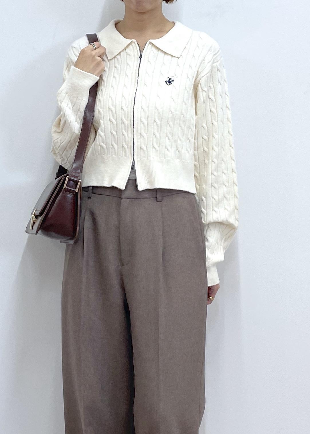 クロップド丈でバランス良くキマるニットカーデを合わせた