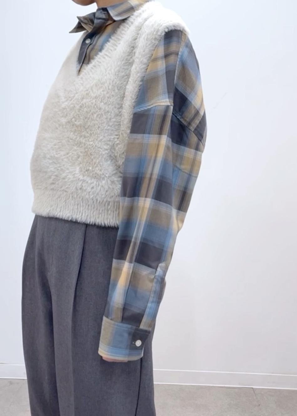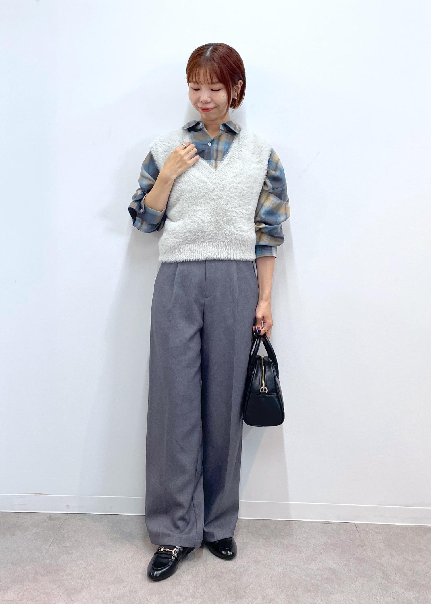 ニットベストを合わせてチェックシャツを腰巻きするのも◎