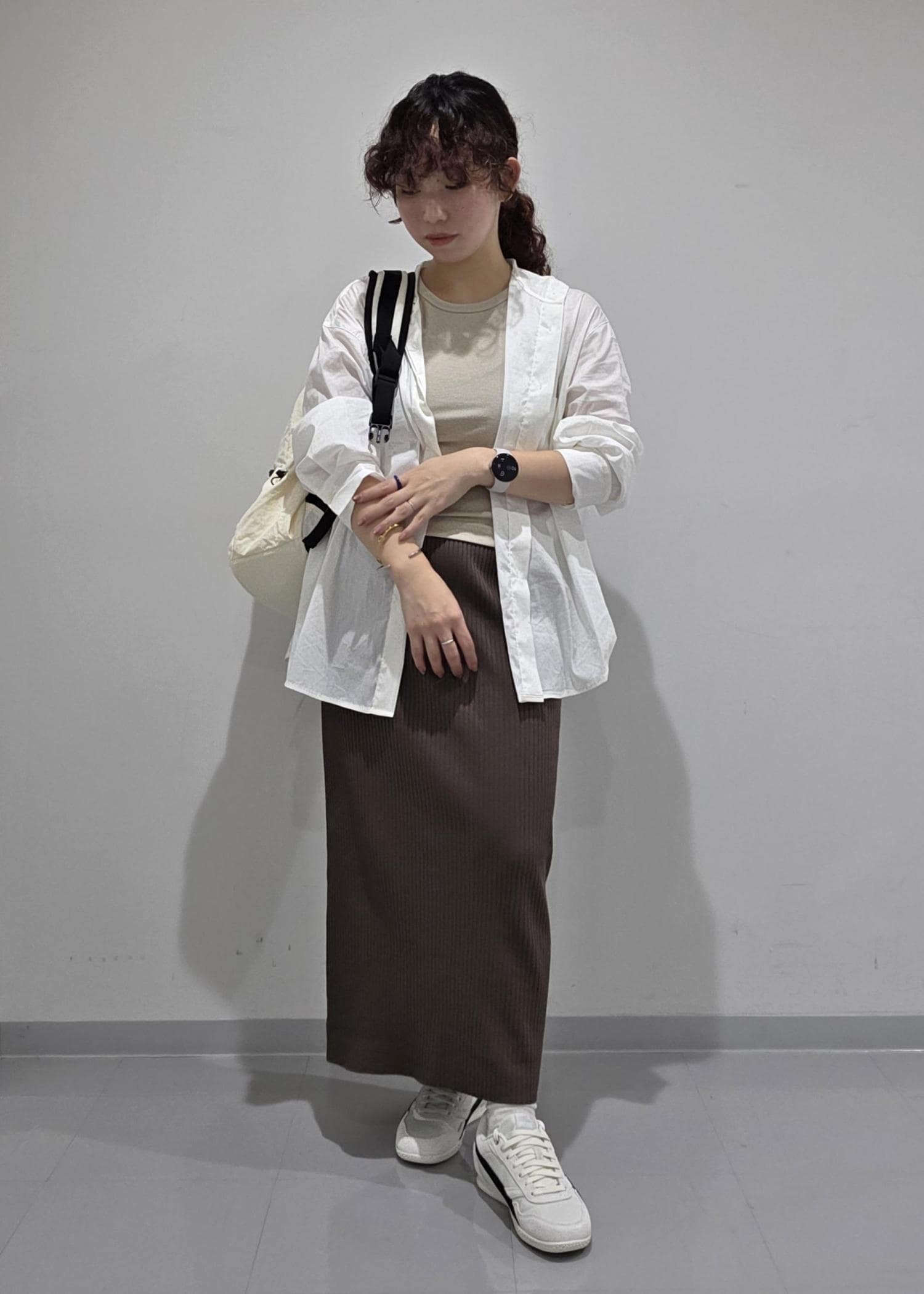 きれいめなスタイルにスニーカーを合わせて少しラフに◎