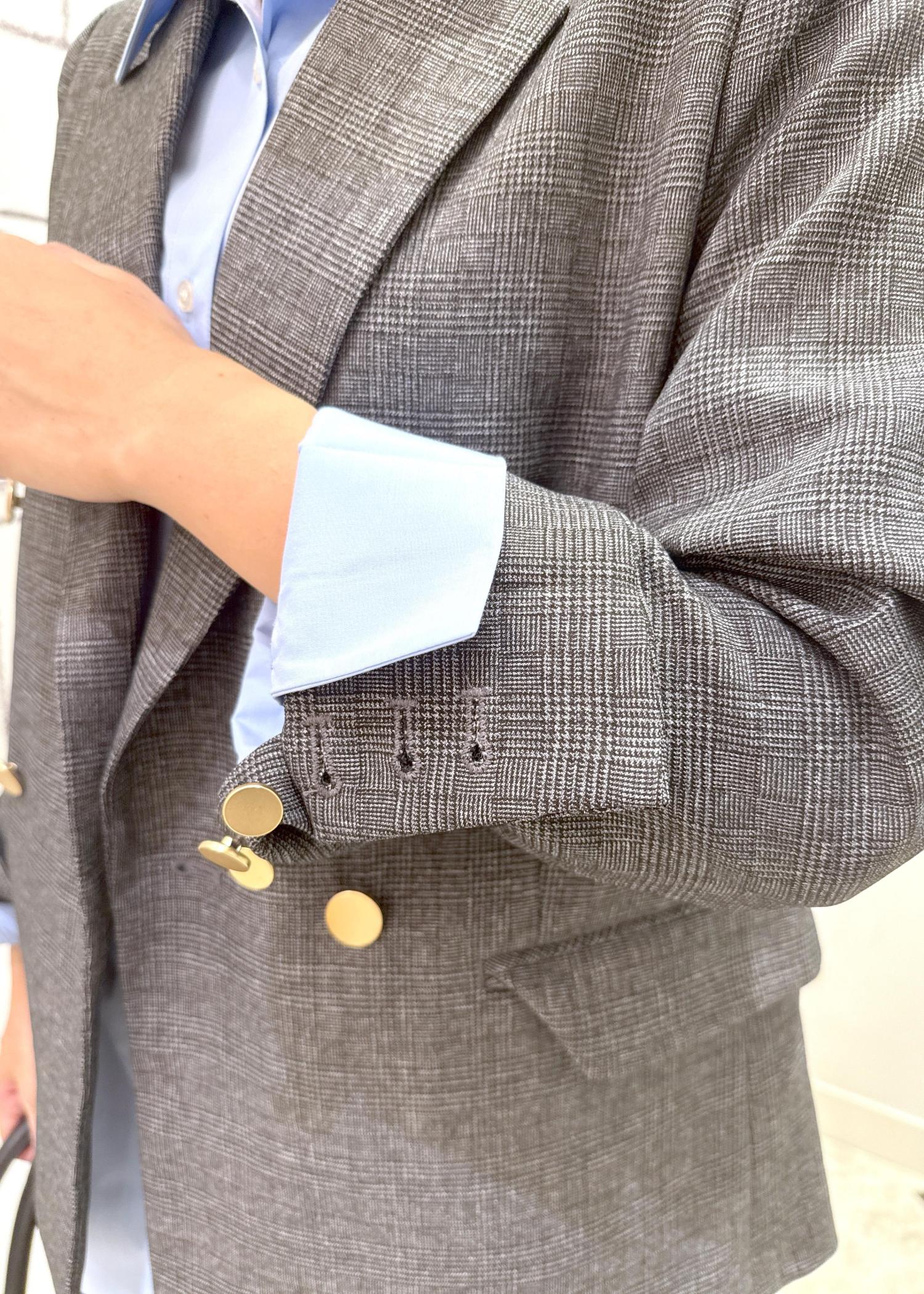 ジャケット、パンツ、靴、バッグ、はモノトーンにしてシャツを青にすることでシンプル過ぎないコーデにスカーフなのを首につけてもオシャレ感アップします!