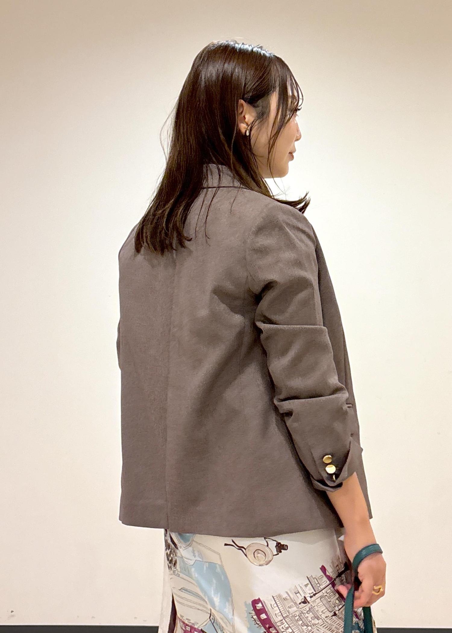 背抜きジャケットで外でも快適に着ていただけます。Mだとジャストサイズで綺麗目に着れます。
