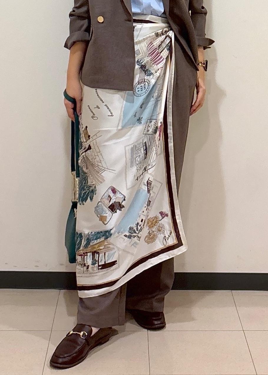 骨格ウェーブで下半身が気になりがちなのでスカーフを巻いてカバーしてみました。
