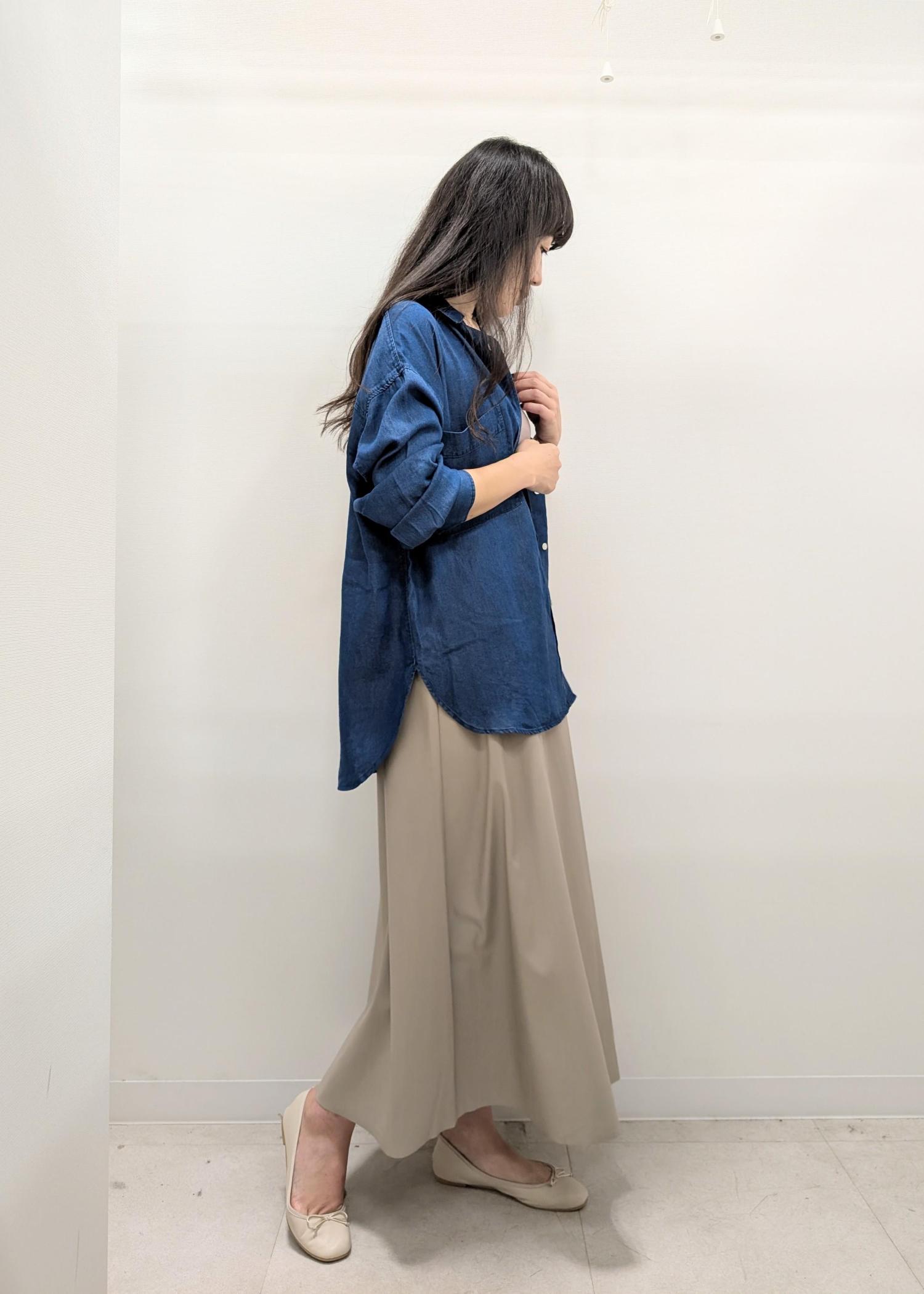 シルエットはビッグサイズですが、柔らかい生地のおかげで膨張することもなく女性らしい印象で着られます。 -