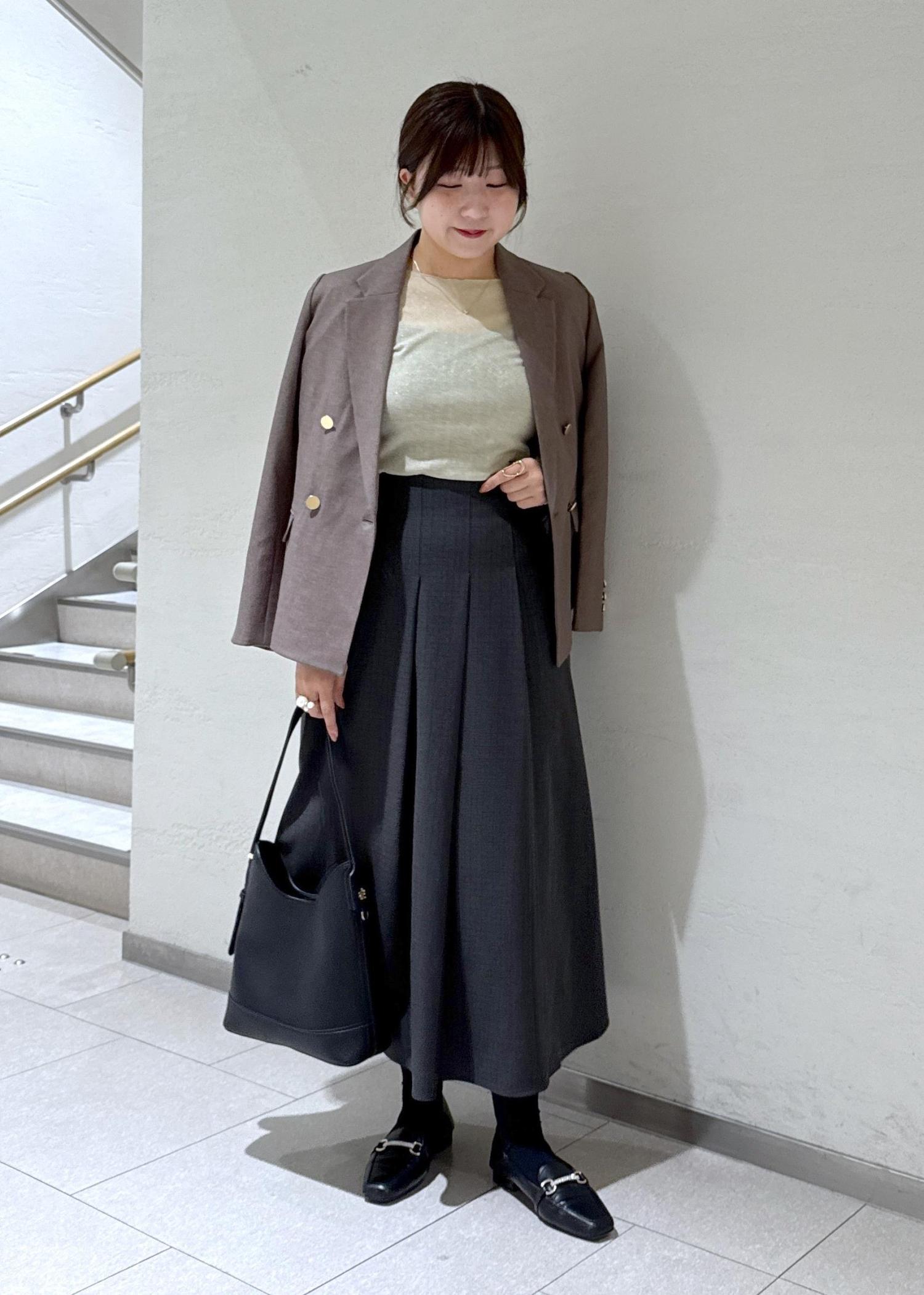 腰周りの張っている私でもスッキリ見えが叶い、着丈もしっかりあるのでローファーやブーツ合わせも楽しめそうです✨️