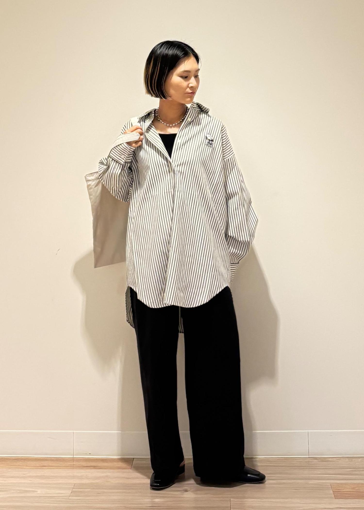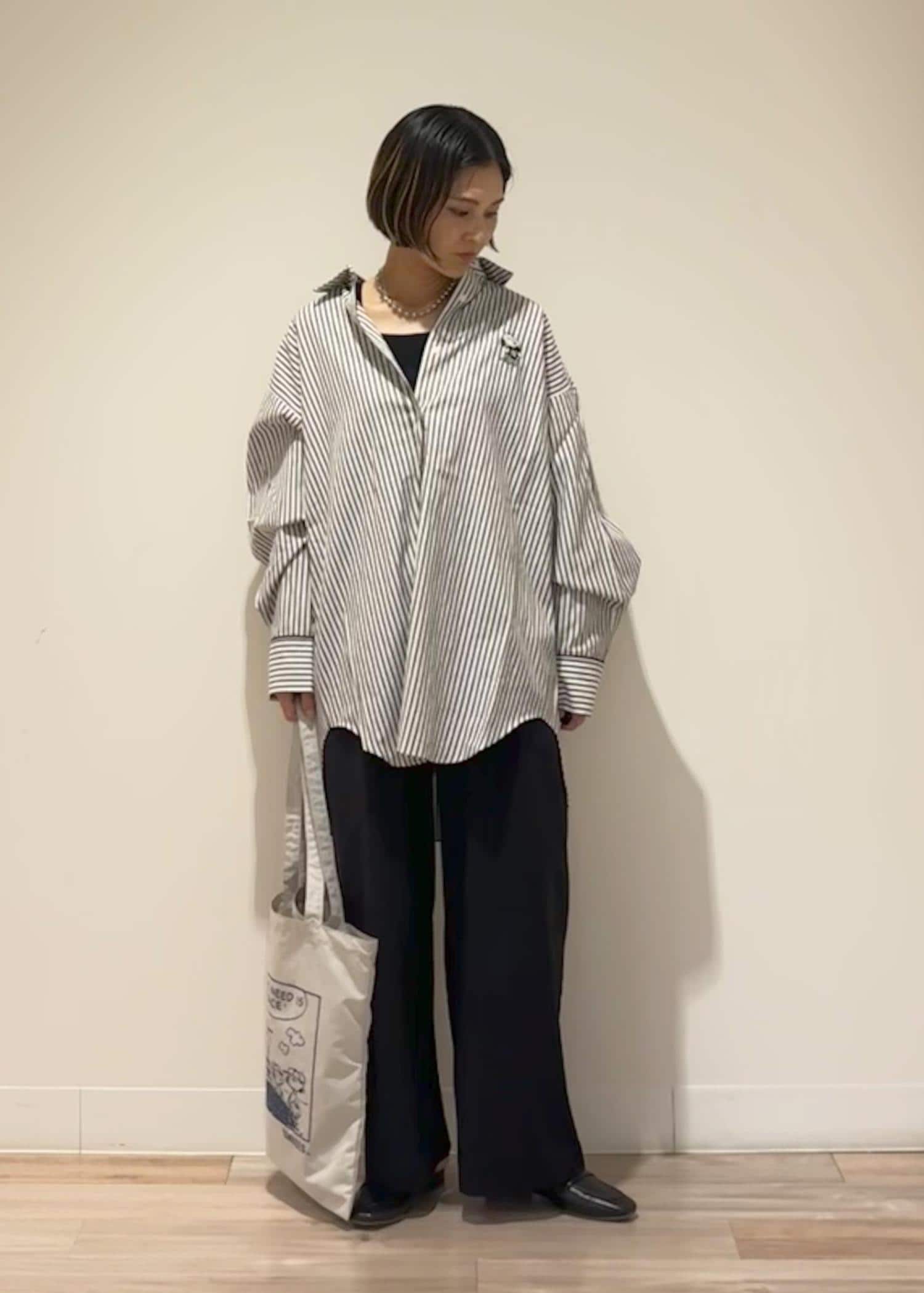 ワイドシルエットも脚のラインを拾わず綺麗なシルエットです。 -