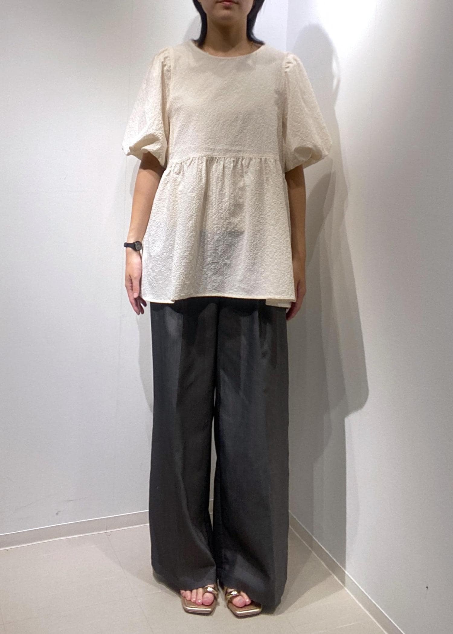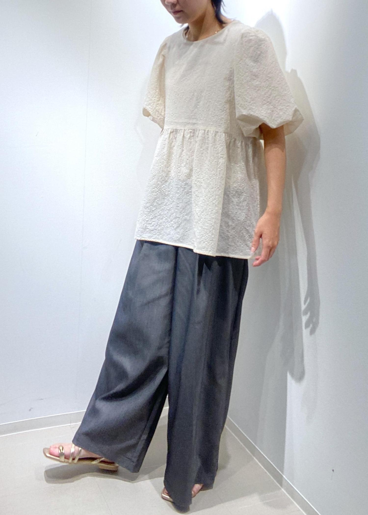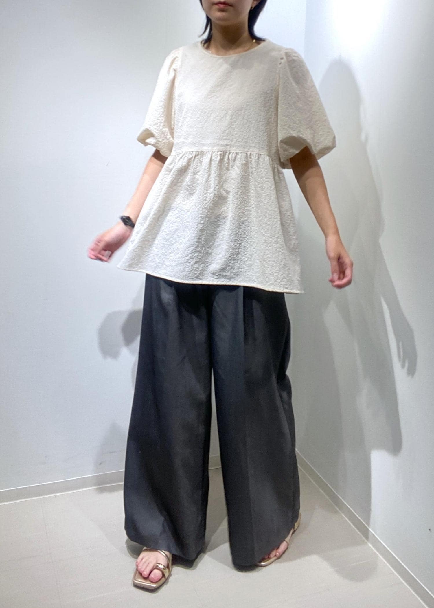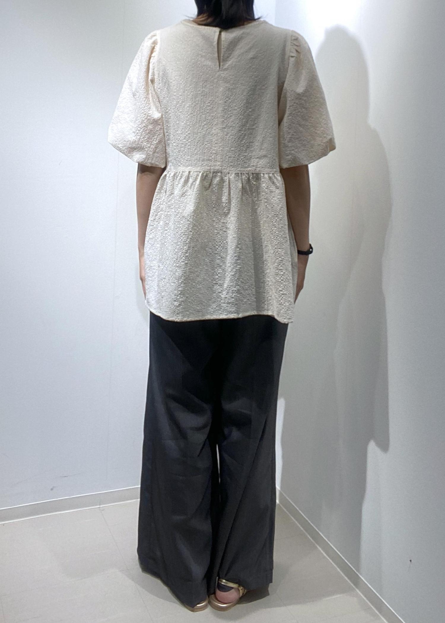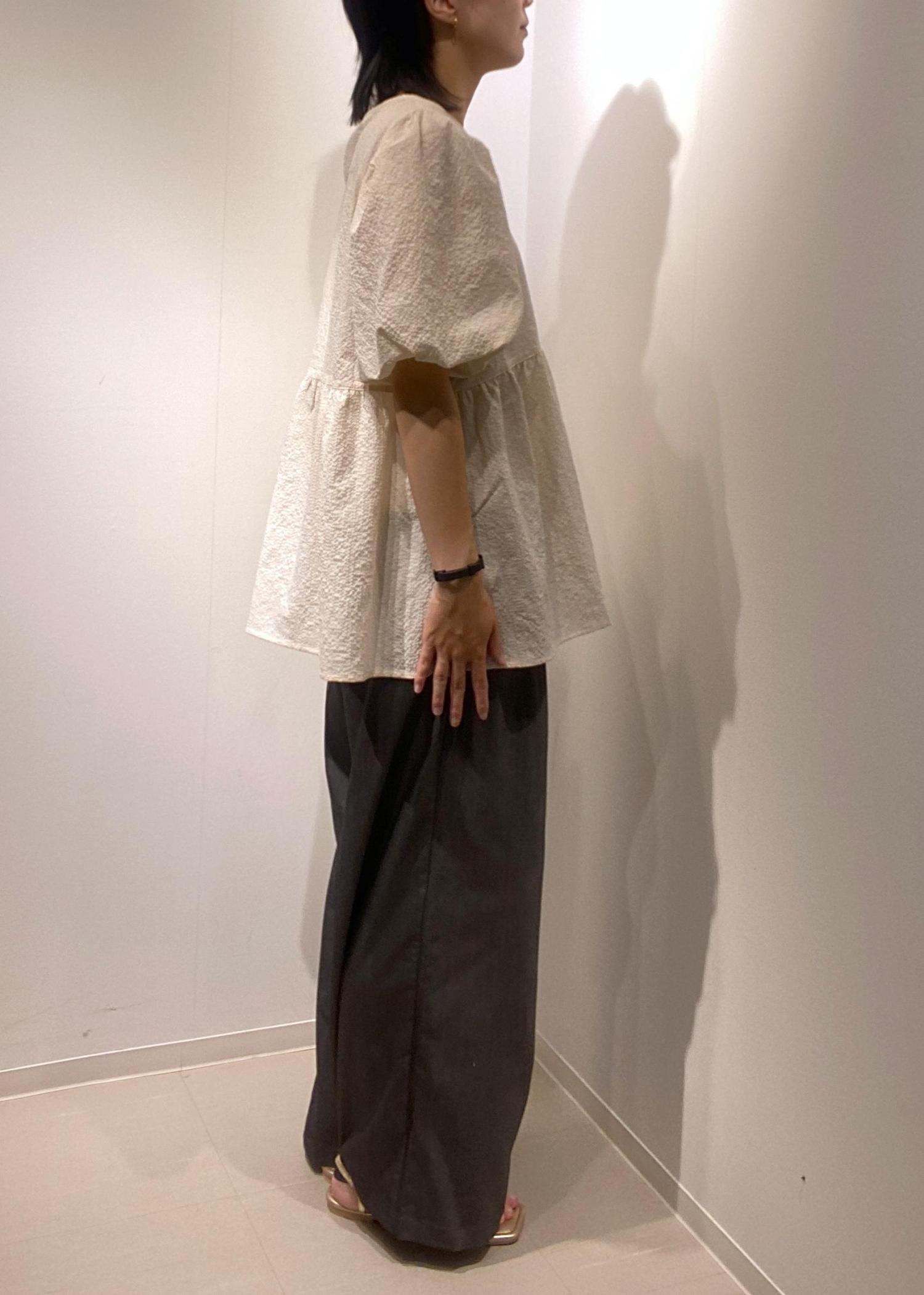 涼しく可愛らしいバルーンぺプラムブラウスを使ってコーディネートを組んでみました!