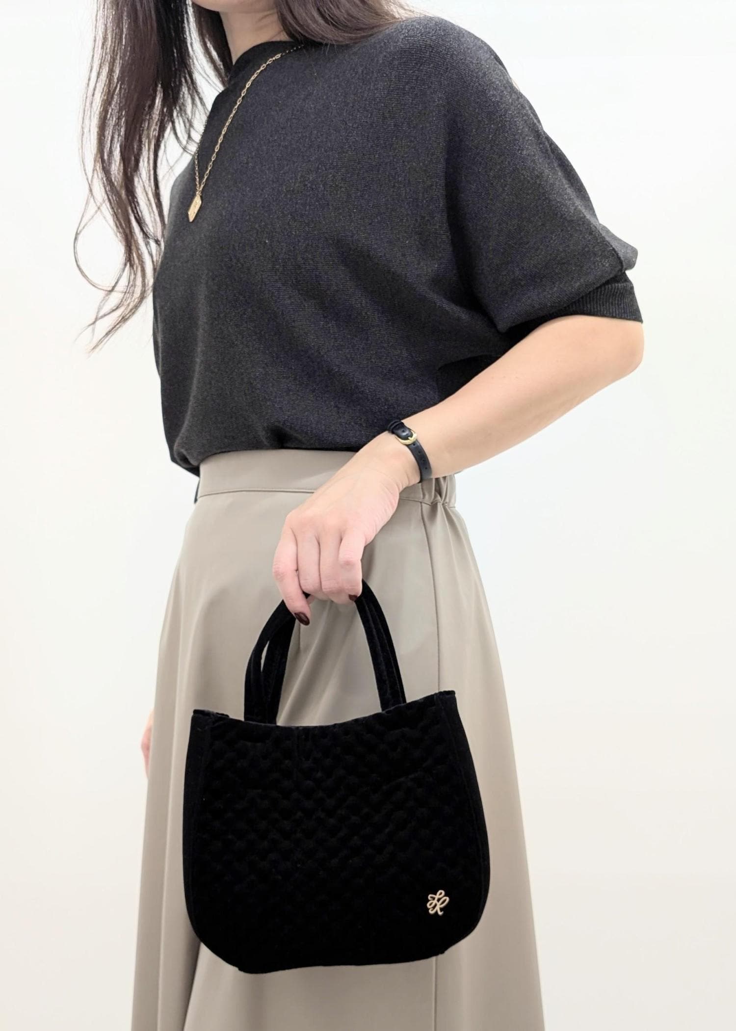 ROPÉ PICNIC PASSAGEキルティングベロアミニショルダーバッグブラック / F¥3,149レビューマンネリしてきた夏服を秋らしく魅せてくれるベロアのバッグ。